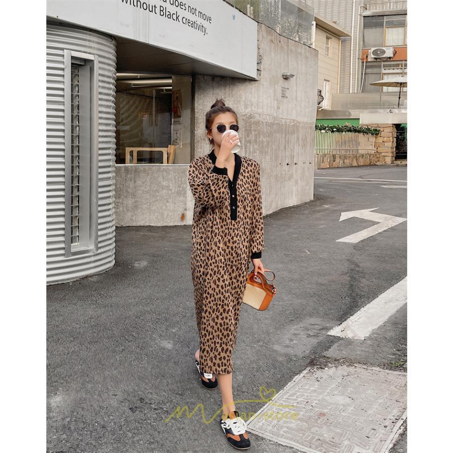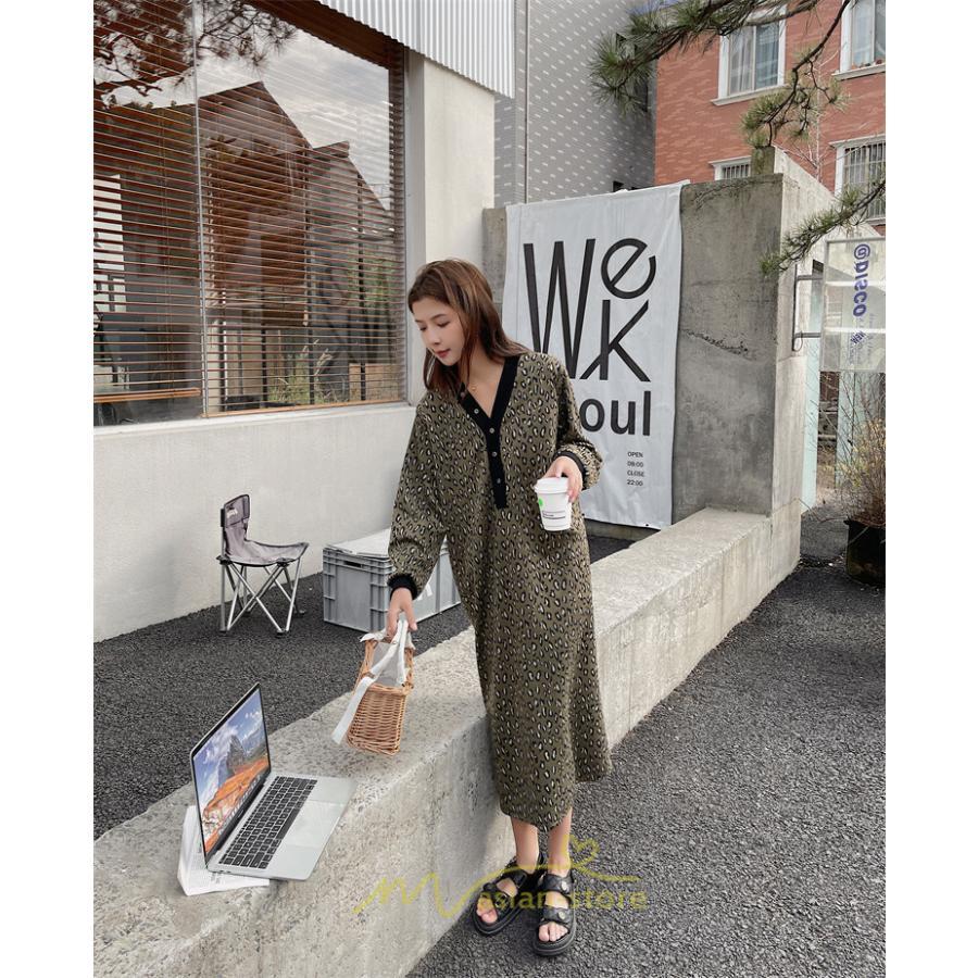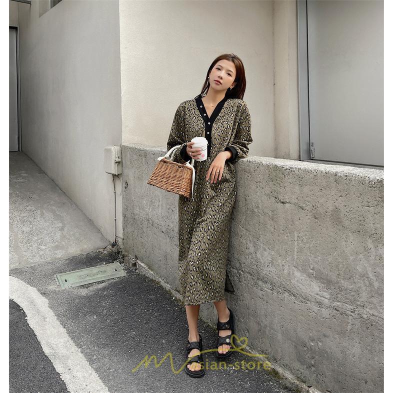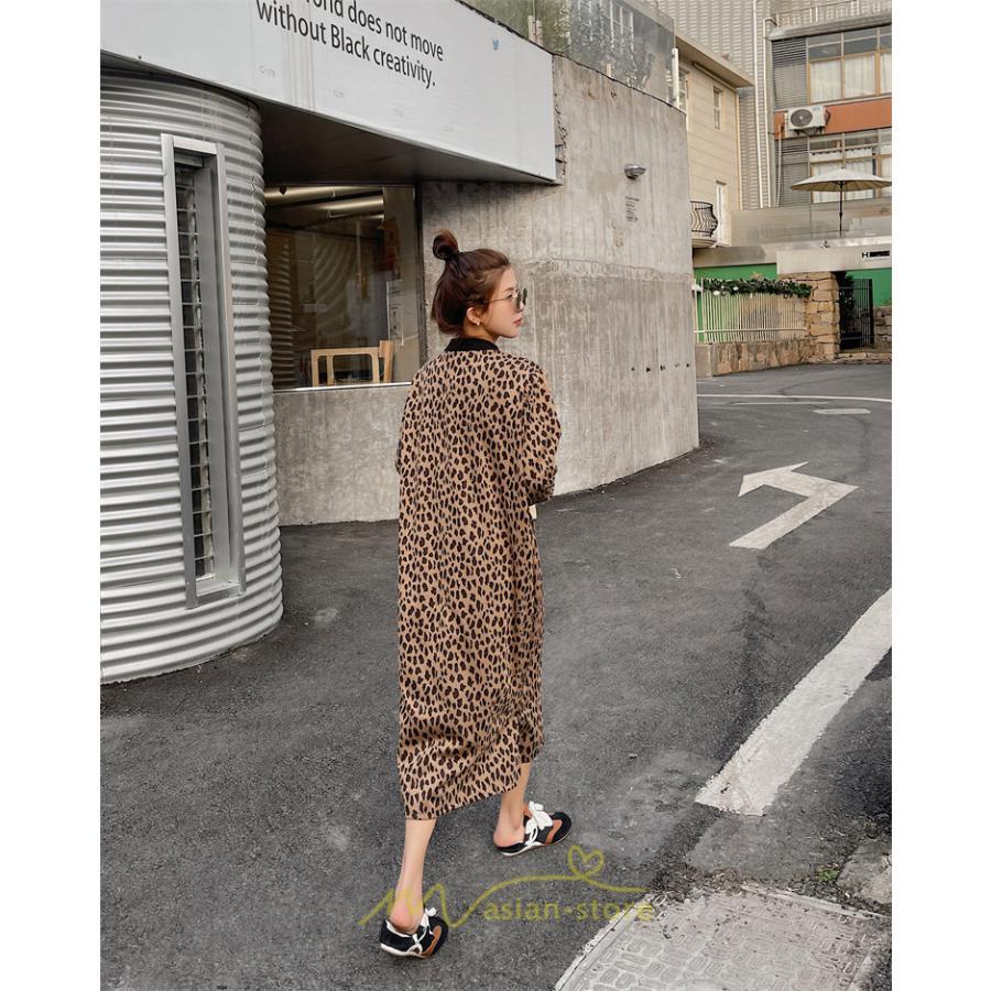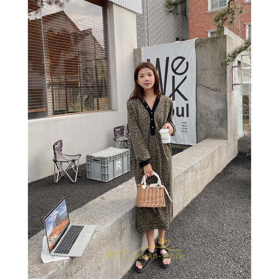 マキシ | レオパードワンピース 秋 レディース ヒョウ柄 Vネック ワンピース ロングワンピース 長袖ワンピース 大人 ゆったり 裾スリット 秋冬 30代40代50代 大きいサイズ