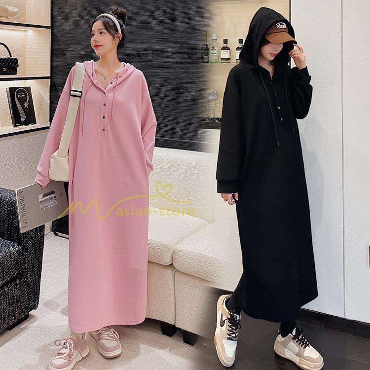 マキシ | スウェットワンピース ロングワンピース スウェット ロングパーカー ゆったり パーカーワンピース 体型カバー 大きいサイズ かわいい 50代 秋冬 20代30代 大人