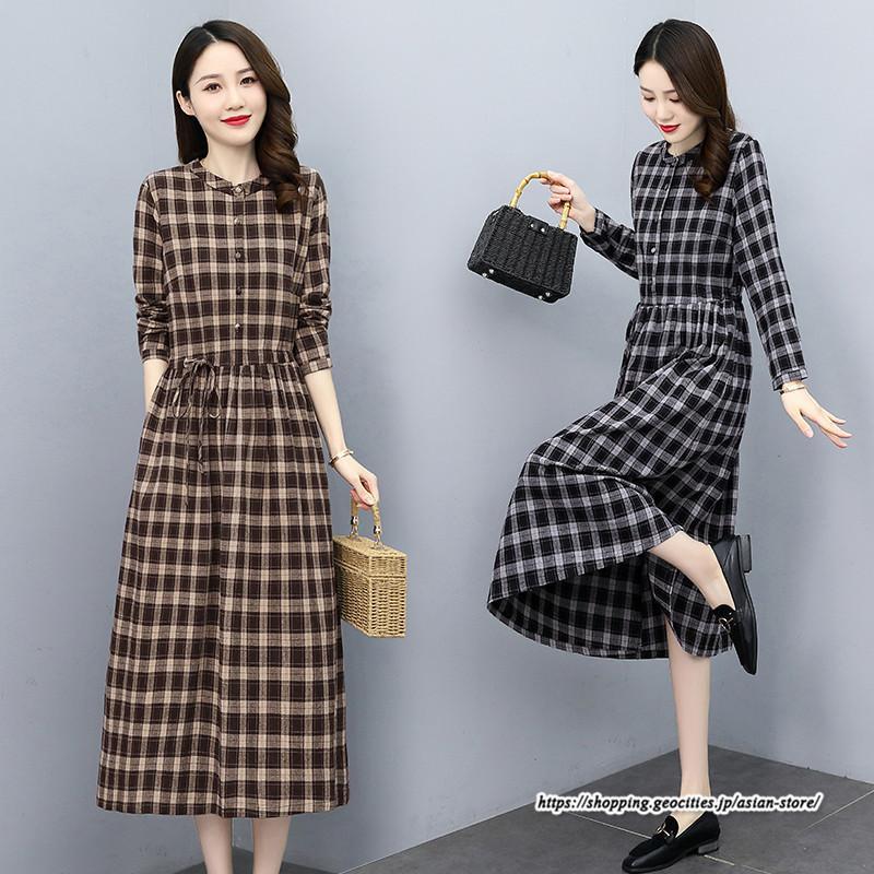 旅行 ママワンピース 母親 ママ ワンピース 大人 通勤 OL 旅 コットンリネン 定番アイテム 冬