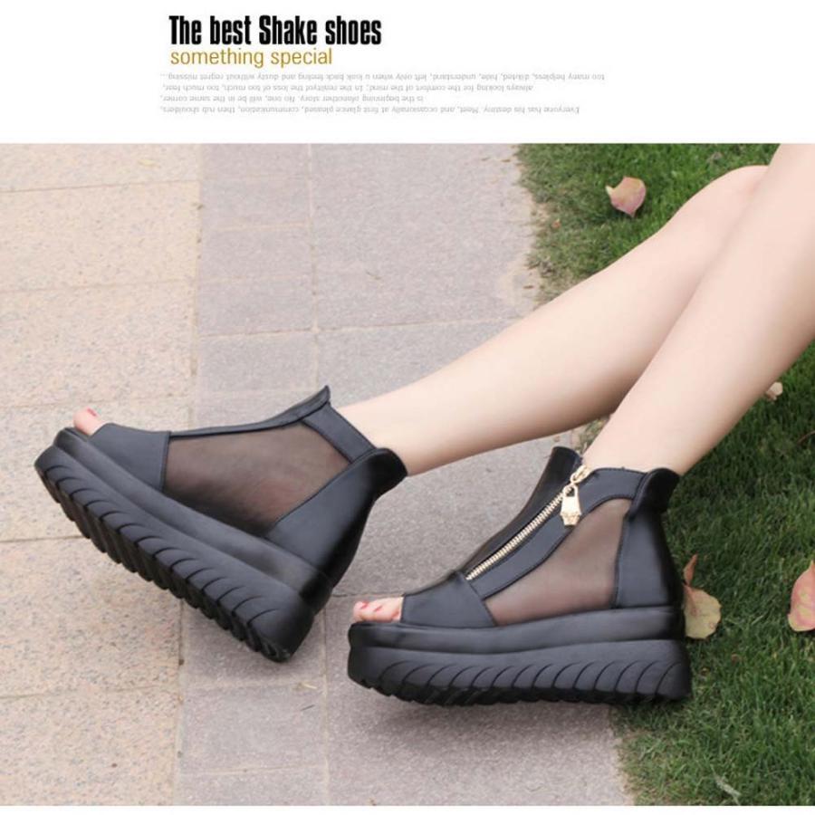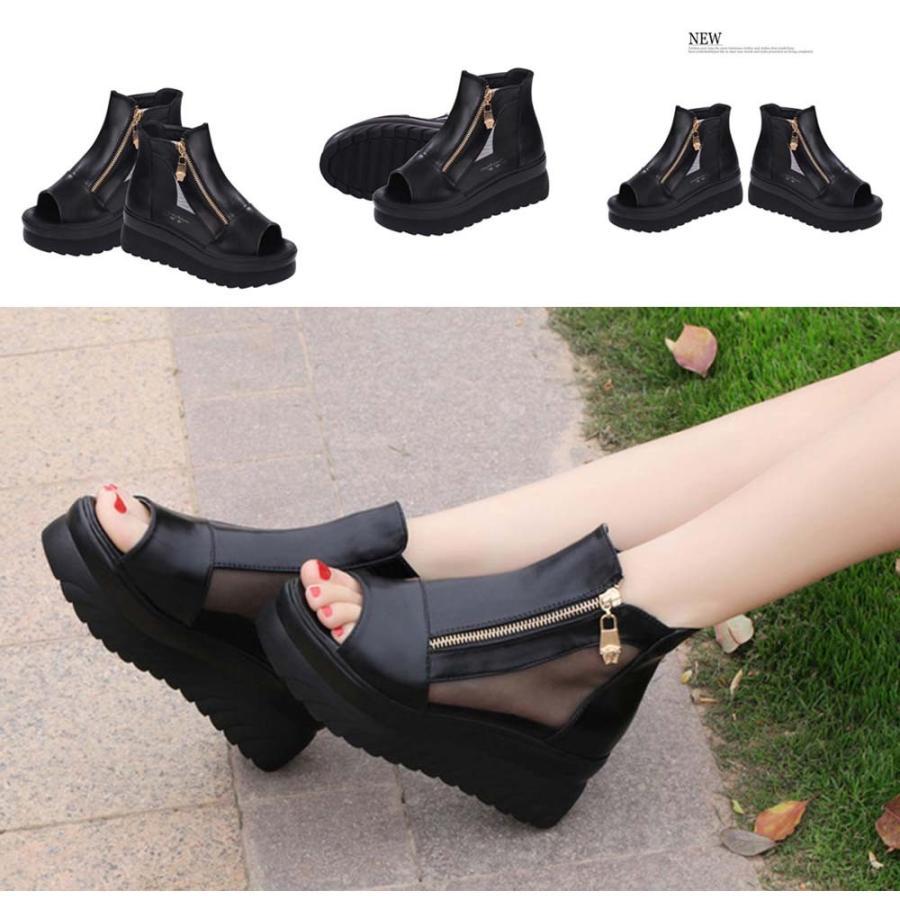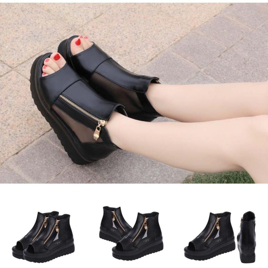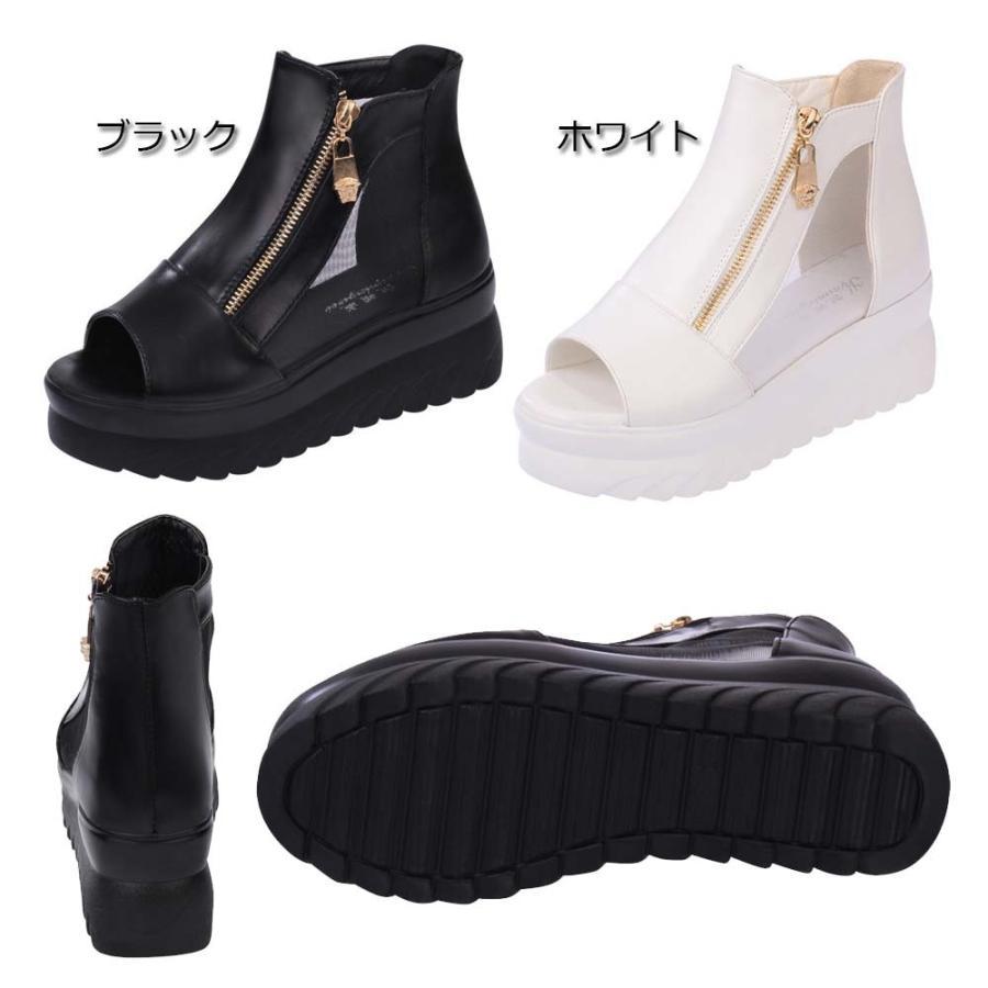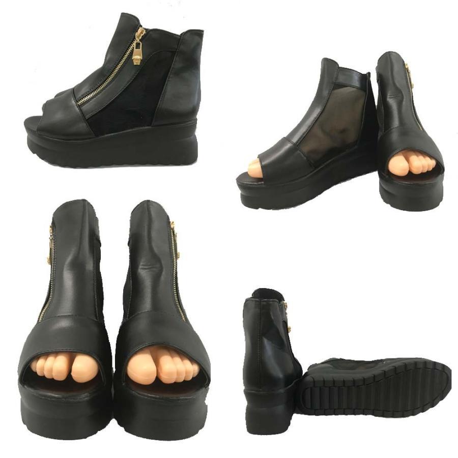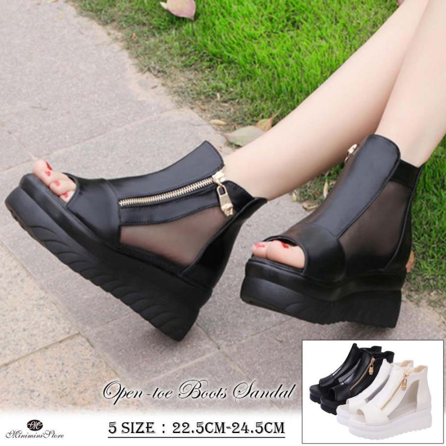 厚底だからさり気なく脚長効果を狙えるオープントゥブーツサンダル