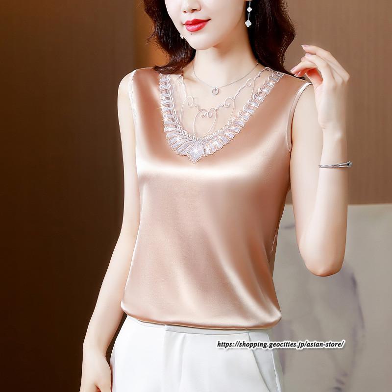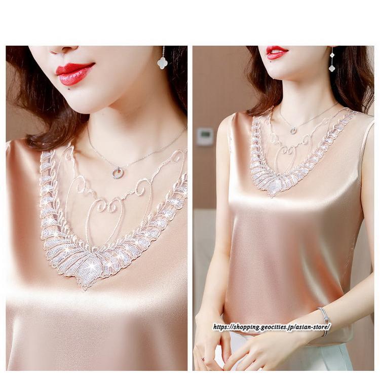 袖なし キャミソール トップス レイヤードタンクトップ 母の日 重ね着