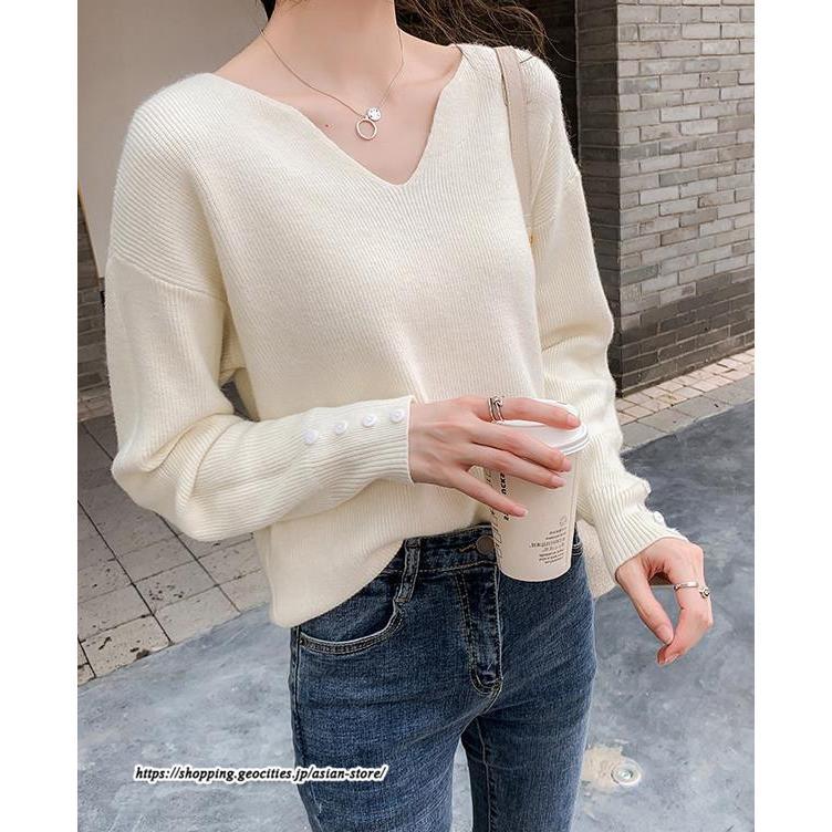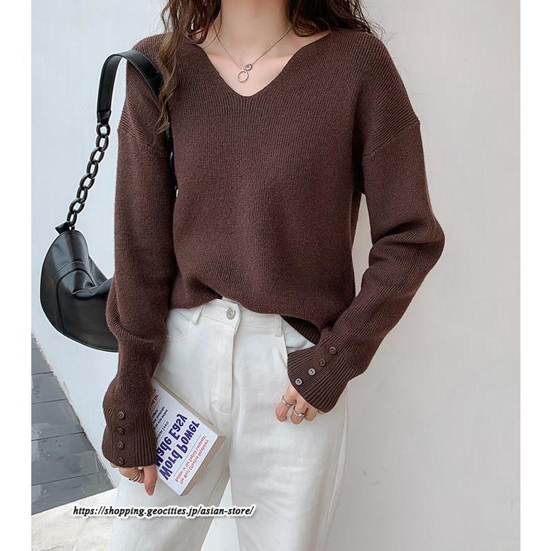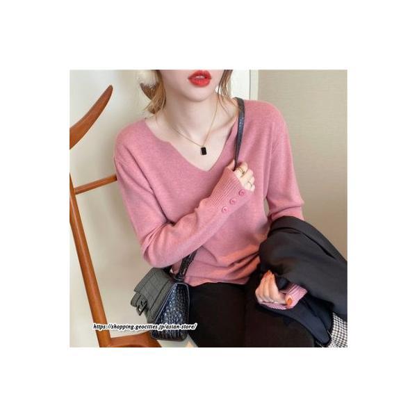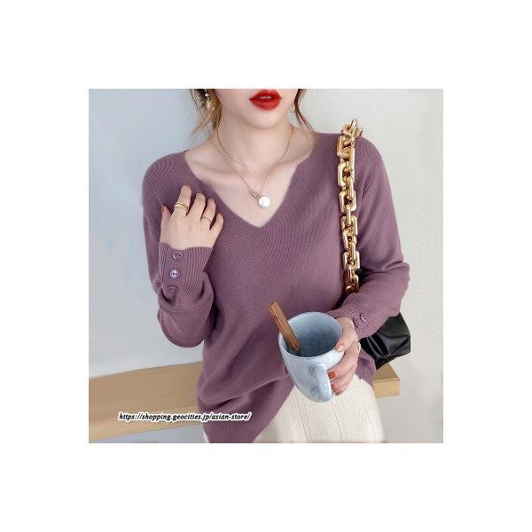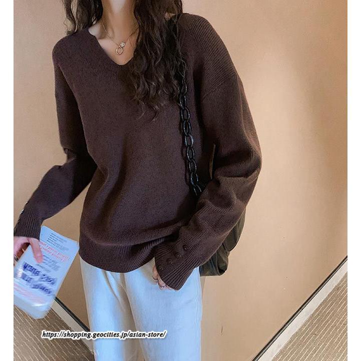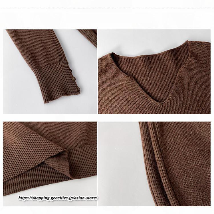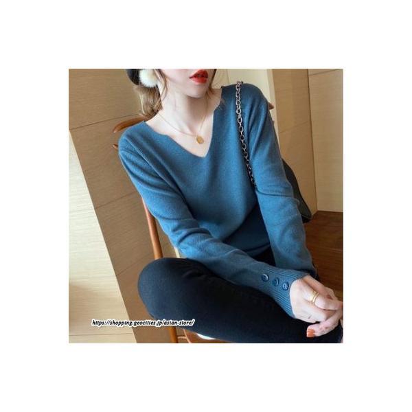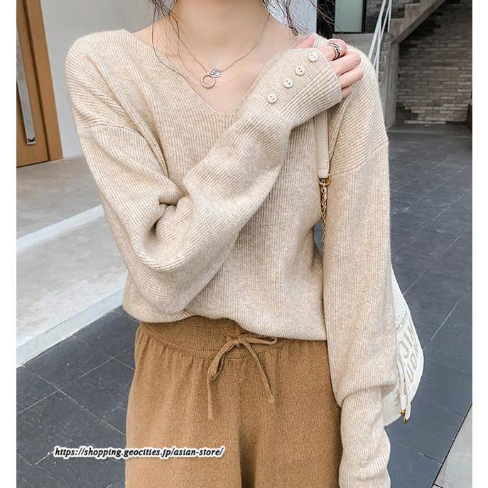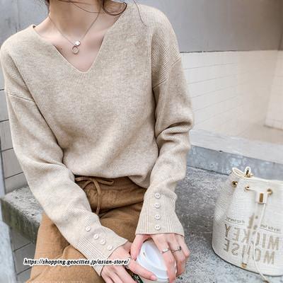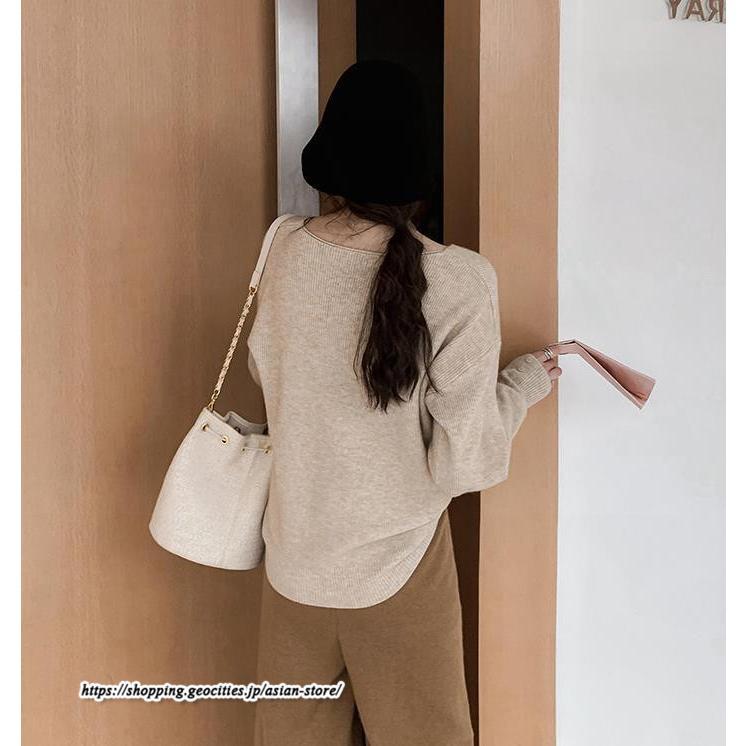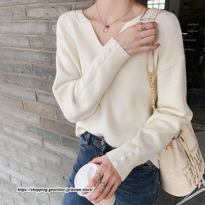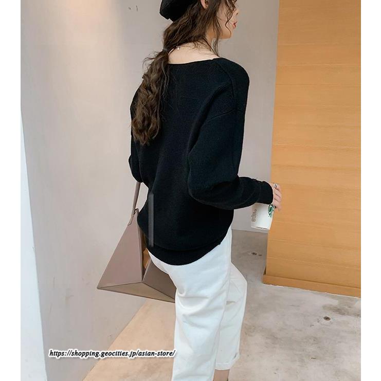 長袖ニットセーター ベーシックトップス カジュアル ニット