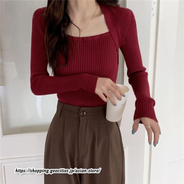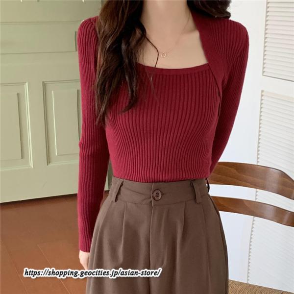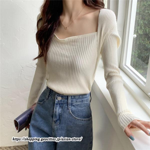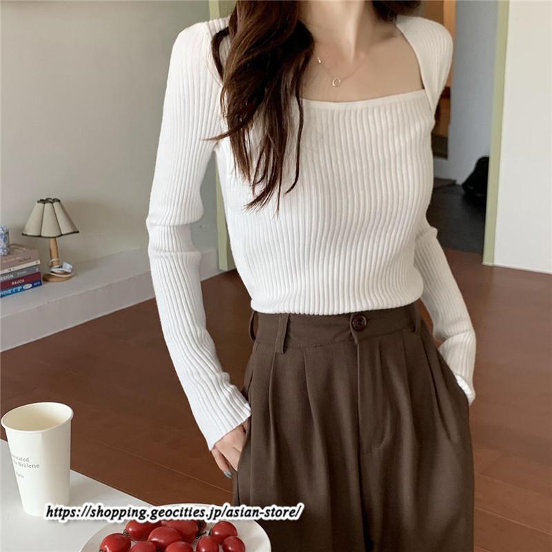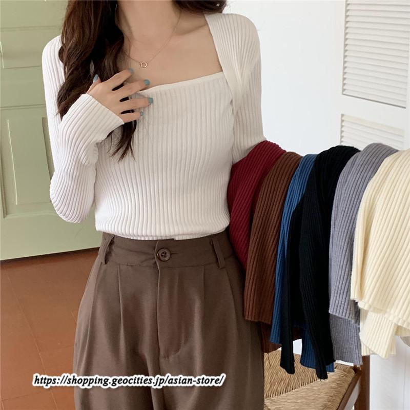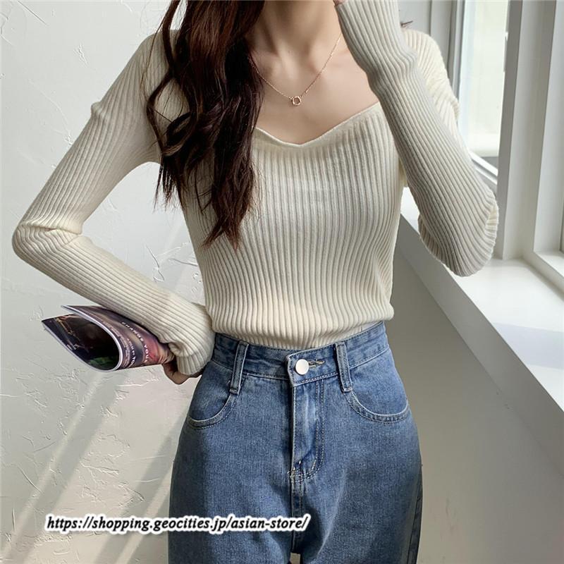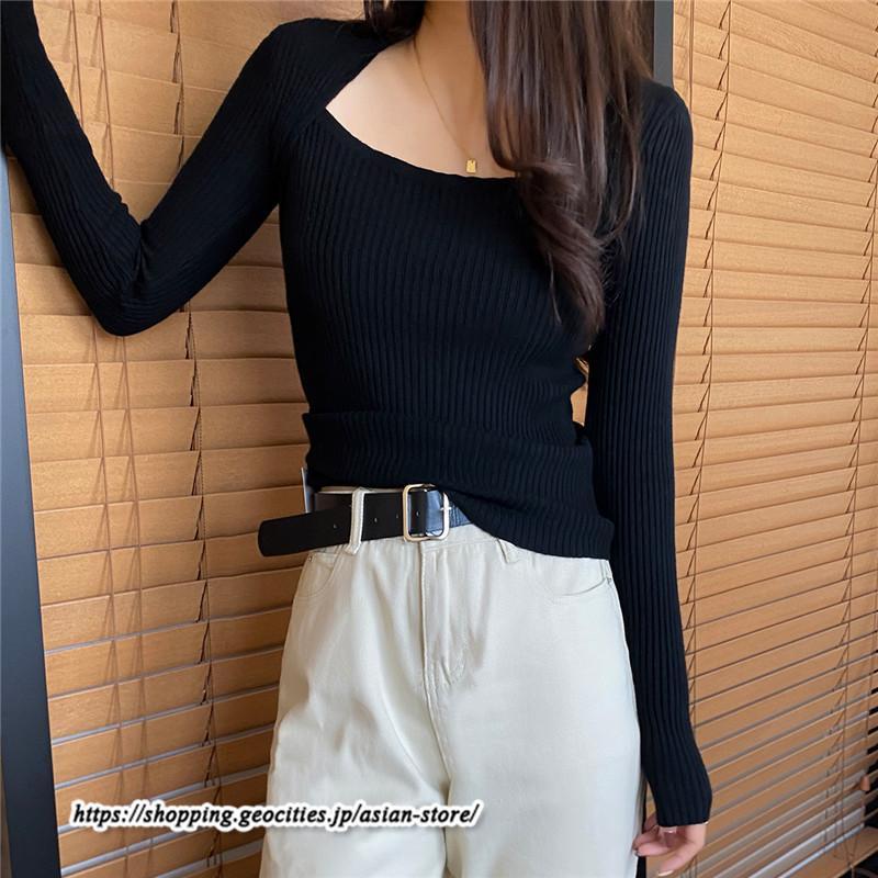 長袖ニットセーター ベーシックトップス カジュアル ニット