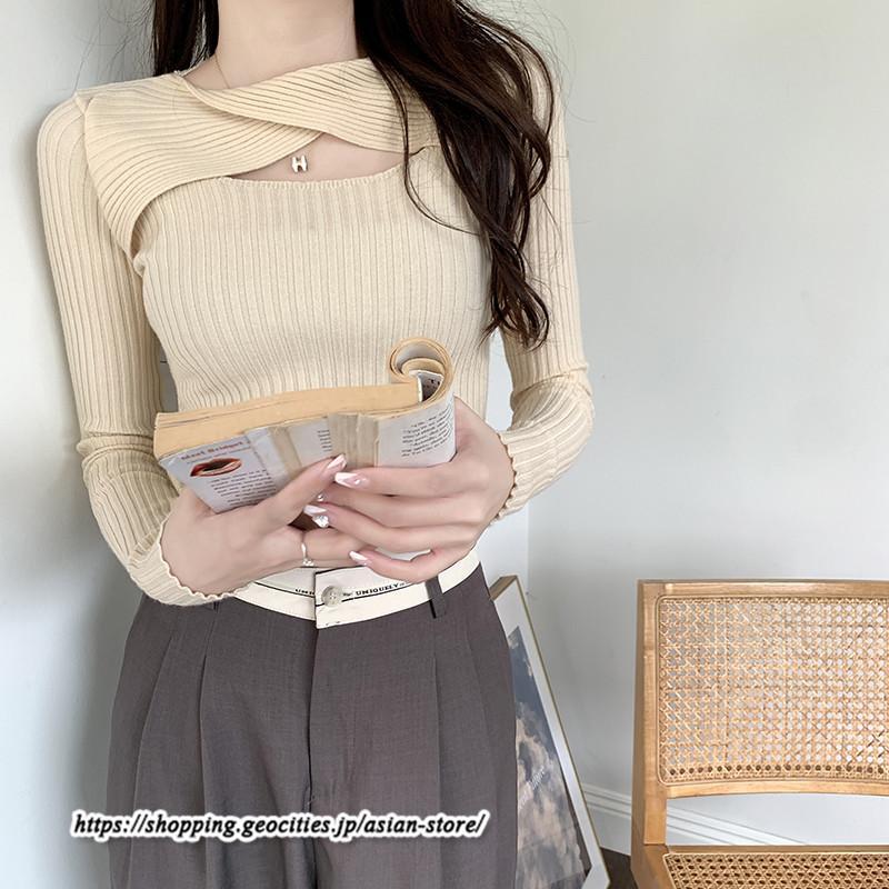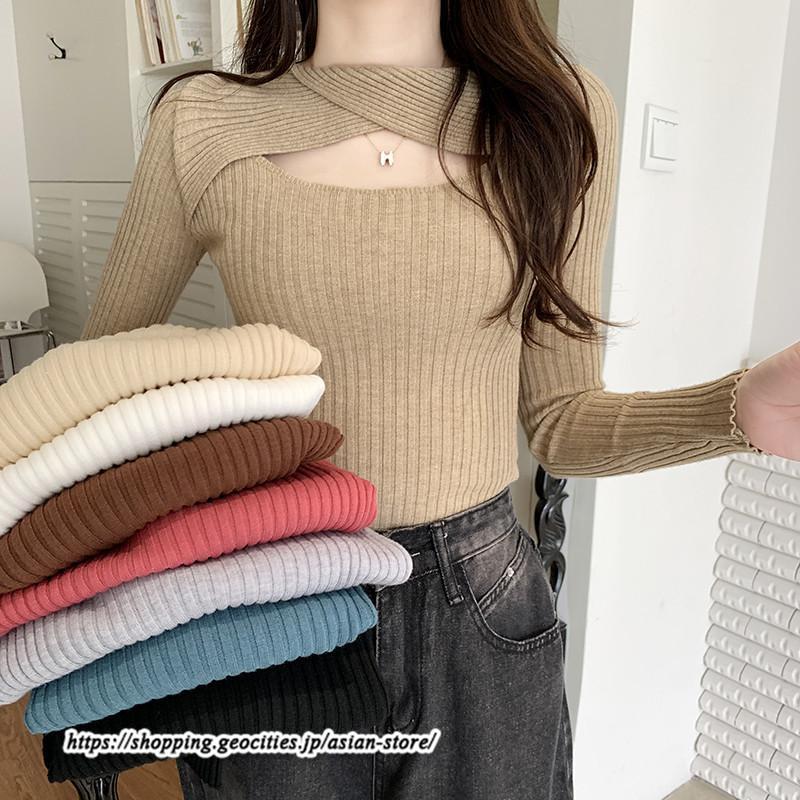 長袖ニットセーター ベーシックトップス カジュアル ニット
