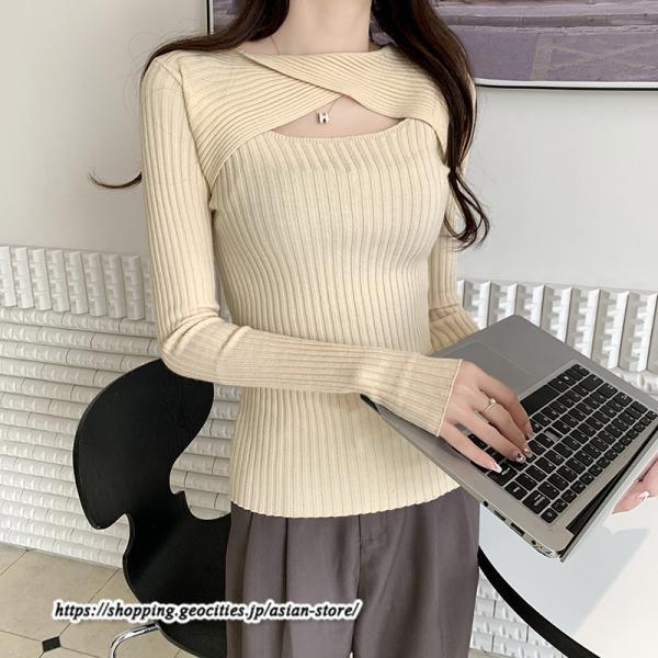 ニットトップス レディース 秋服 長袖セーター 送料無料