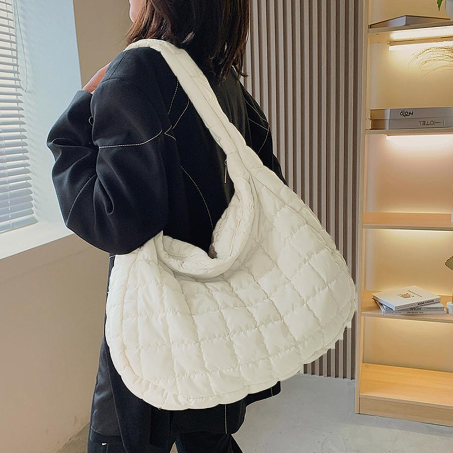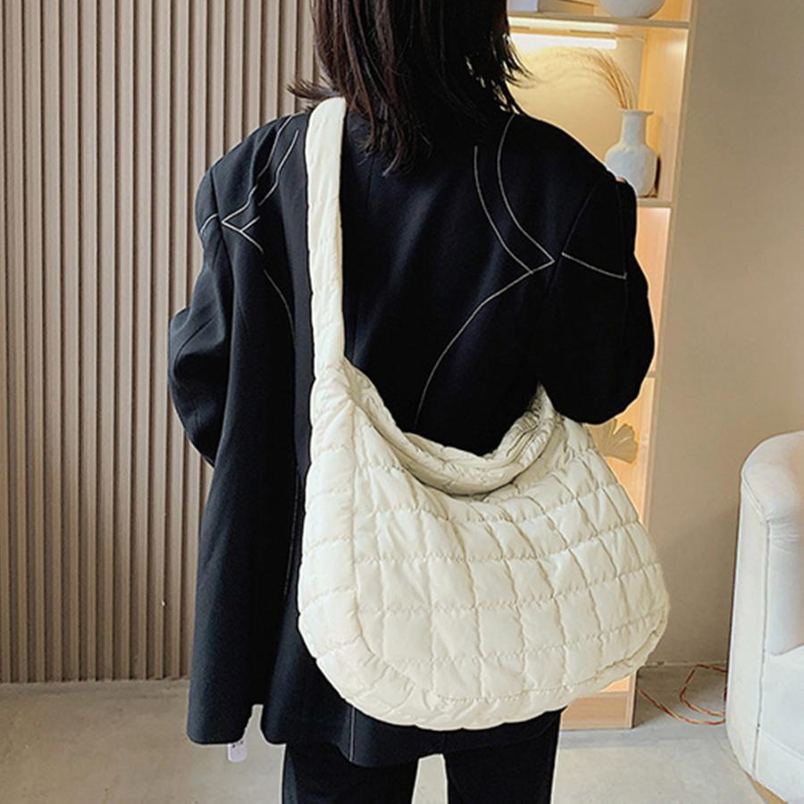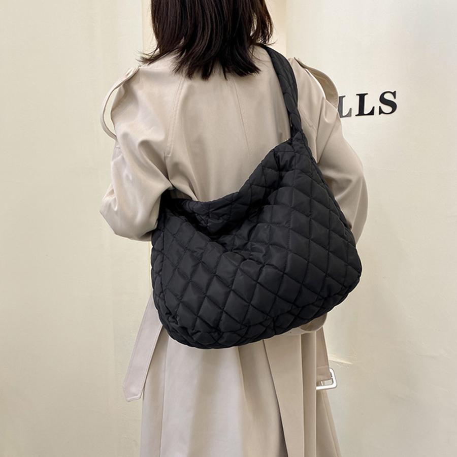 キルティング ソフトバッグ 斜めがけ カジュアル 大きめトートバッグ 軽量 マザーバッグ 大容量 餃子型バッグ 黒