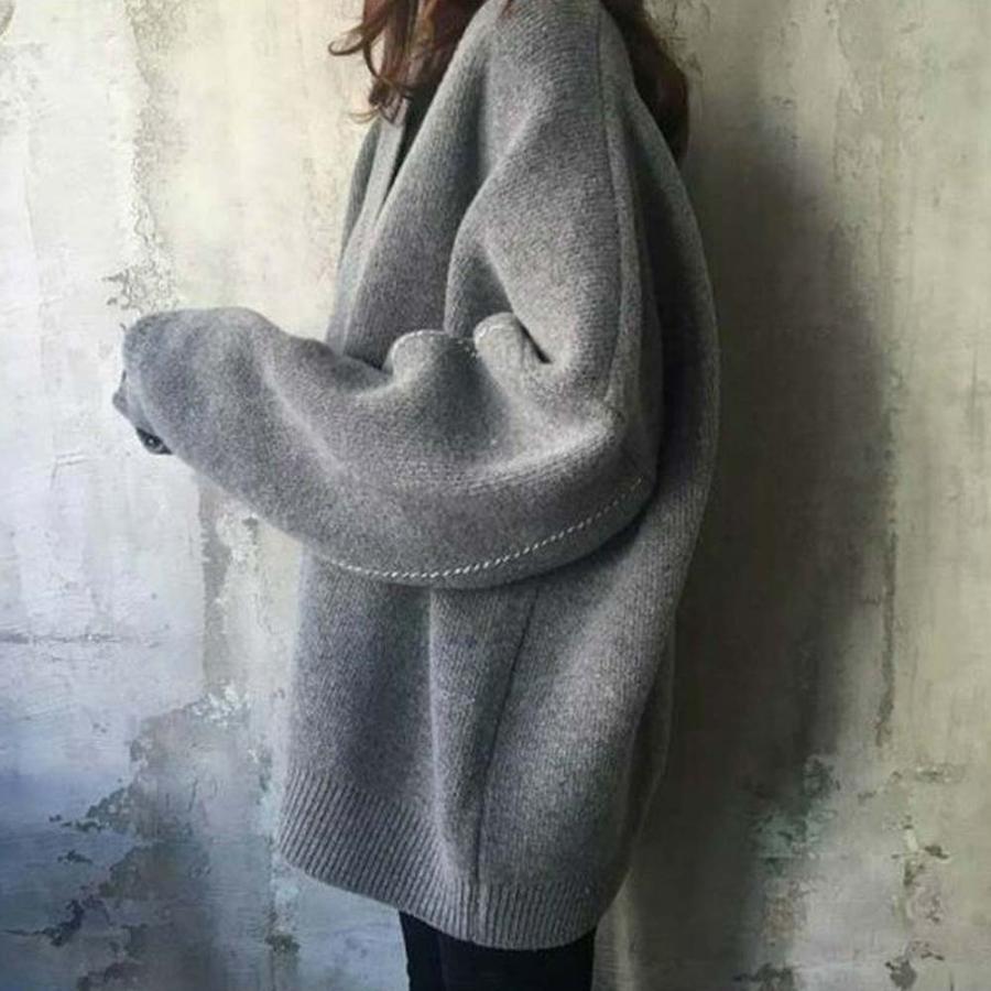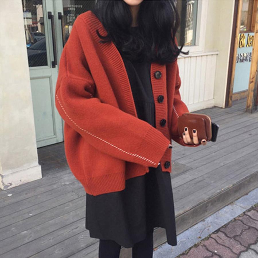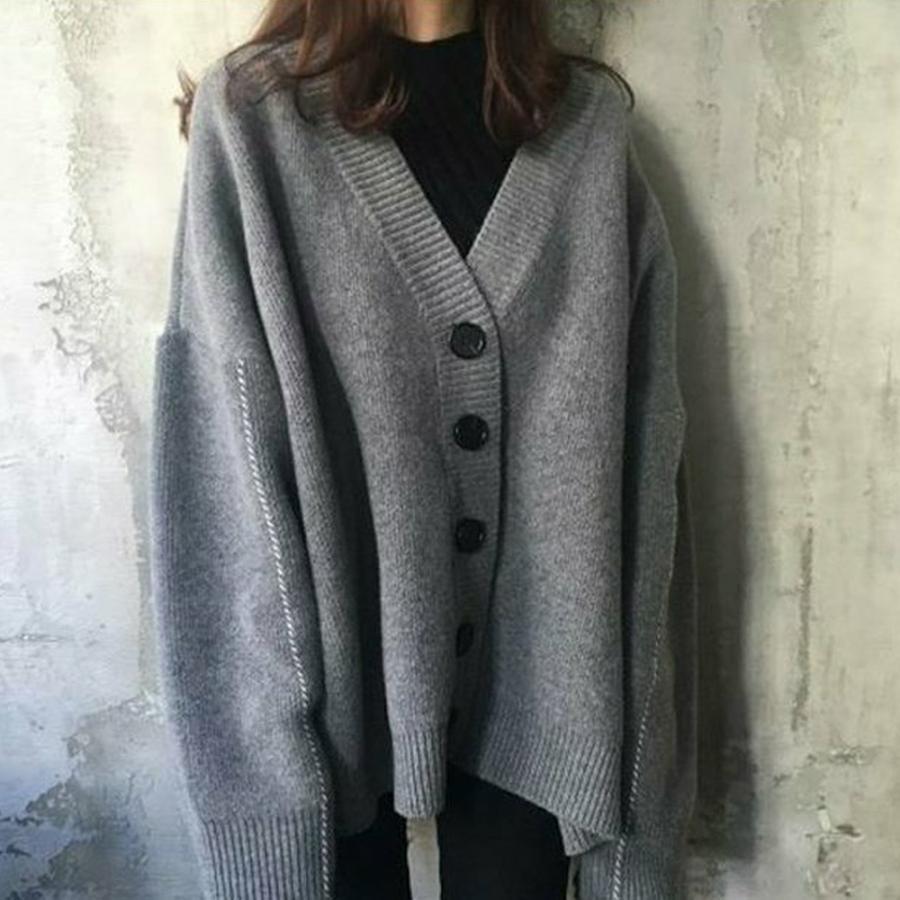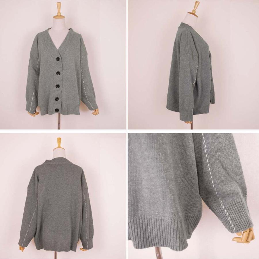 ゆったり 韓国風 トップス 羽織り vネックカーデ 体型カバー 長袖 中厚手 ドロップショルダー カーディガン 春秋冬
