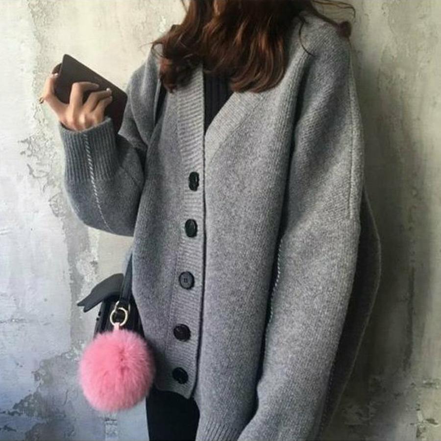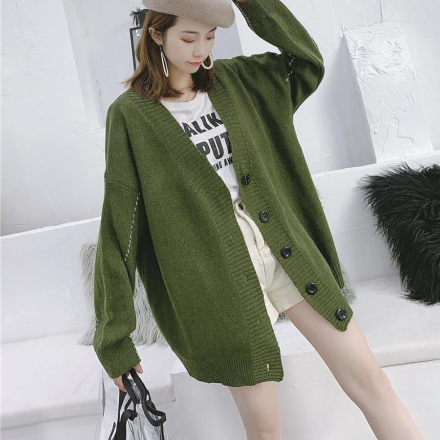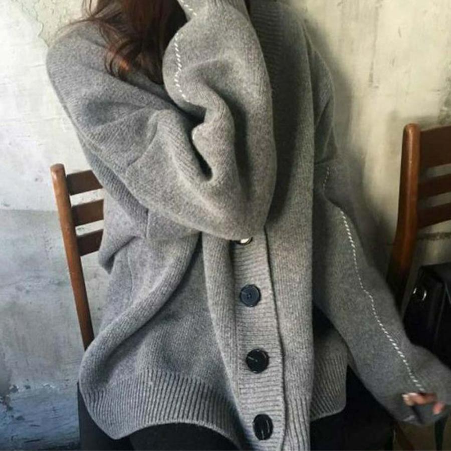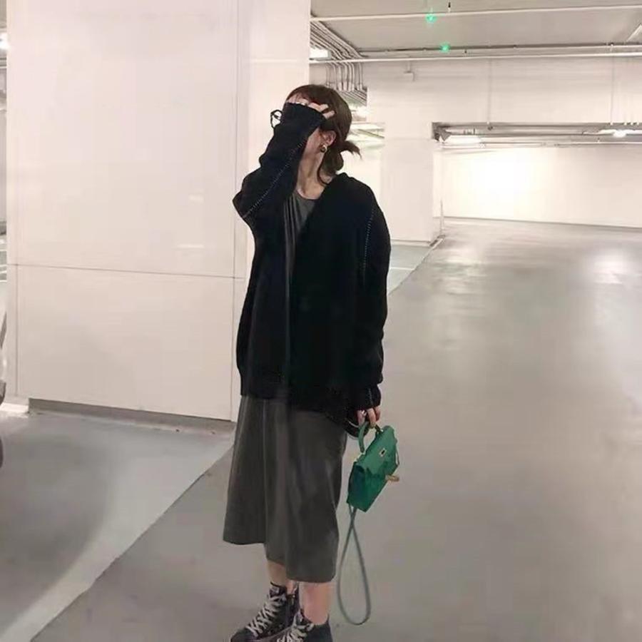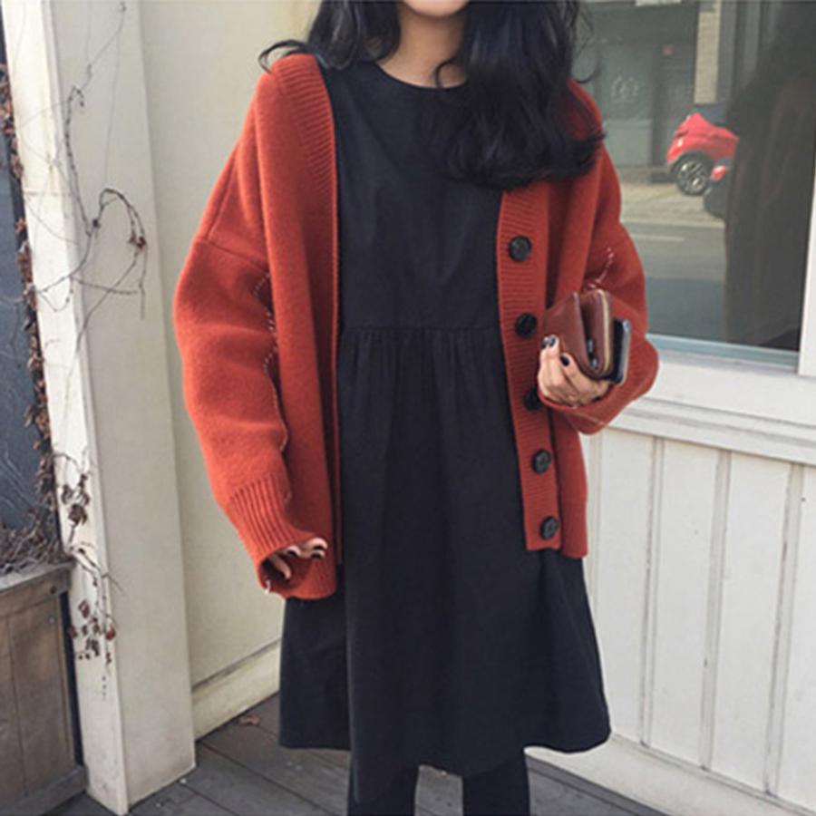 ゆったり 韓国風 トップス 羽織り vネックカーデ 体型カバー 長袖 中厚手 ドロップショルダー カーディガン 春秋冬