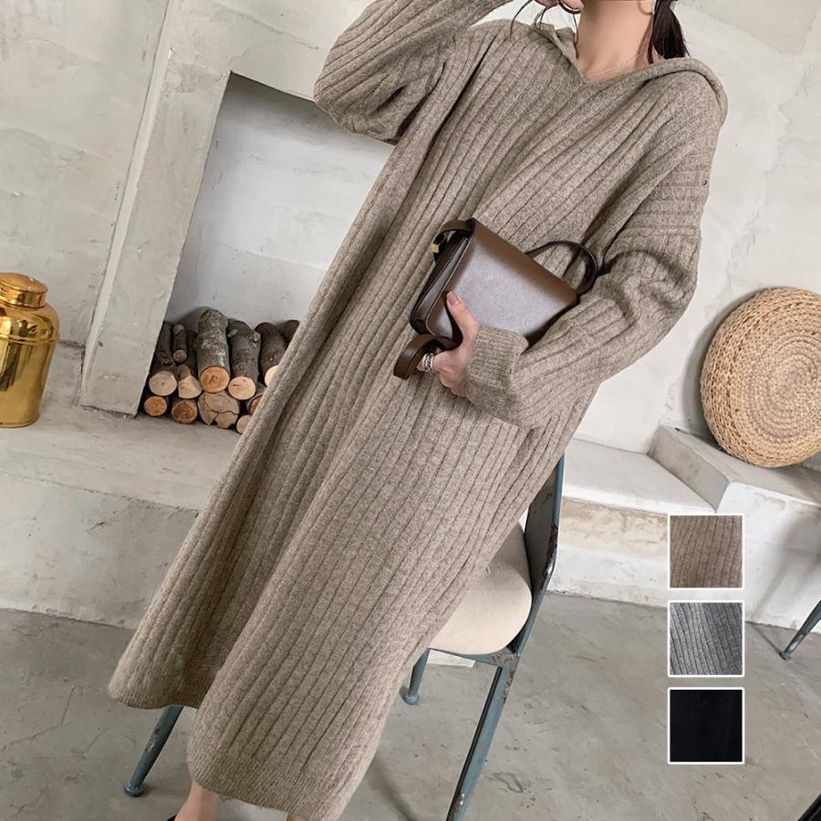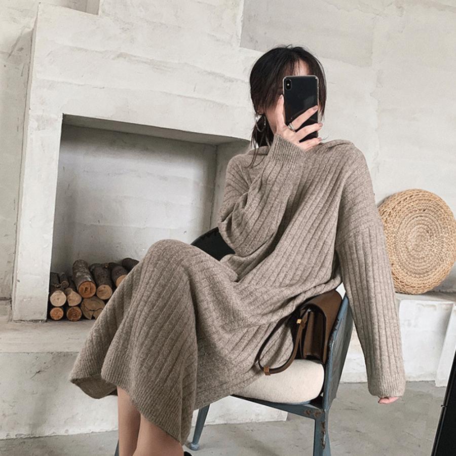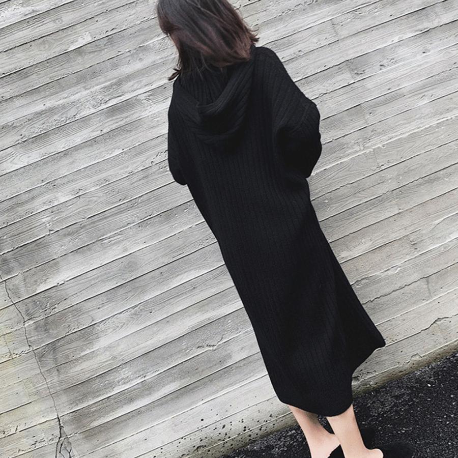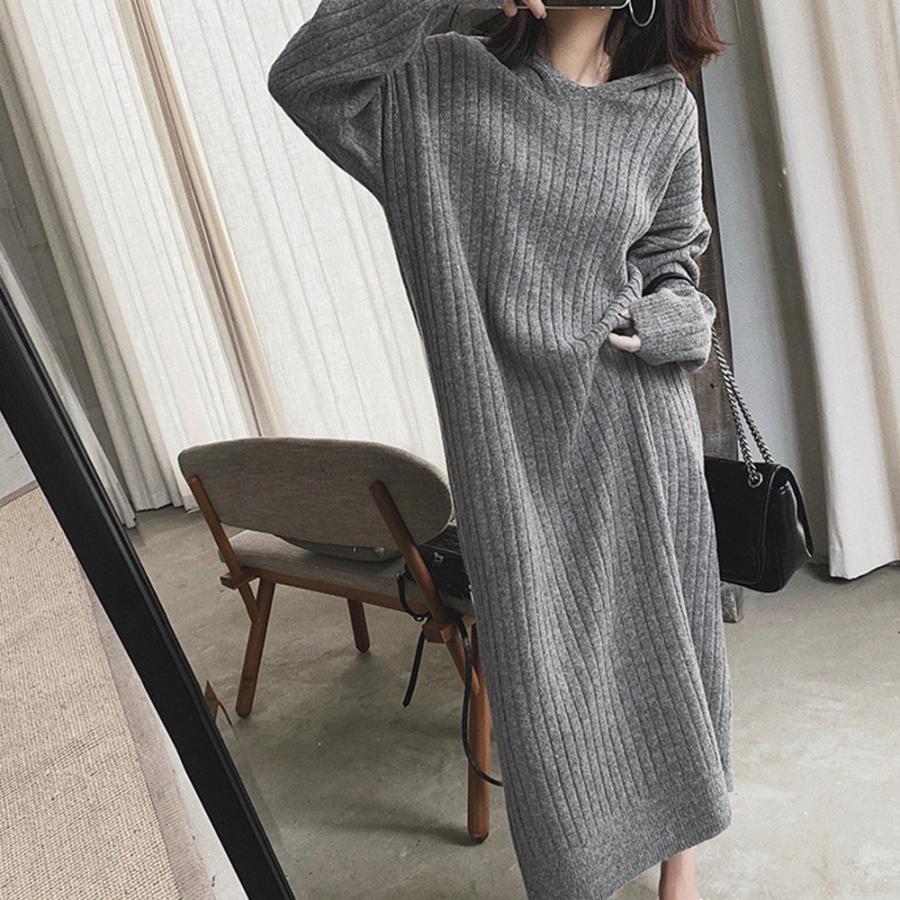 柔らかく着心地の良い素材のフード付きニットワンピースです