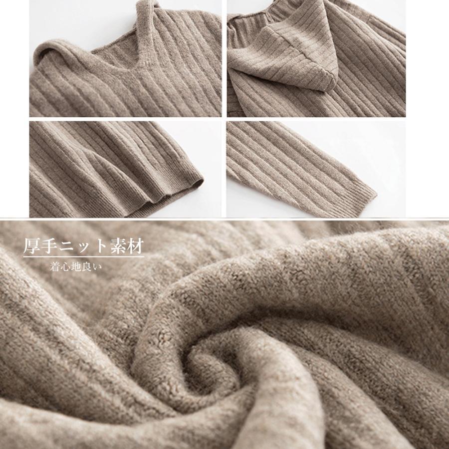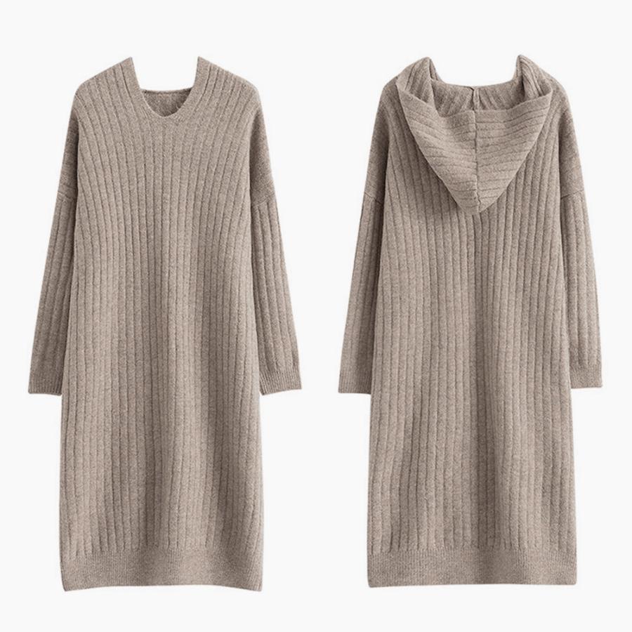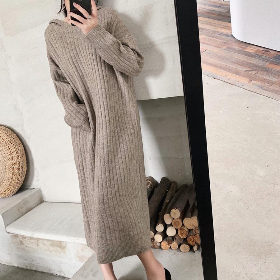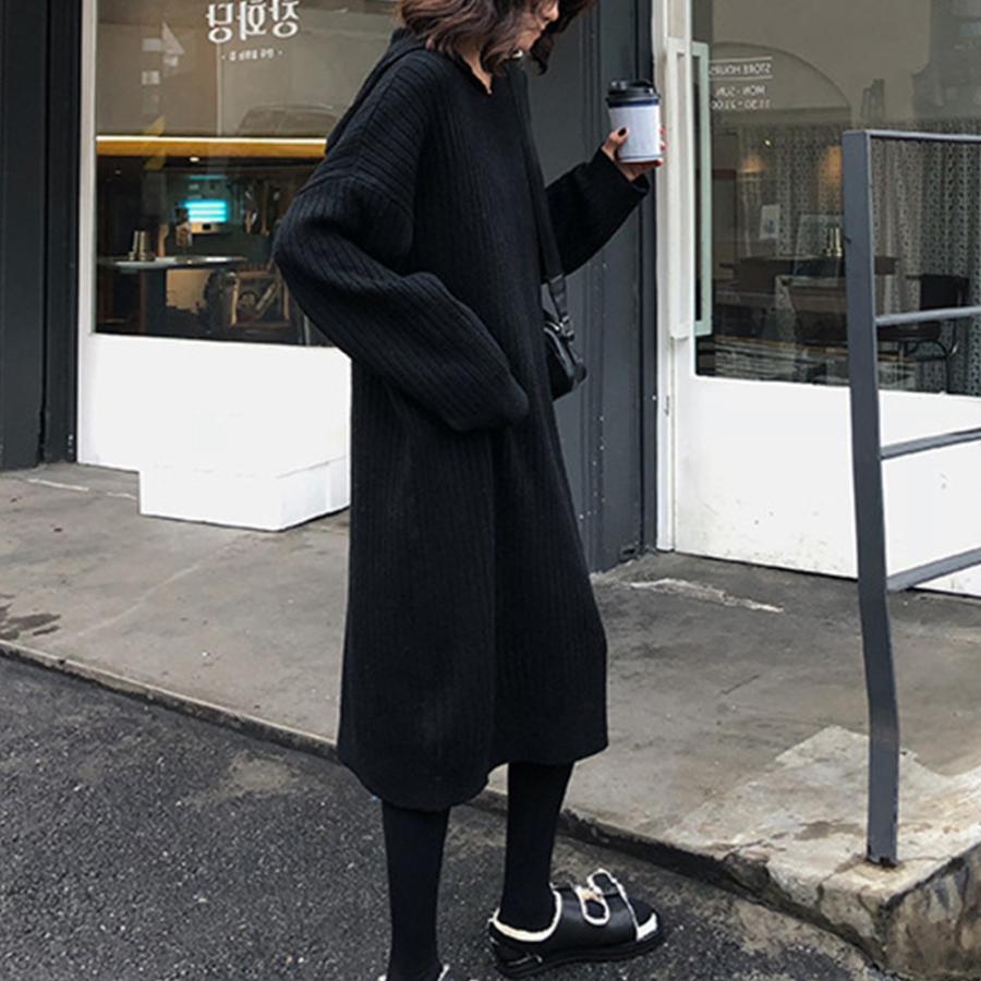 柔らかく着心地の良い素材のフード付きニットワンピースです