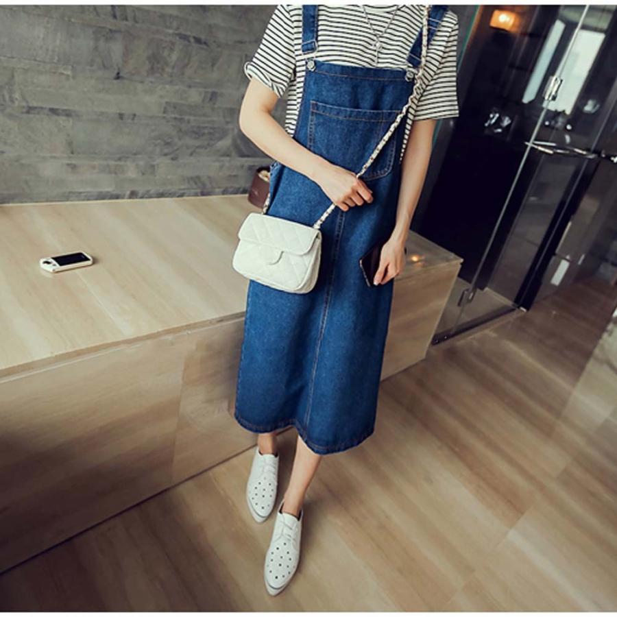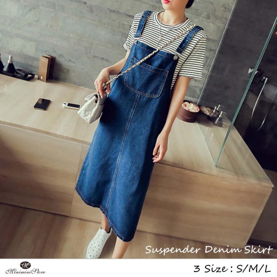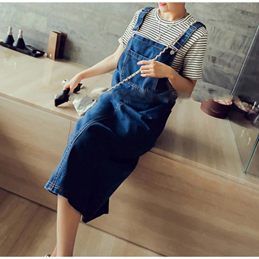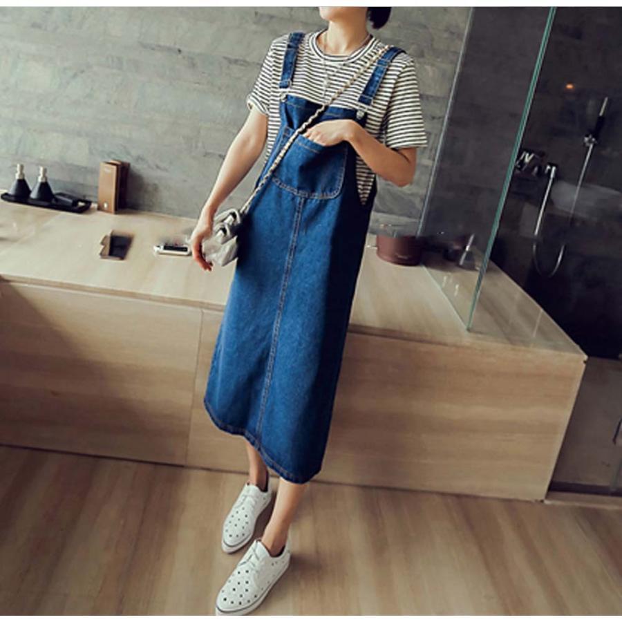 サロペット デニム スカート ミモレ丈 スカート 春夏