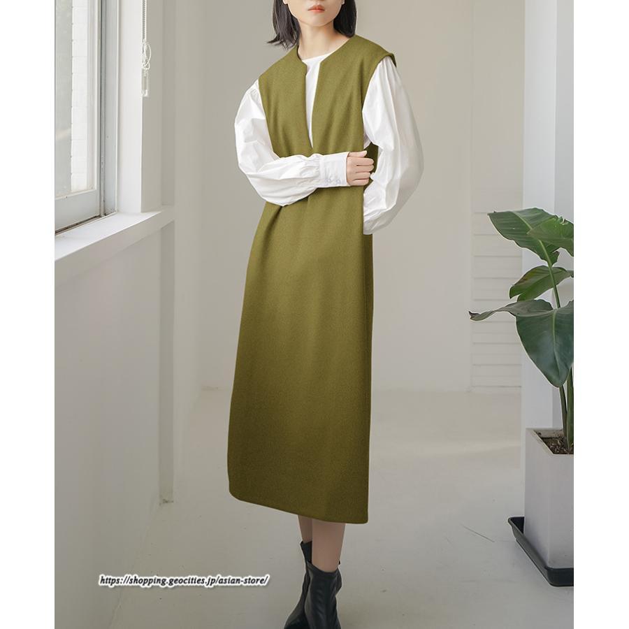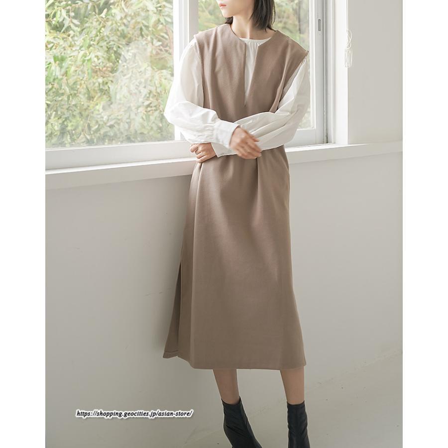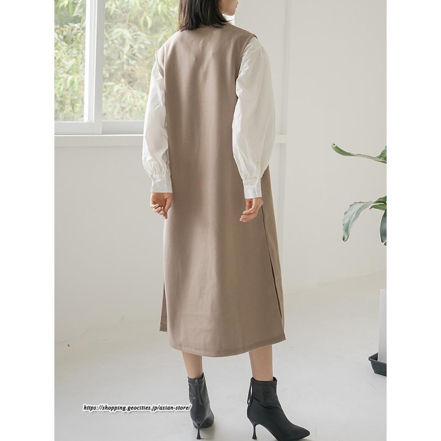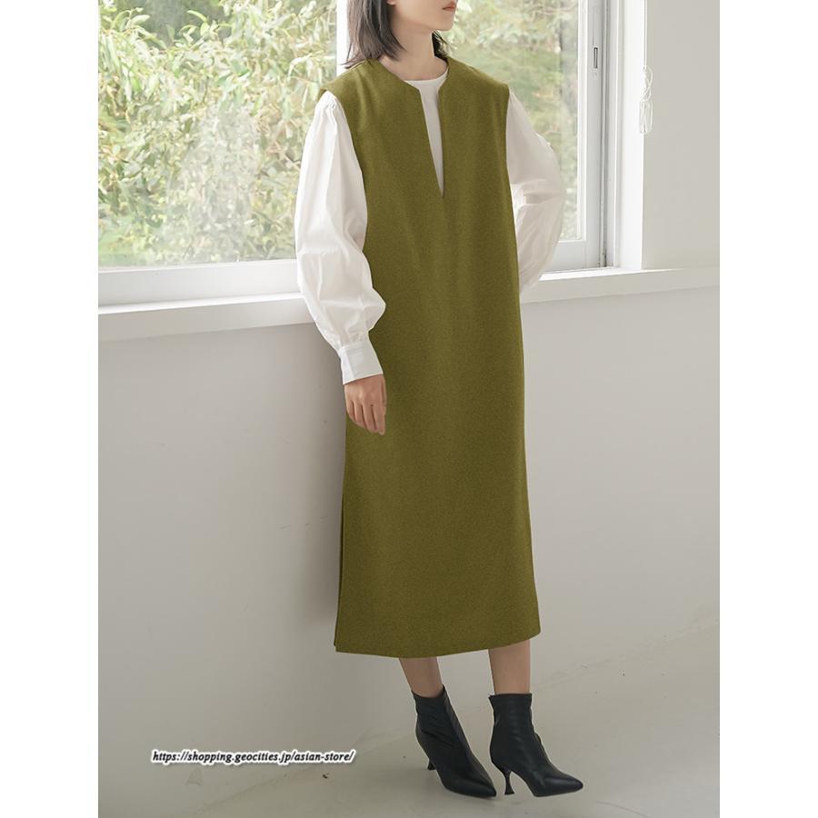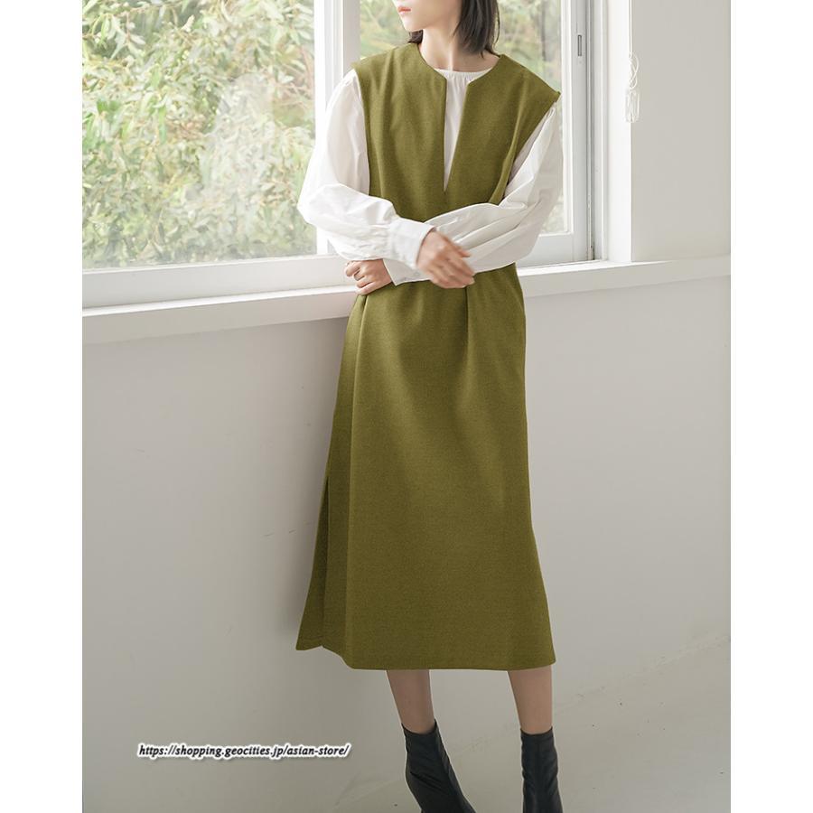 マキシ | ベストワンピース ラシャベスト ラシャワンピース ロング丈 ノースリーブ 袖なし レディース ロングベスト ワンピース 無地 大人 ラシャ スリット ポケット