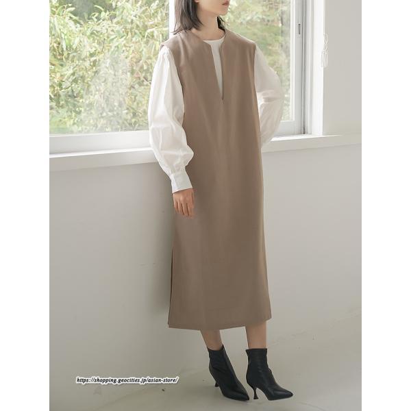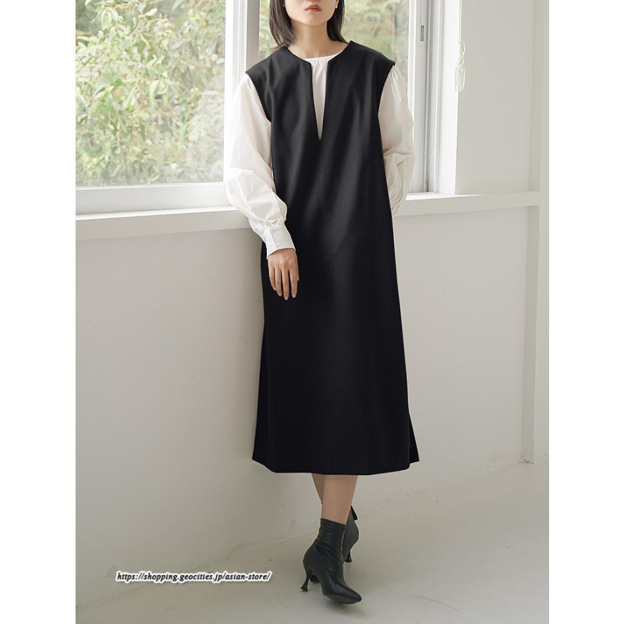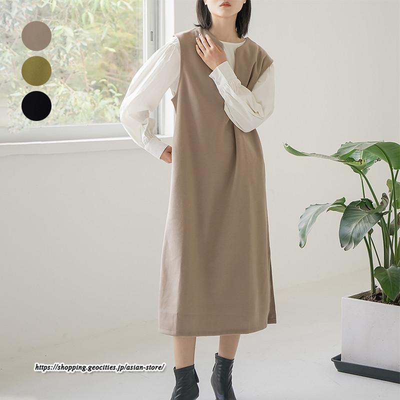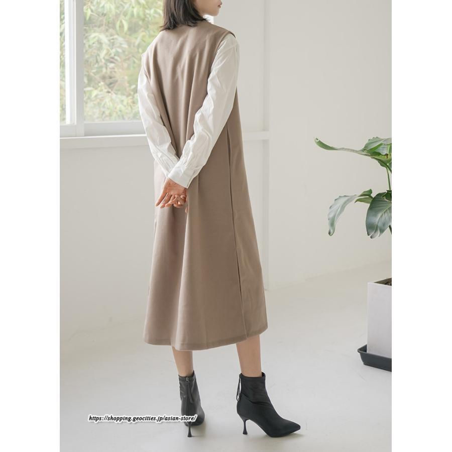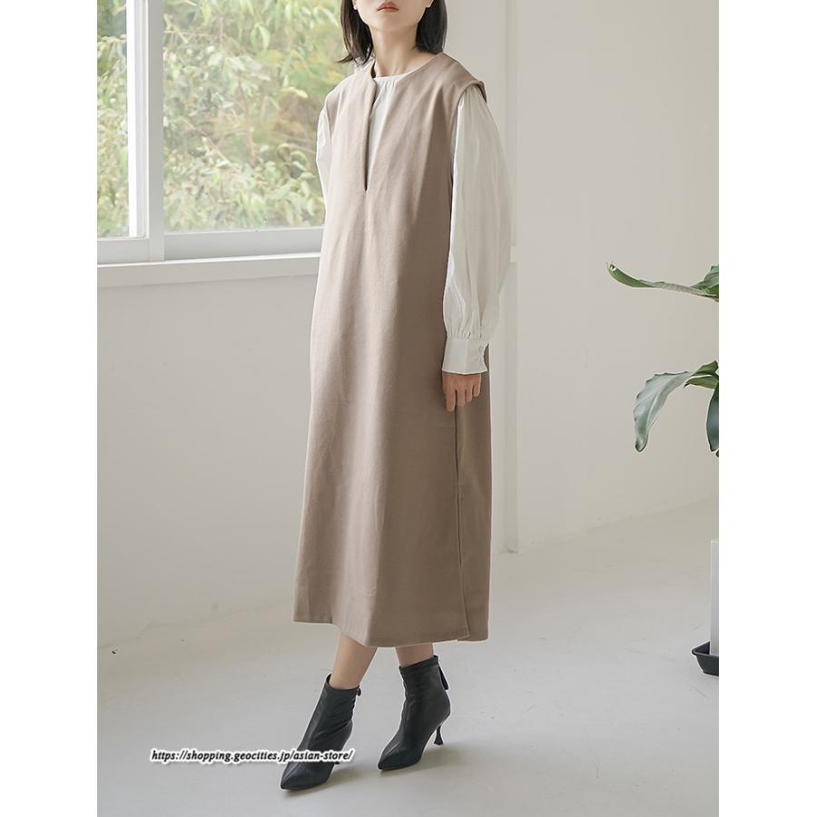 マキシ | ベストワンピース ラシャベスト ラシャワンピース ロング丈 ノースリーブ 袖なし レディース ロングベスト ワンピース 無地 大人 ラシャ スリット ポケット