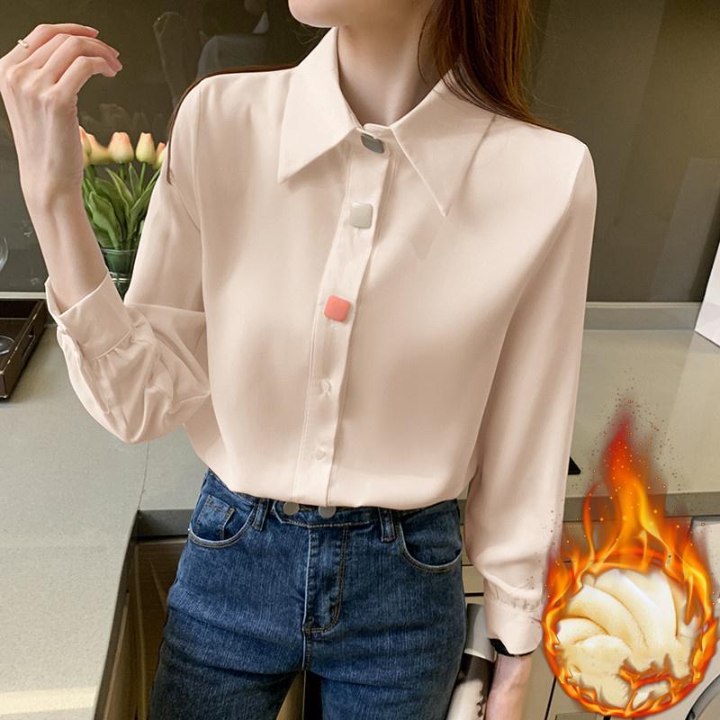 レディースシャツ 通勤用 長袖 裏起毛 裏ボア 防寒 暖かい 無地 シンプル 通勤 オフィス 冬服 レディーストップス スーツに合う