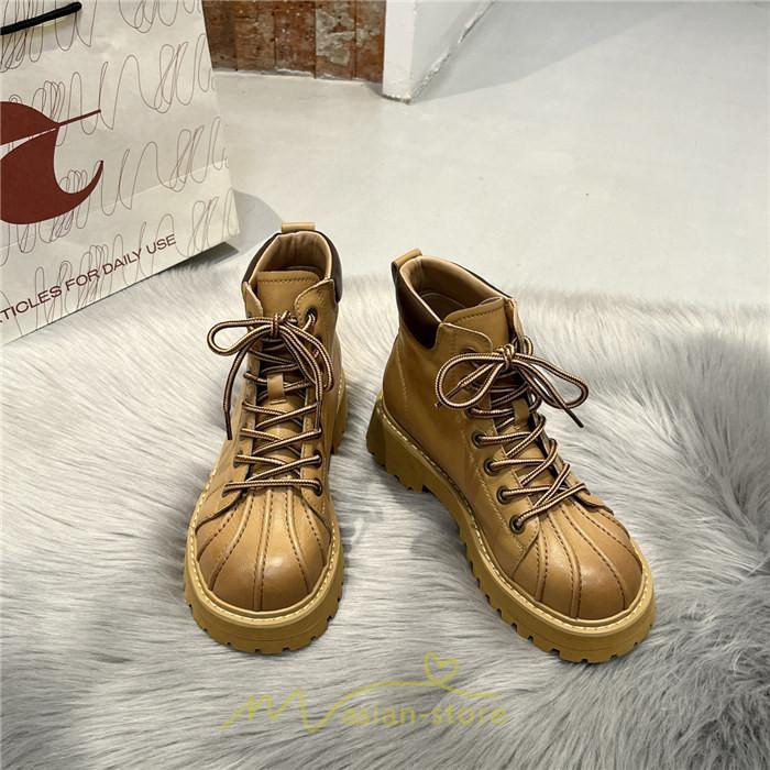 つまさきの形が丸いラウンドトゥだから、指に優しい履き心地で、長時間歩いても足が痛くならないブーツです。