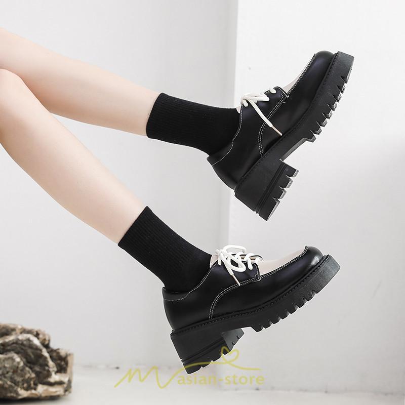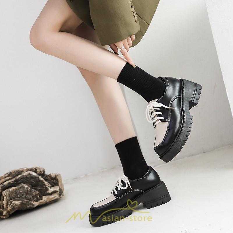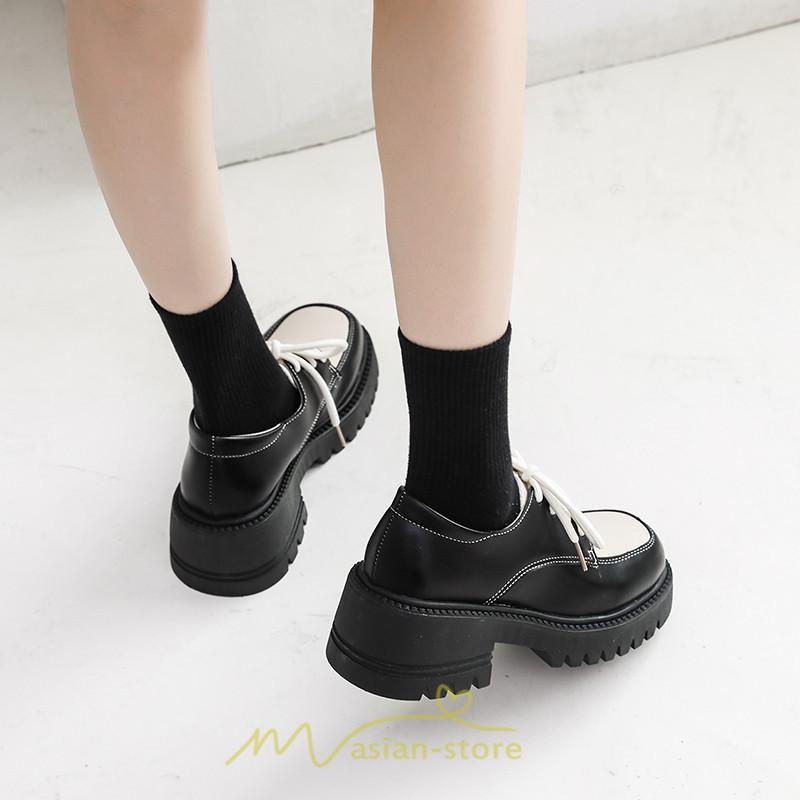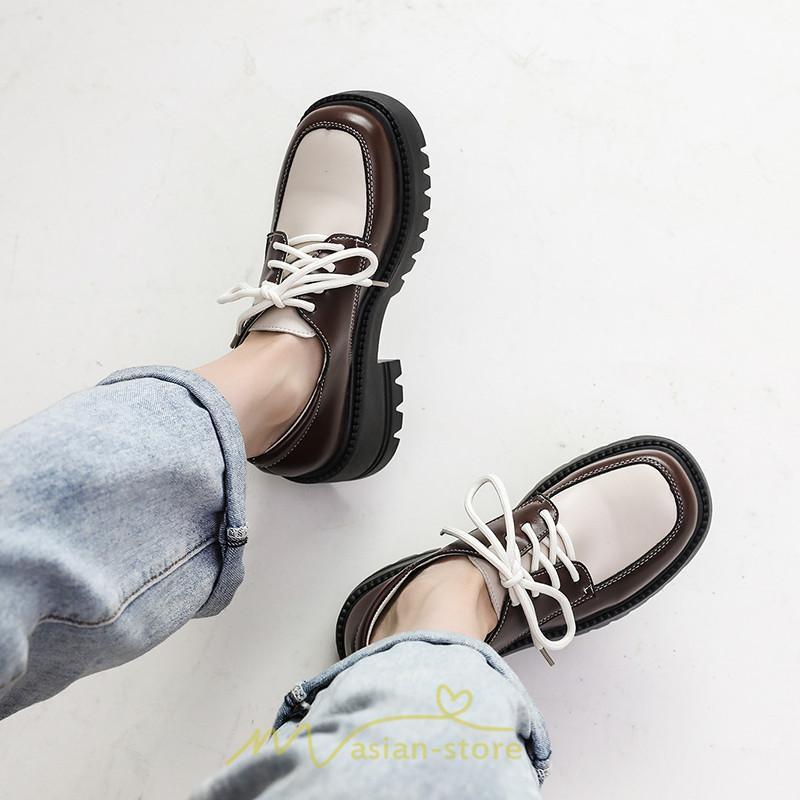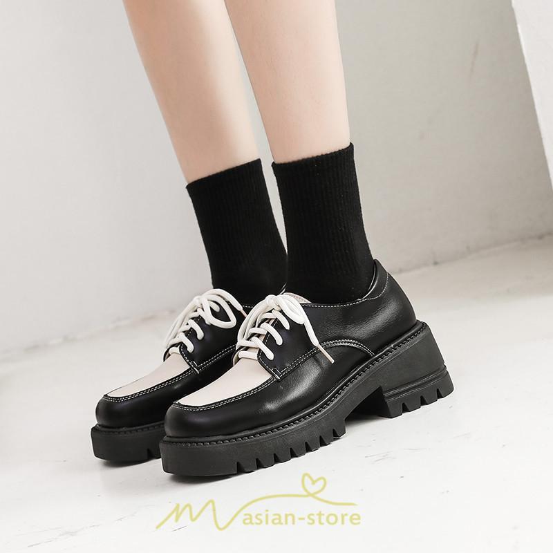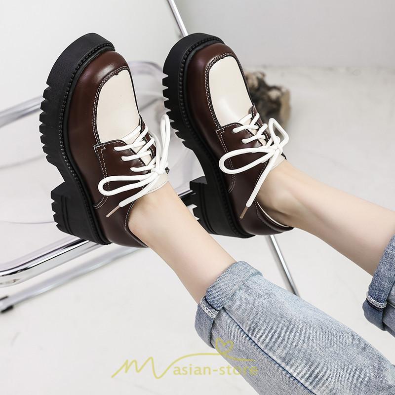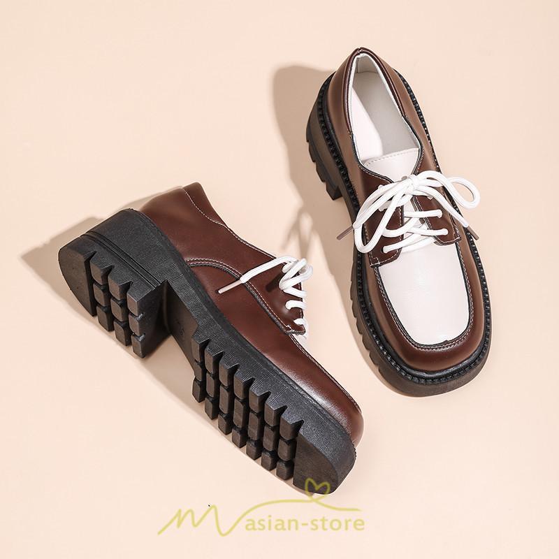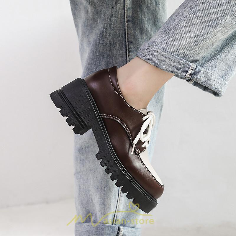 ローファー | 厚底 レディース 編み上げ 学生 通勤 通園 通学 靴 入学 スクール ハロウィン 学園祭 コスプレ 痛くない 疲れにくい 柔らかい 10代20代30代40代