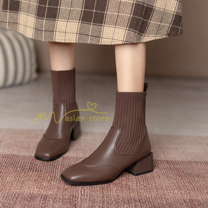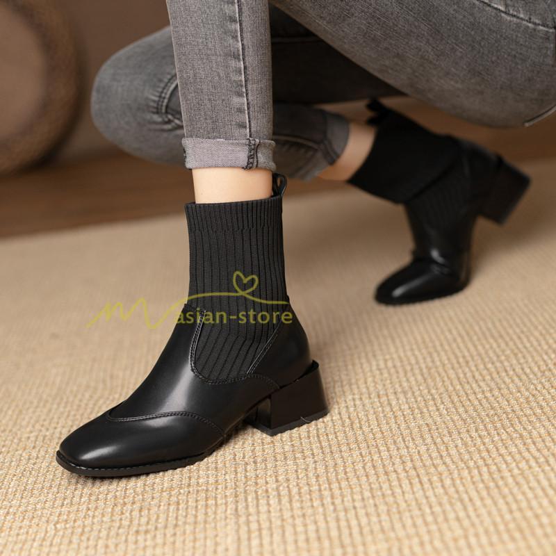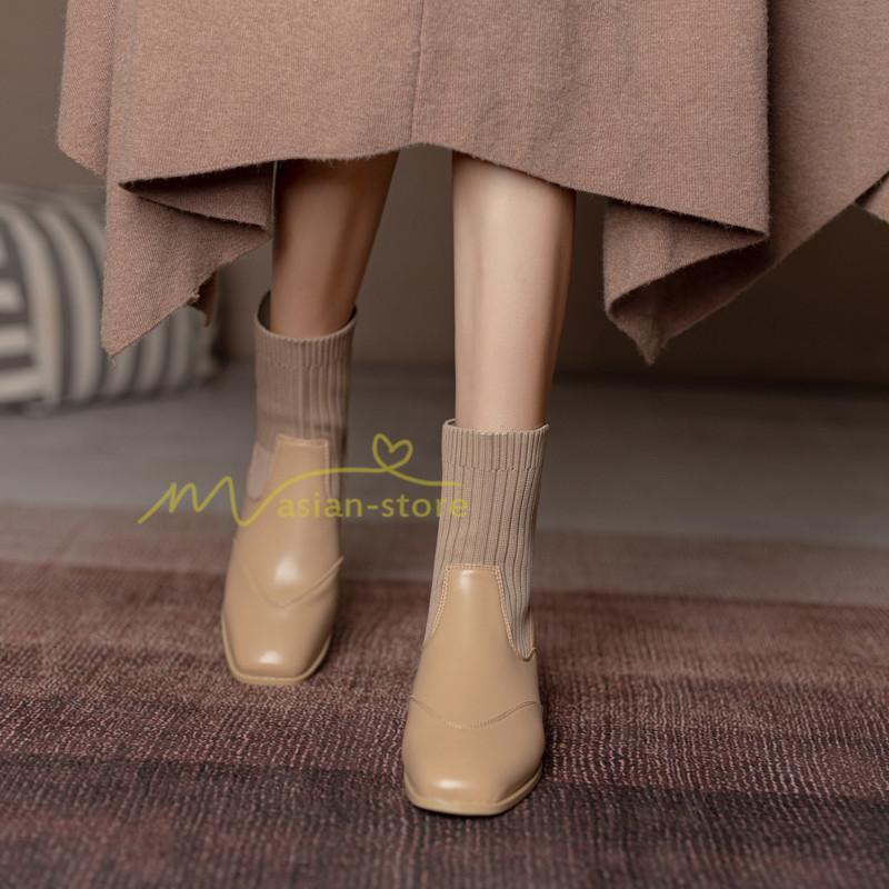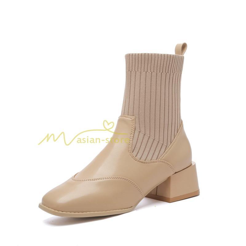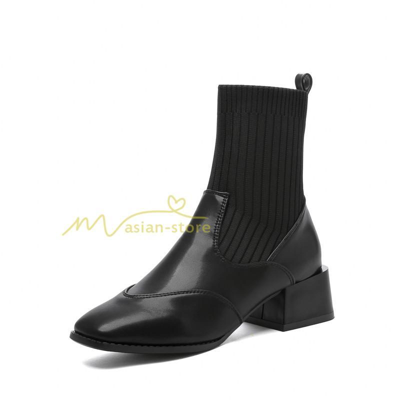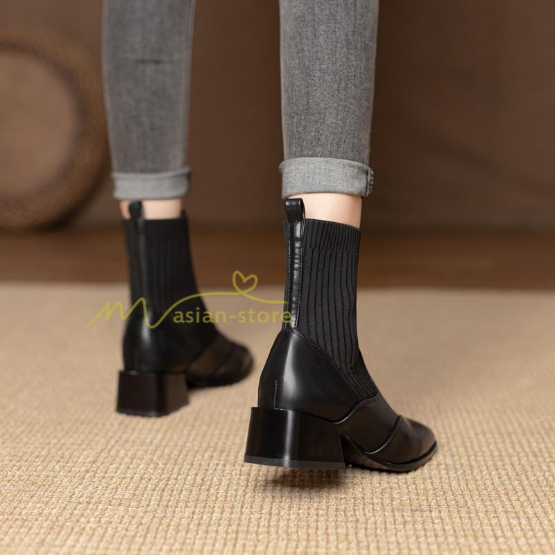 定番デザインで合わせやすいベーシックなショートブーツ太ヒールで疲れにくく安定感も抜群