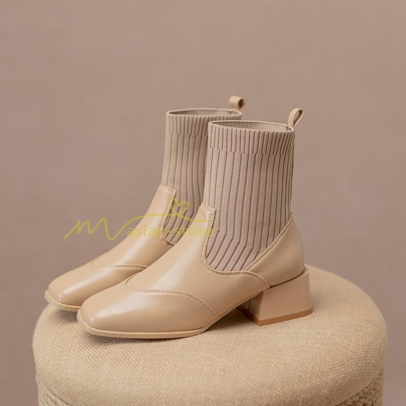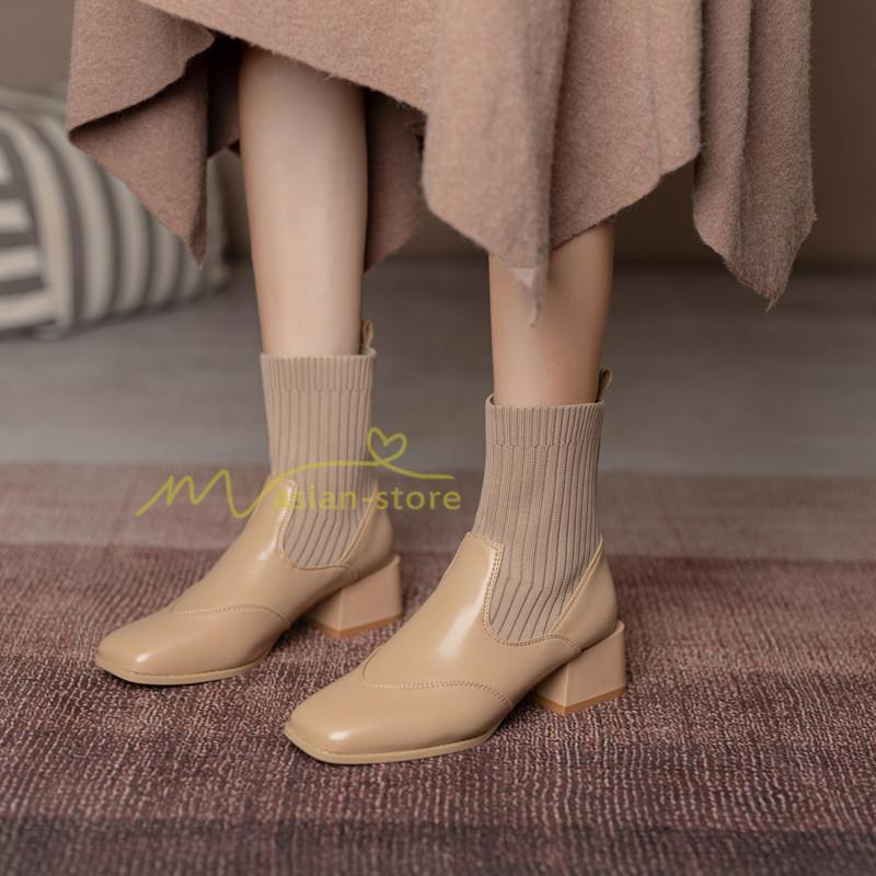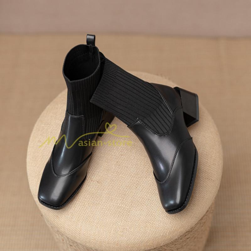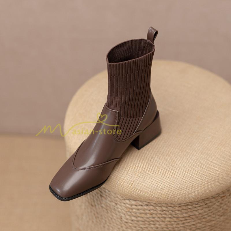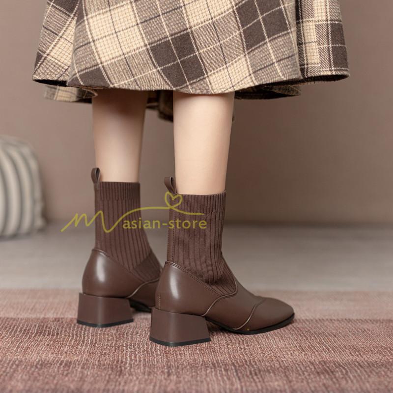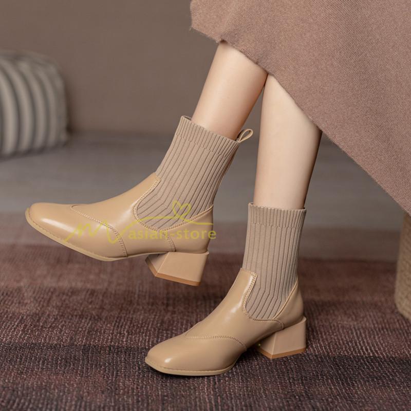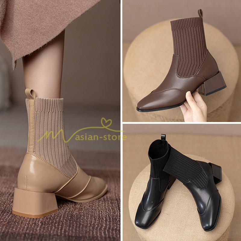 定番デザインで合わせやすいベーシックなショートブーツ太ヒールで疲れにくく安定感も抜群