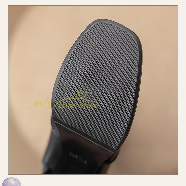 ヒールは安定性のあるチャンキーヒールで、歩きやすいところも嬉しいポイントです。