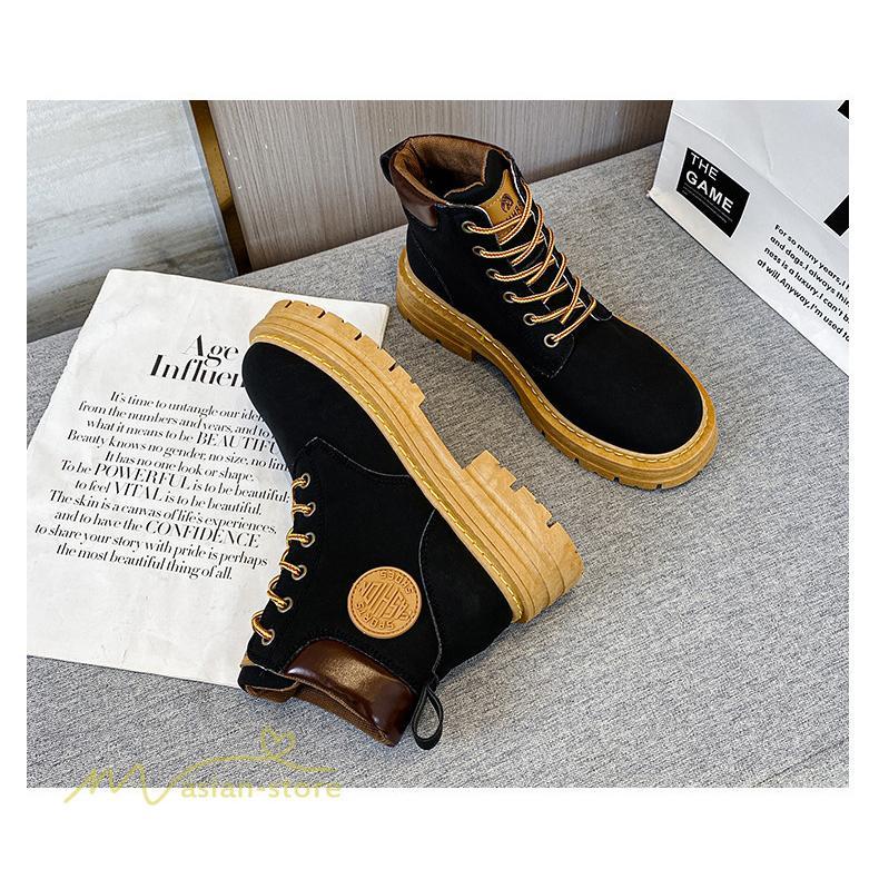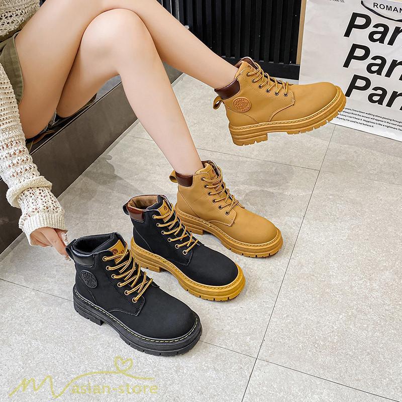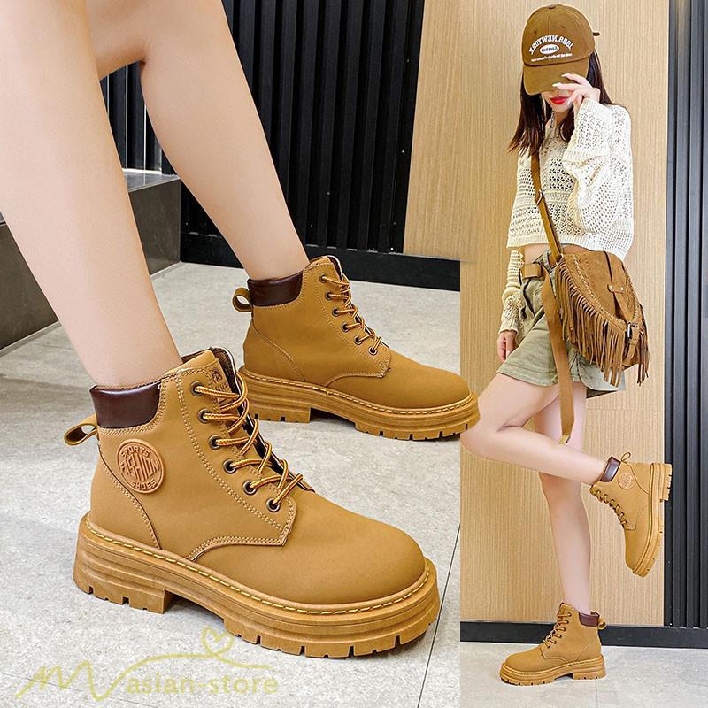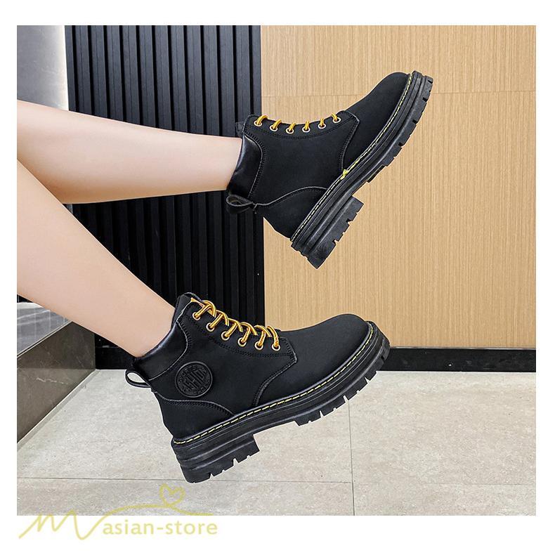 ショートブーツ | レディース ブーティー 太ヒール ブーツ ショートヒール カジュアル レースアップ 歩きやすい コスプレ靴 編み上げブーツ 厚底 ローヒール靴