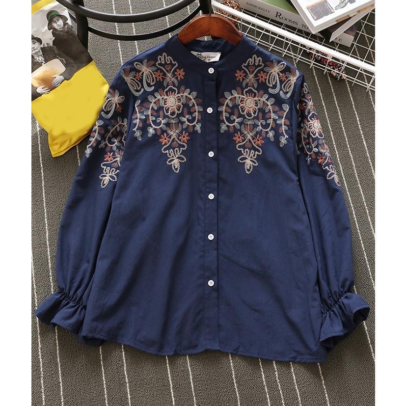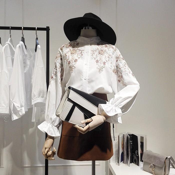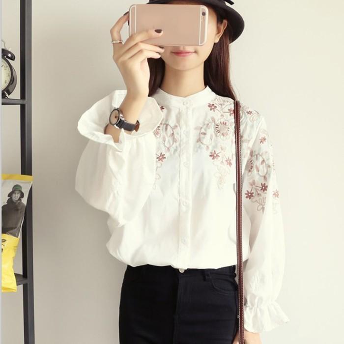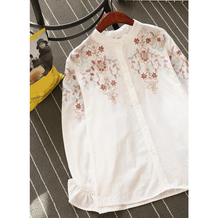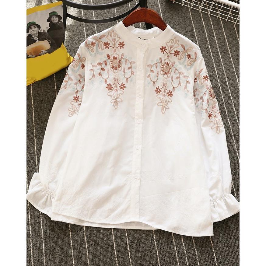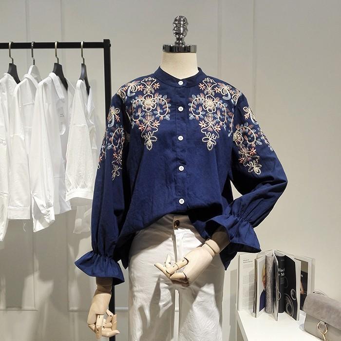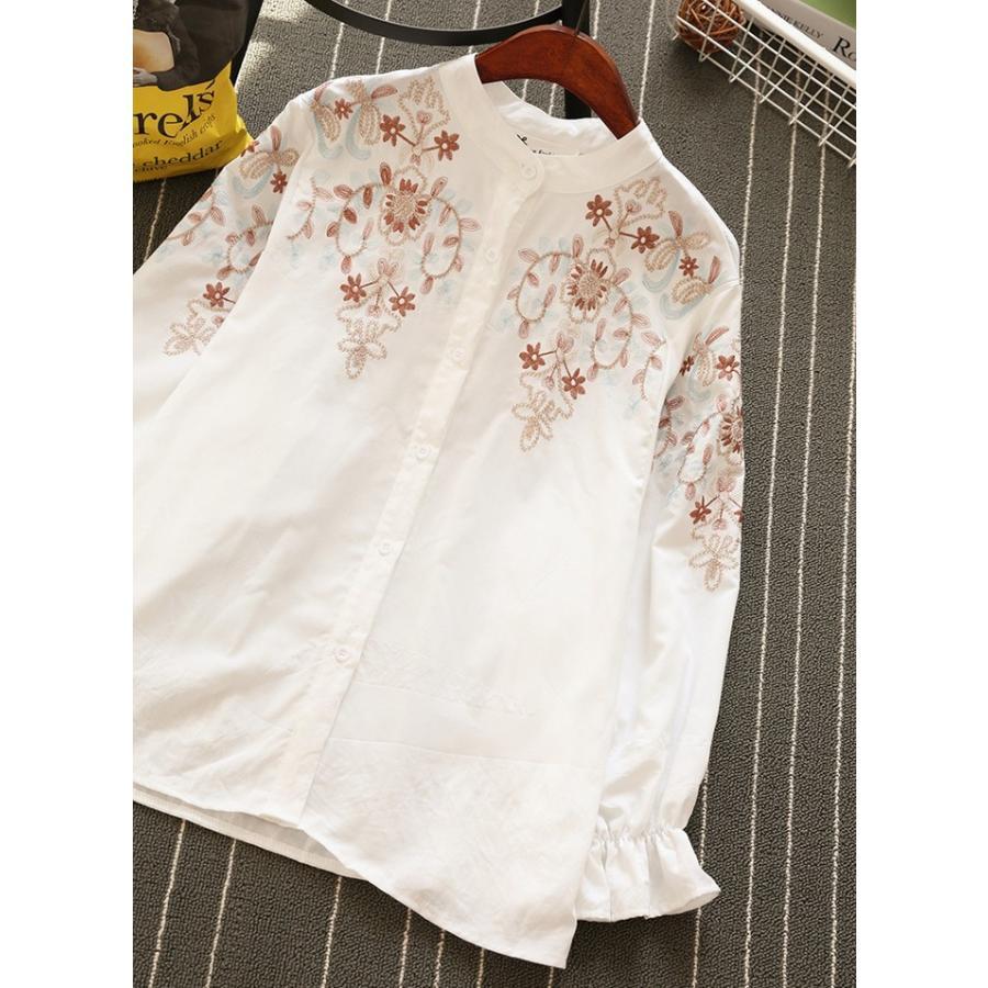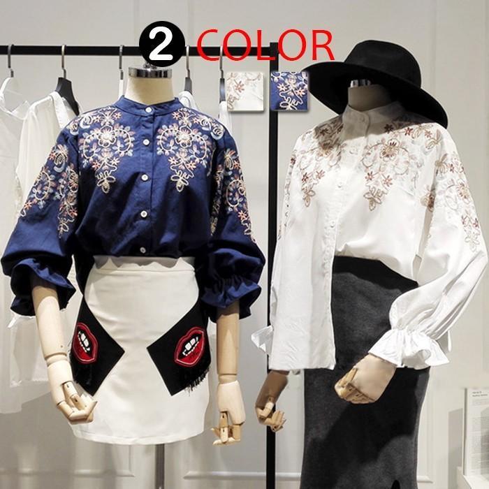 即日発送 シャツ ブラウスシャツ レディーストップス 刺繍シャツ フリル袖 花刺繍