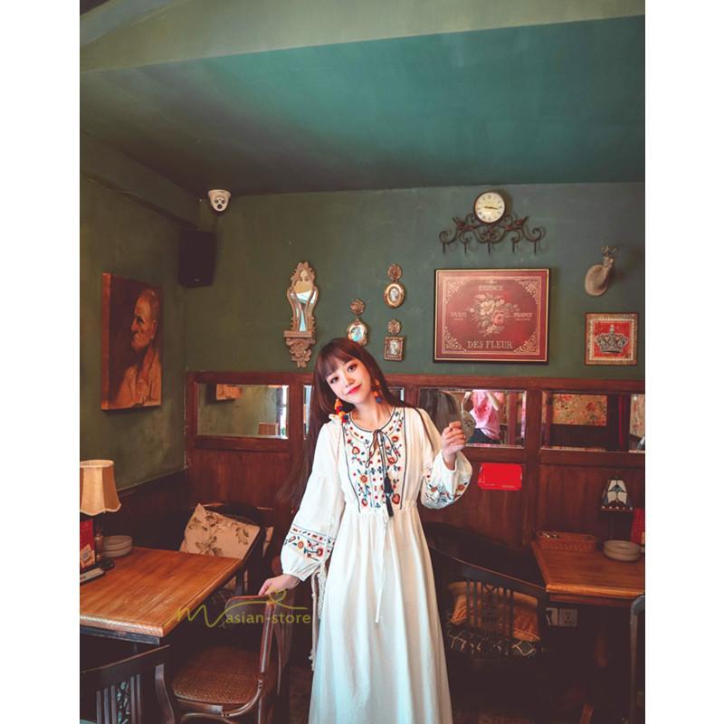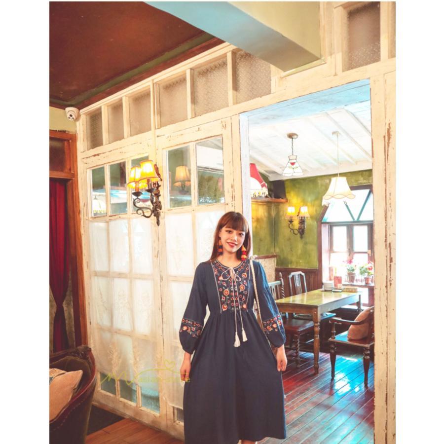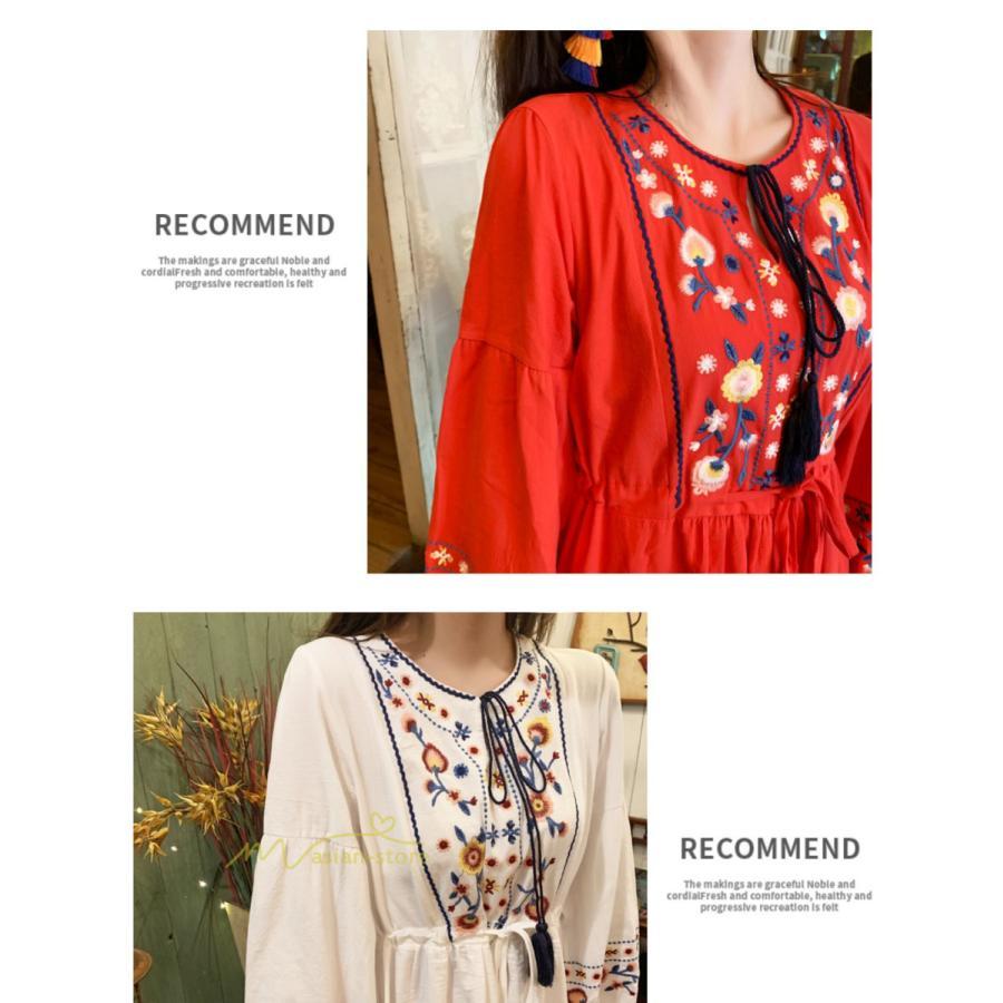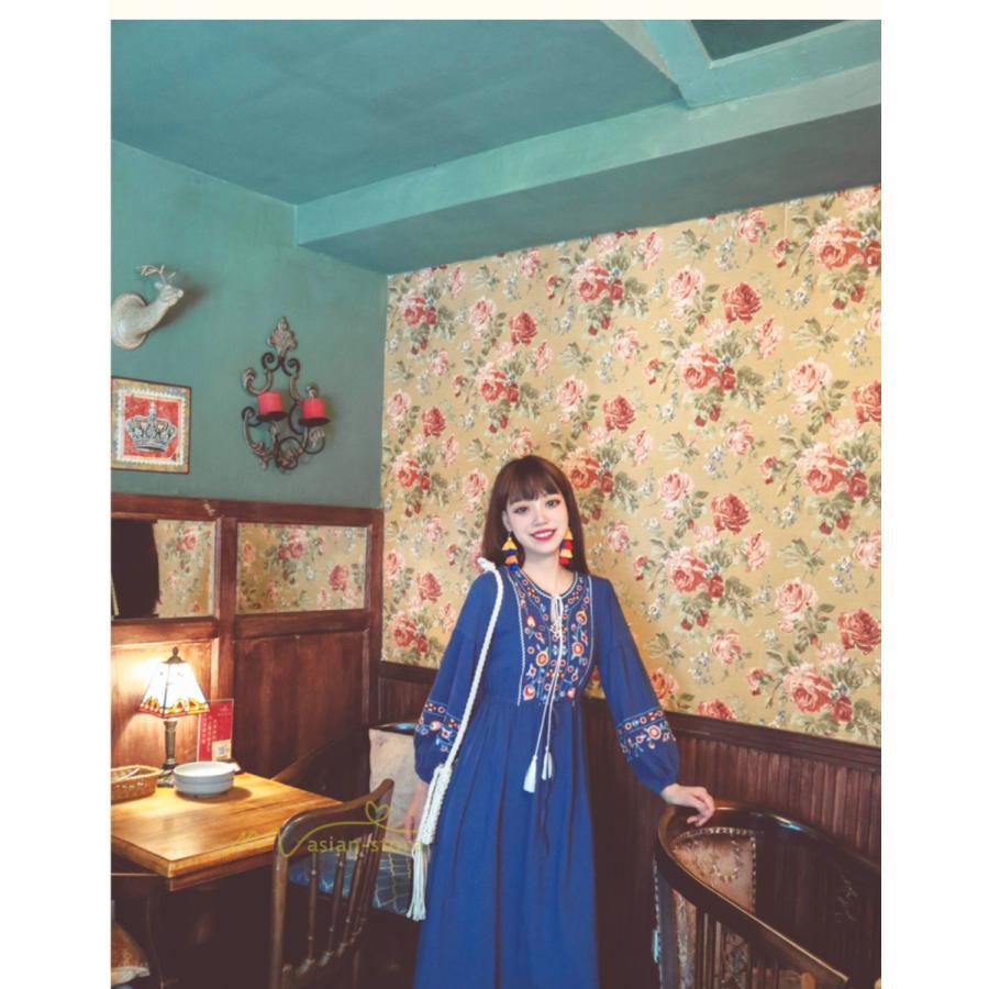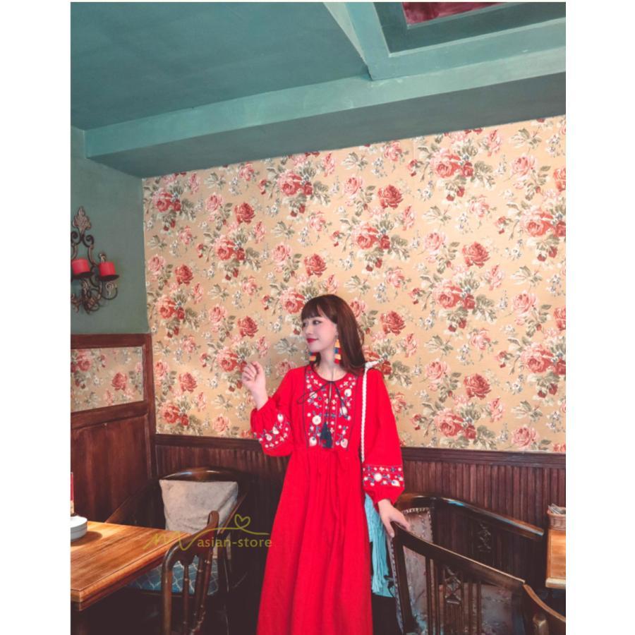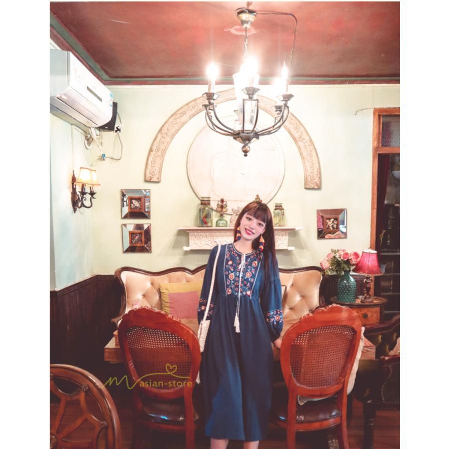 レディース 秋ワンピース 長袖 ドレス マキシ丈ワンピース 結婚式 夏服 刺繍 レトロ風 ヴィンテージ風
