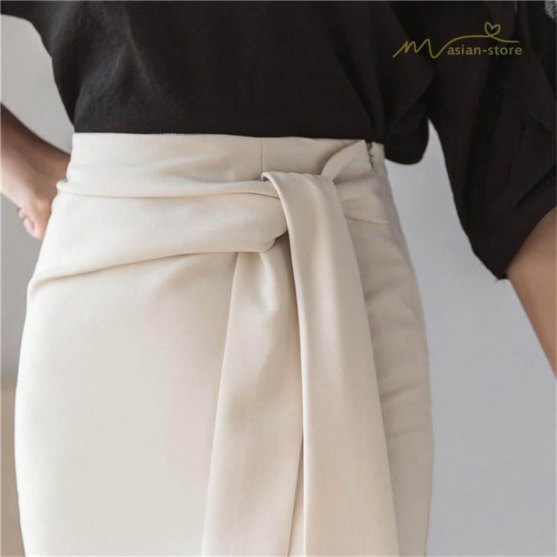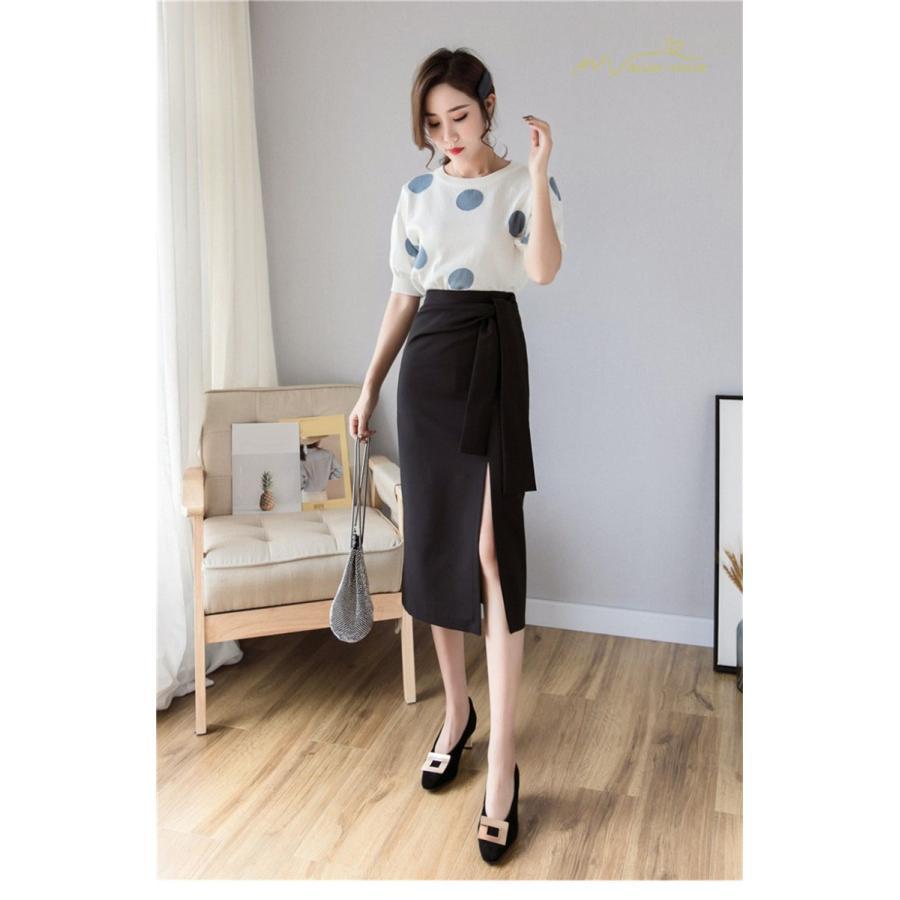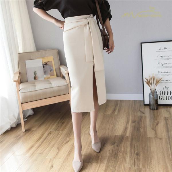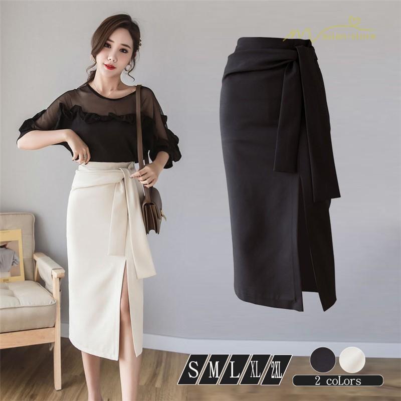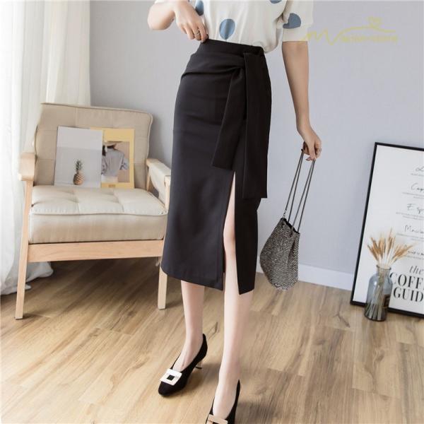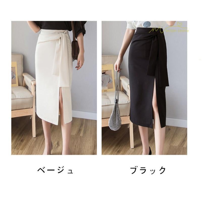 スタイリッシュ スリットスカート Aライン リボン付き デイリーコーデ