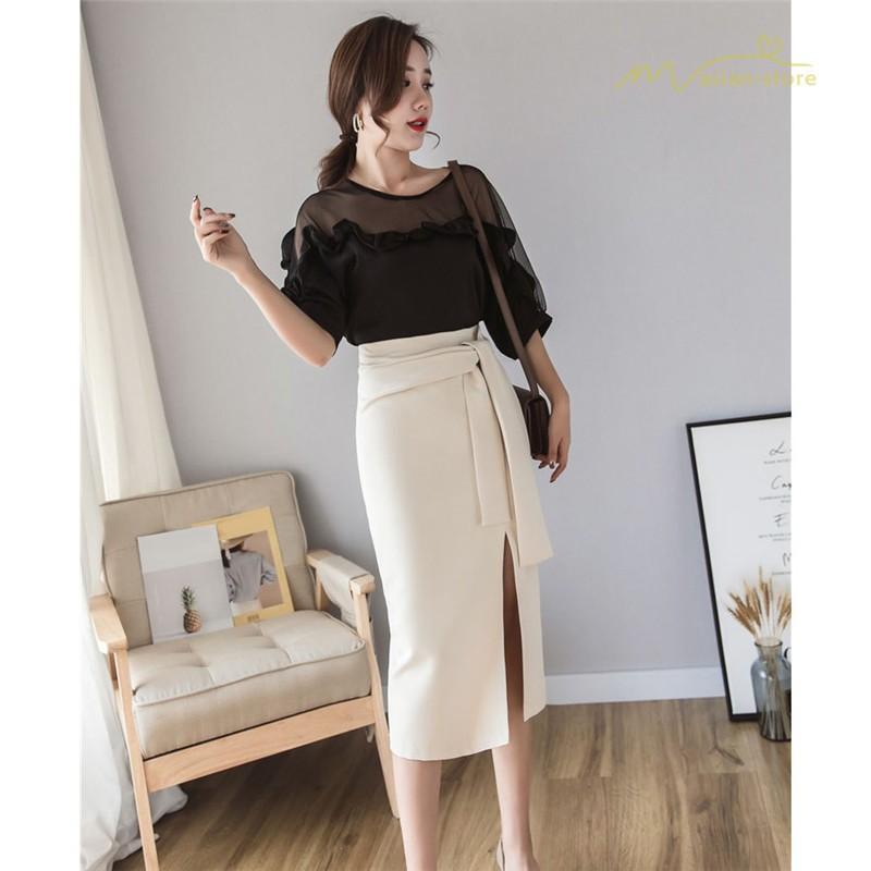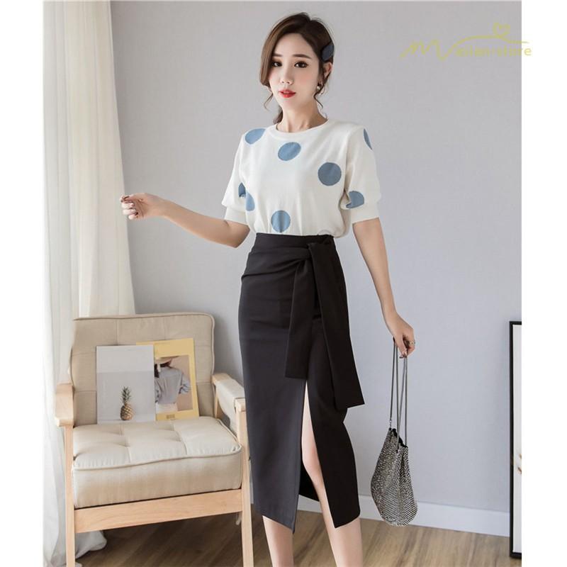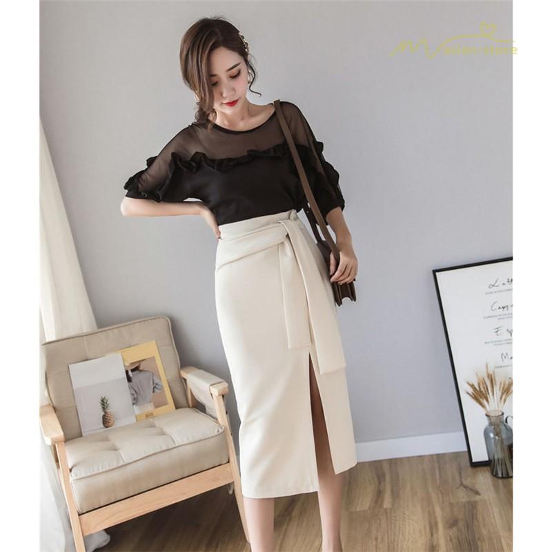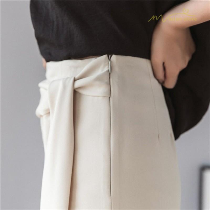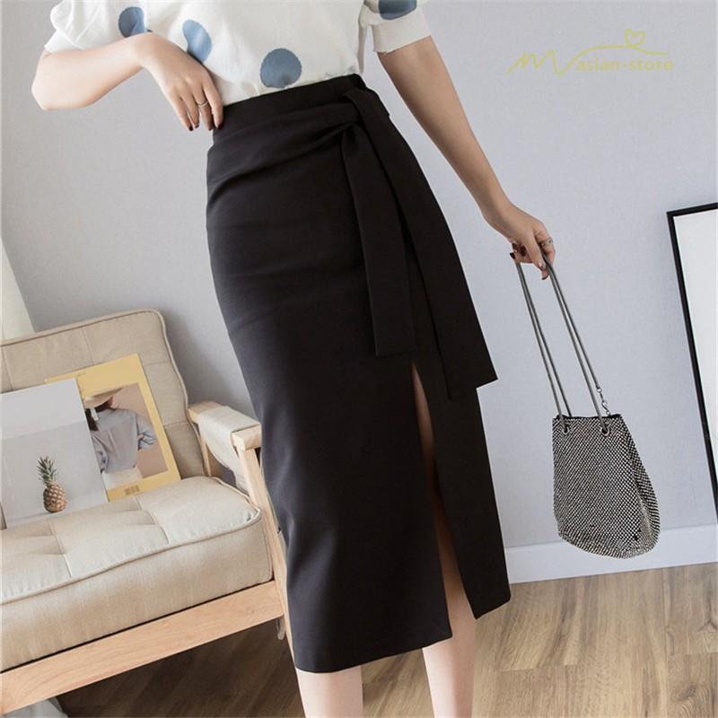スタイリッシュ スリットスカート Aライン リボン付き デイリーコーデ