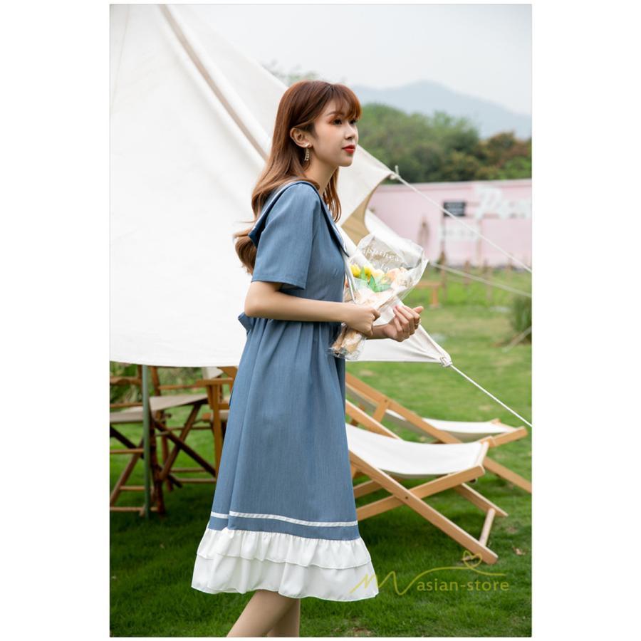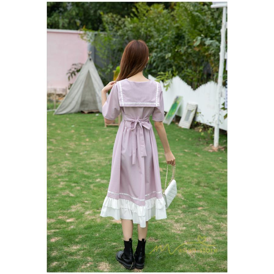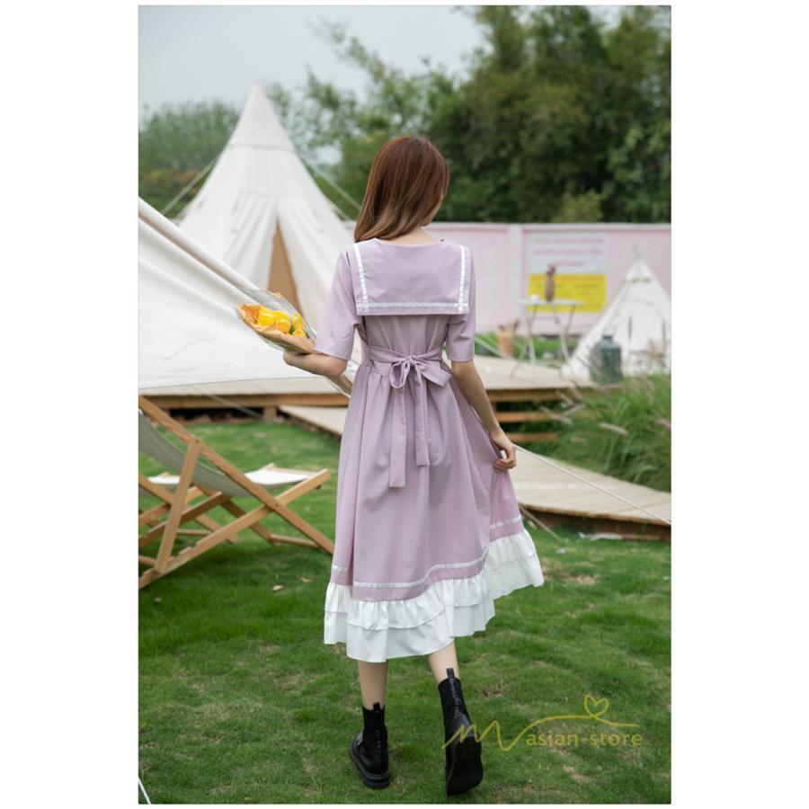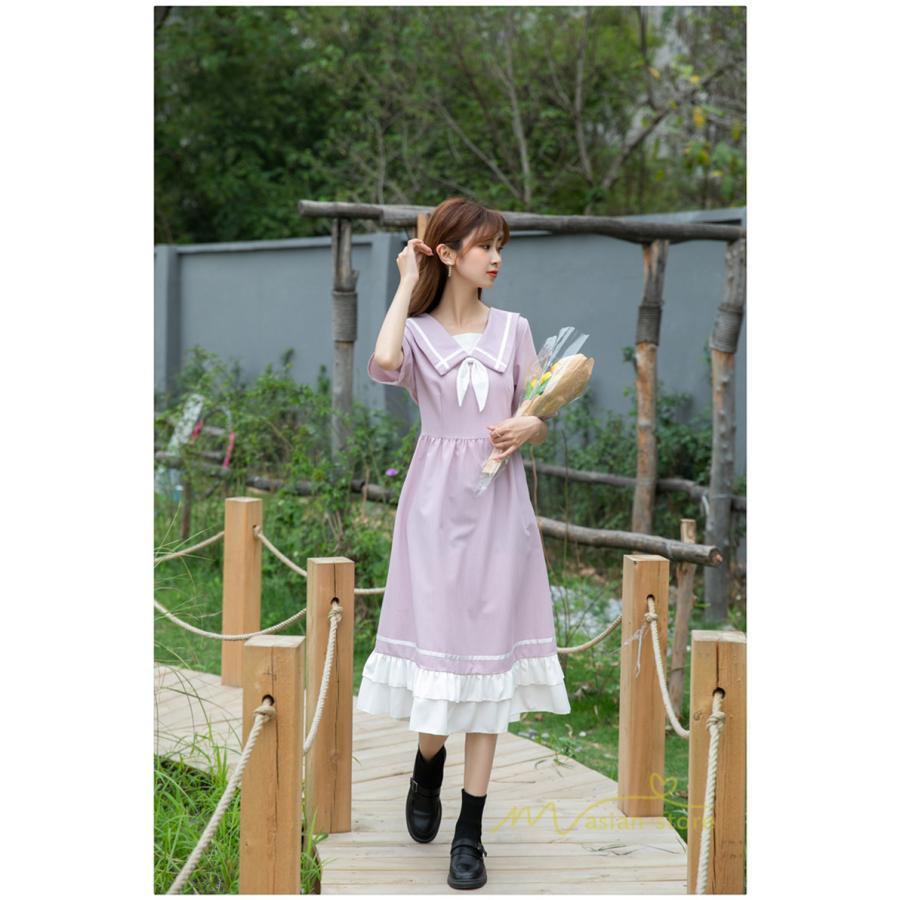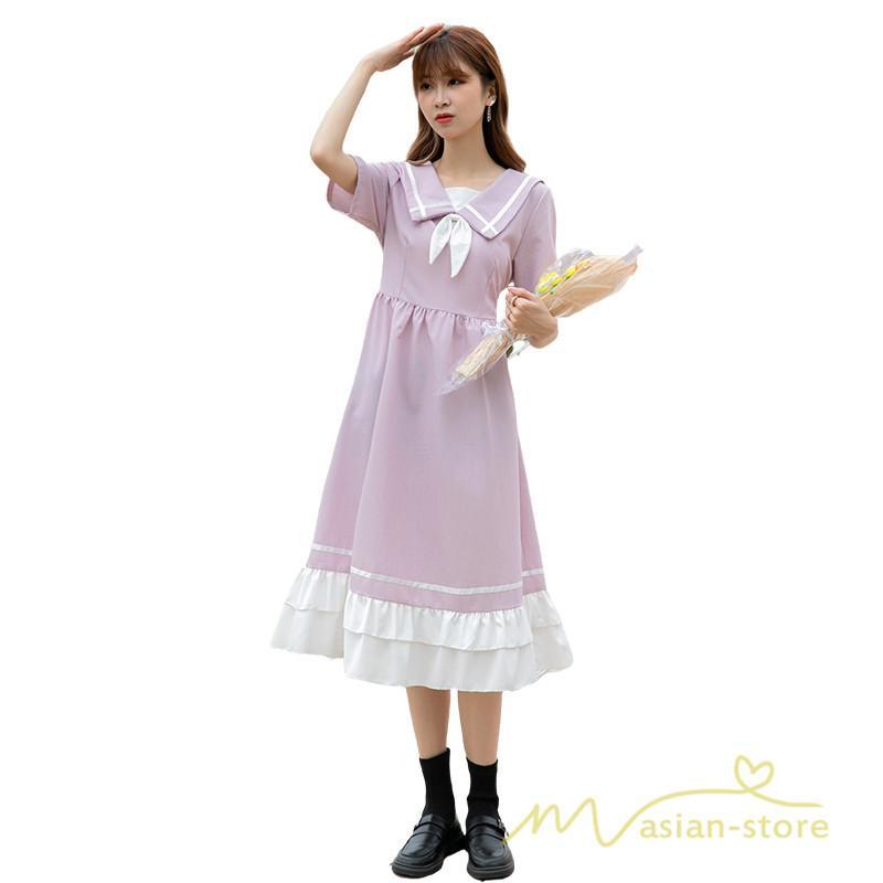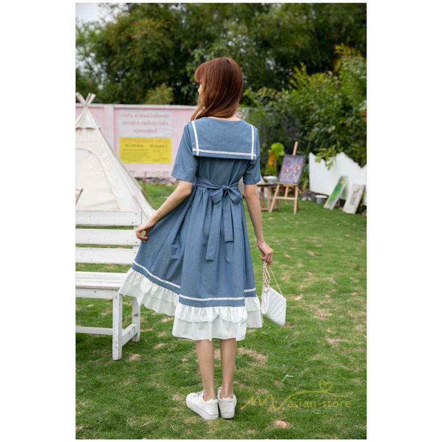 ワンピース レディース 春夏 半袖 ハーフスリーブ ワンピース セーラーカラー ロング丈 マキシ丈 フレア ビッグ裾幅 かわいい ワンピース ゆったり 着痩せ お出かけ 春夏コーデ 夏新作 お洒落 ゆったり レディースファッション 20代 30代 綺麗 2021 春夏 新品 新作
