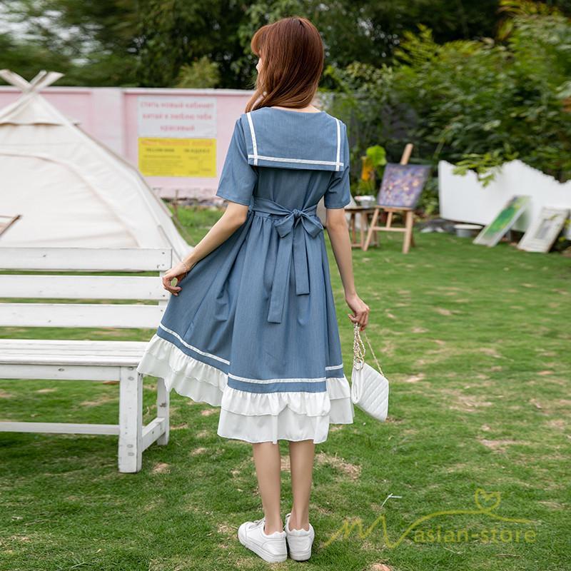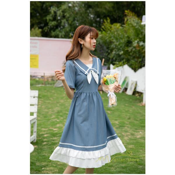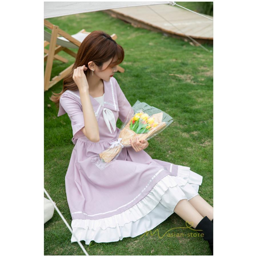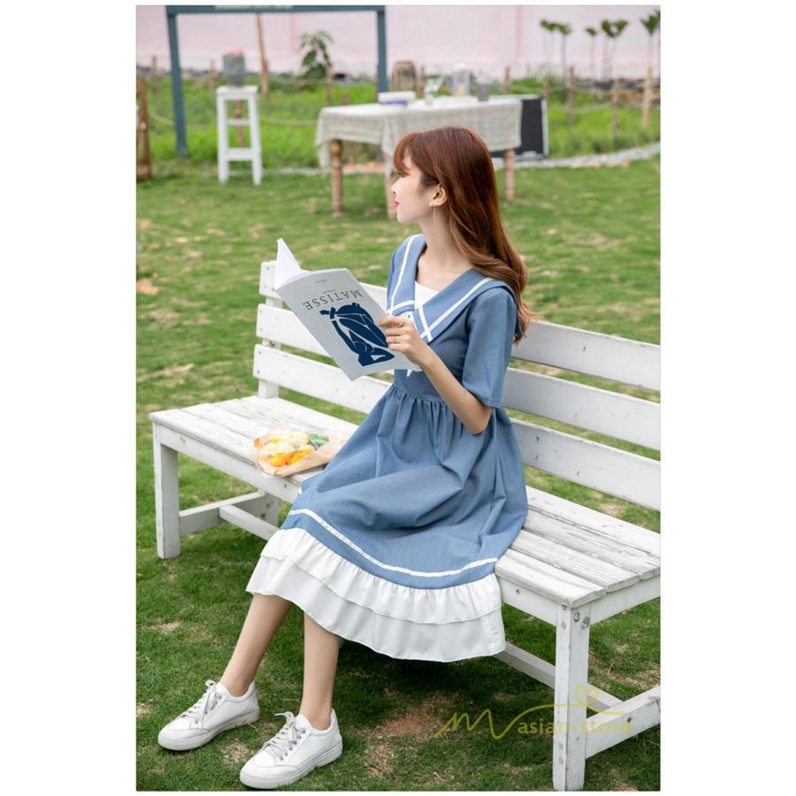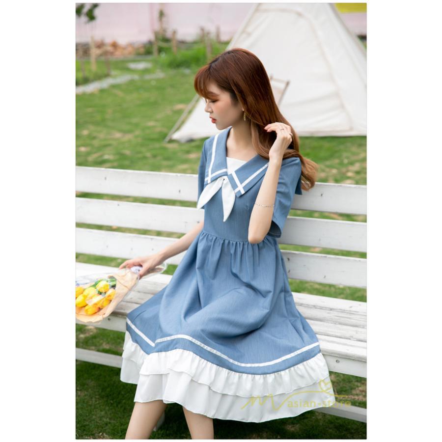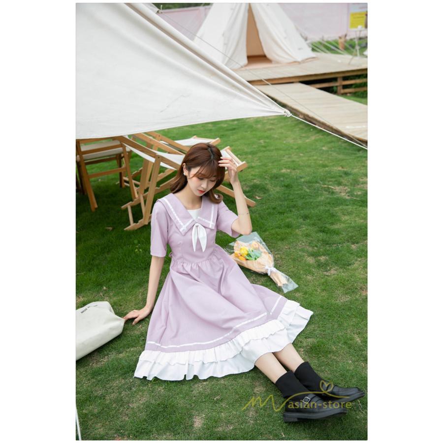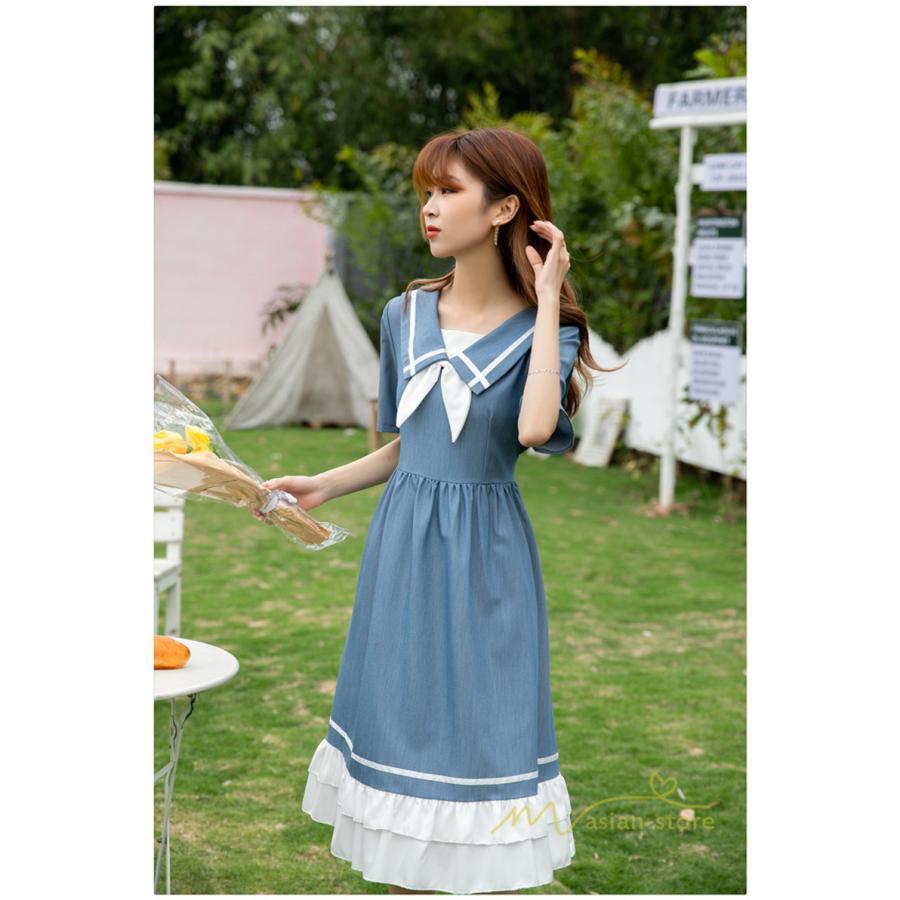 ワンピース レディース 春夏 半袖 ハーフスリーブ ワンピース セーラーカラー ロング丈 マキシ丈 フレア ビッグ裾幅 かわいい ワンピース ゆったり 着痩せ お出かけ 春夏コーデ 夏新作 お洒落 ゆったり レディースファッション 20代 30代 綺麗 2021 春夏 新品 新作
