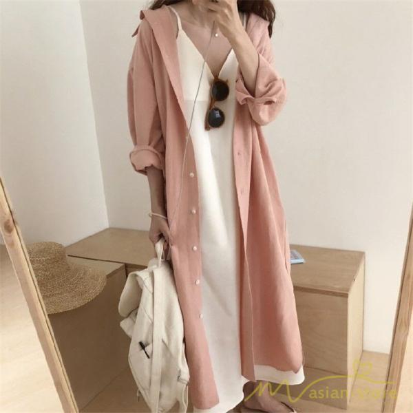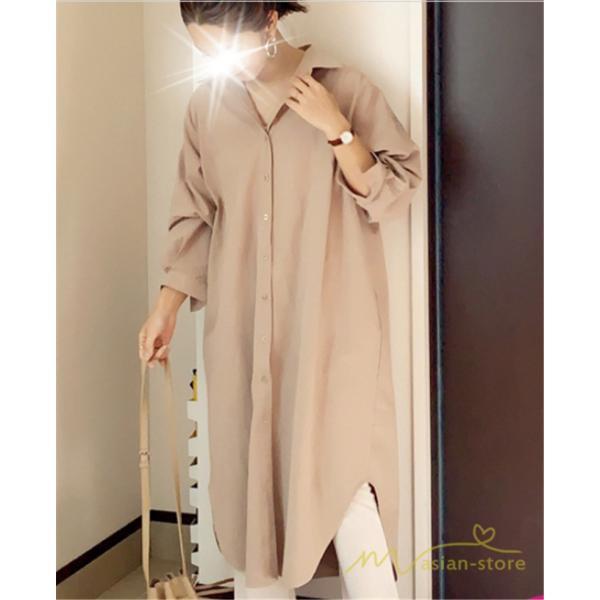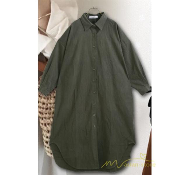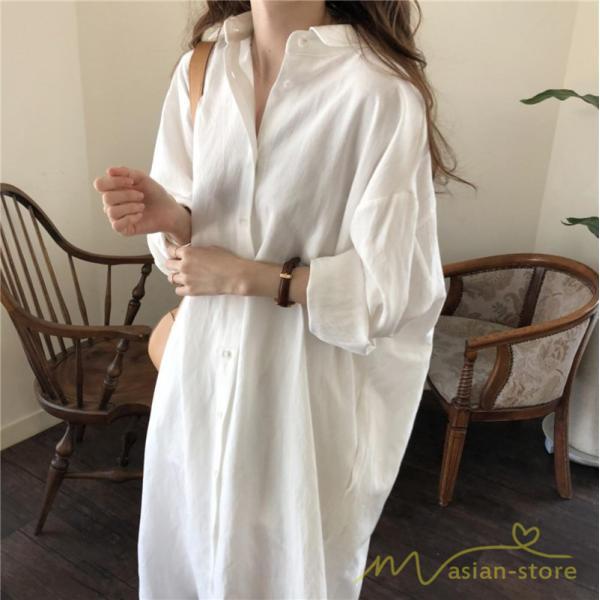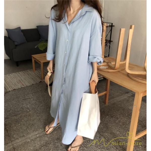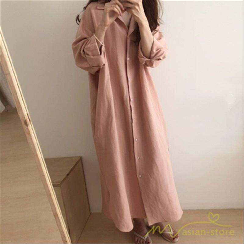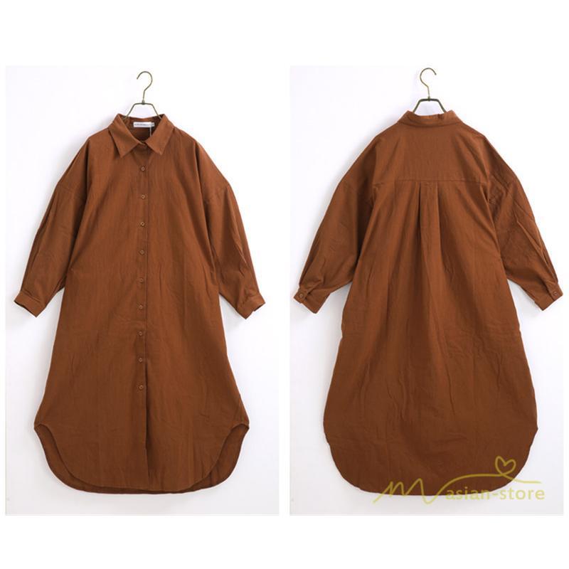 ワンピース | 長袖ロングシャツ20代30代 羽織り 無地 秋物 レディース ロングミモレ丈 大人 綿シャツ ワンピース ママ カジュアル 40代50代