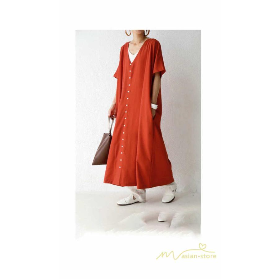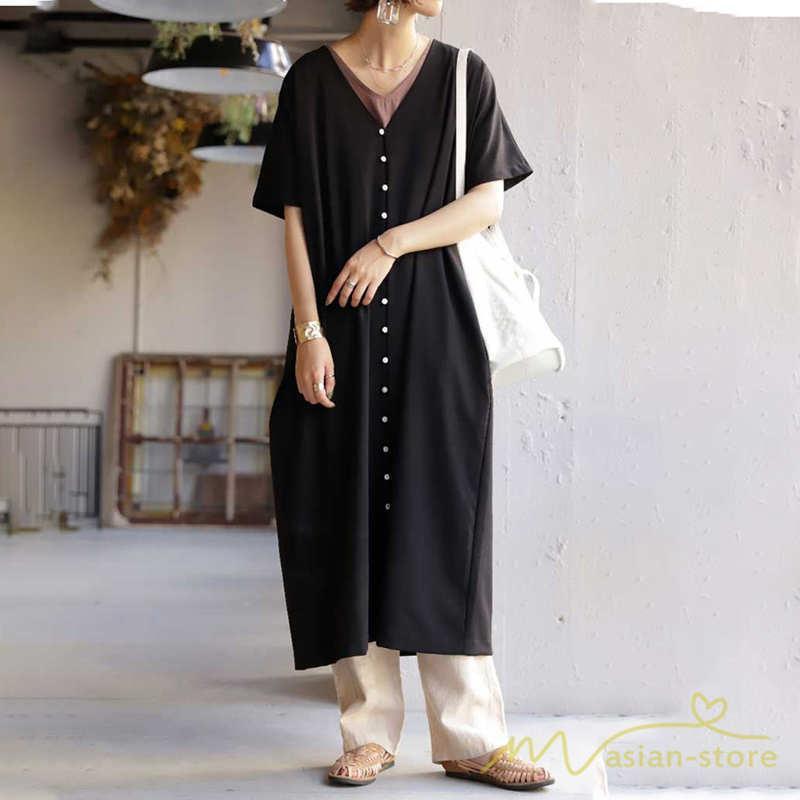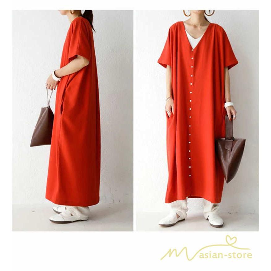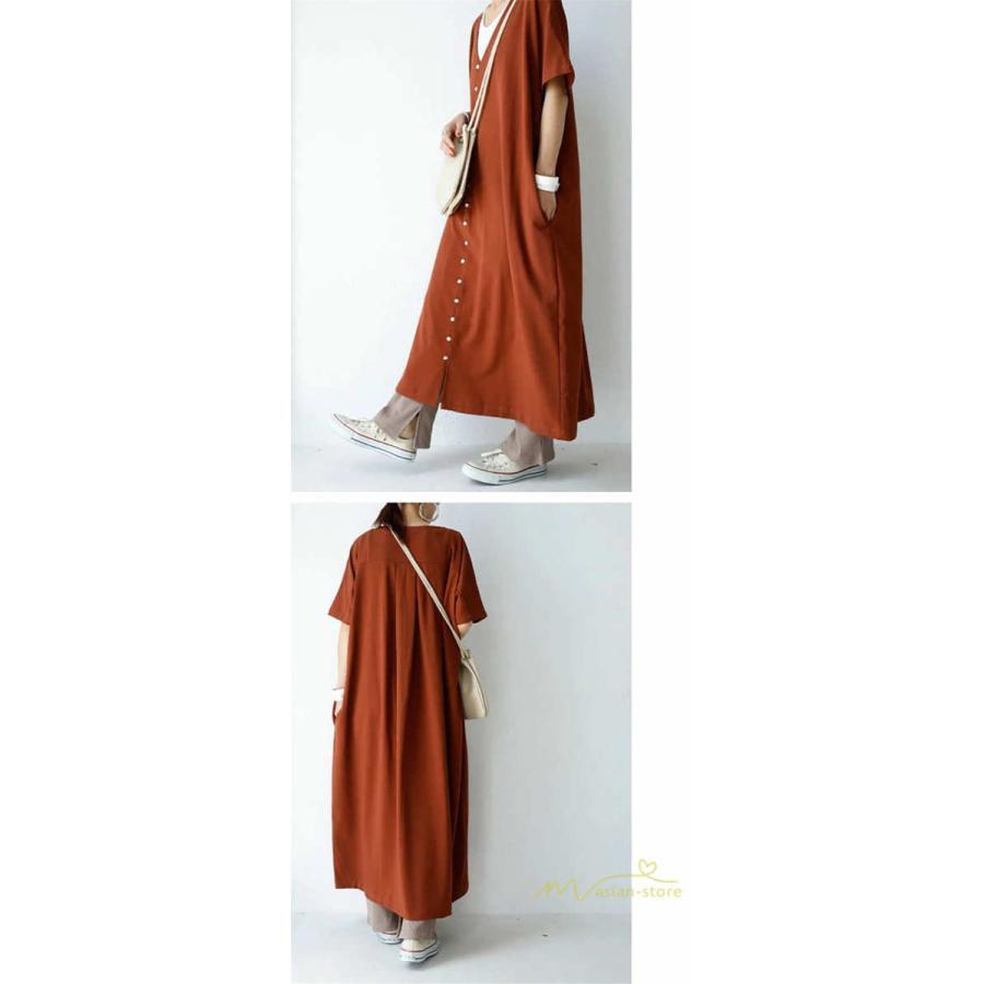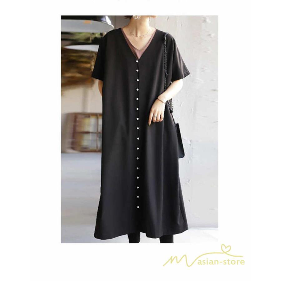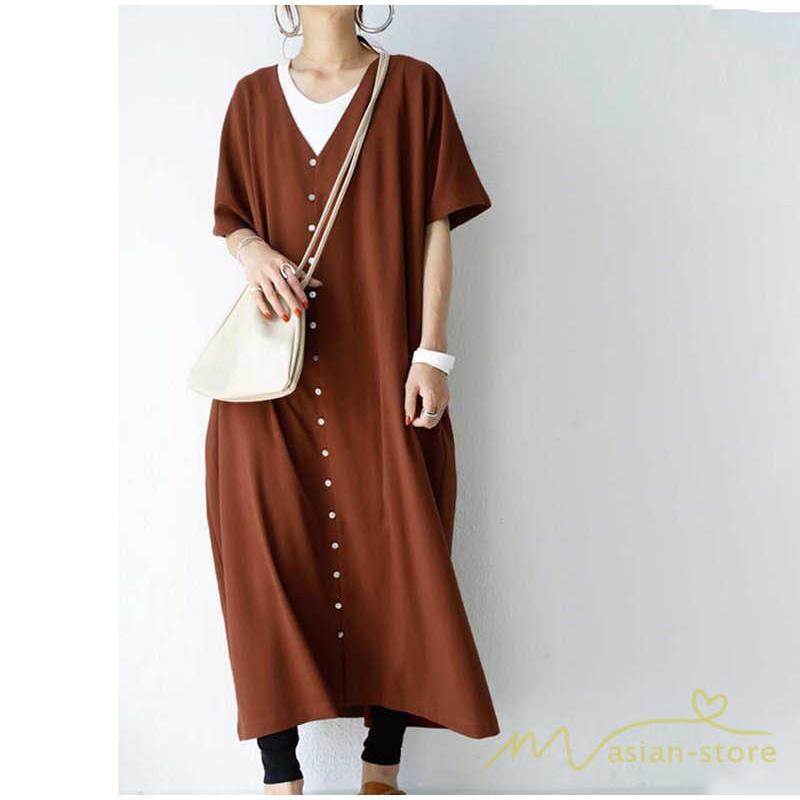 ワンピース レディース シャツワンピース 半袖 七分袖 5分袖 パフスリーブ vネック Aライン ロング ミモレ丈 マキシ丈 体型カバー マキシワンピース 春 夏 カジュアル ゆったり レディースファッション 20代 30代 綺麗 新品 新作 秋物 秋服