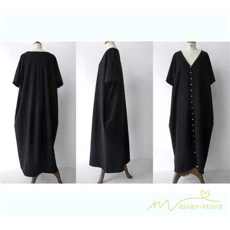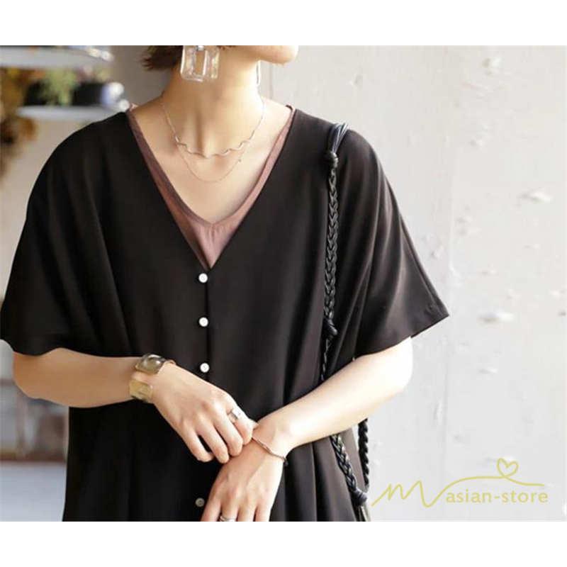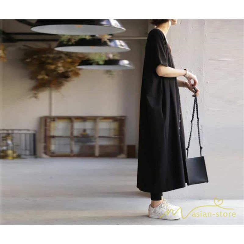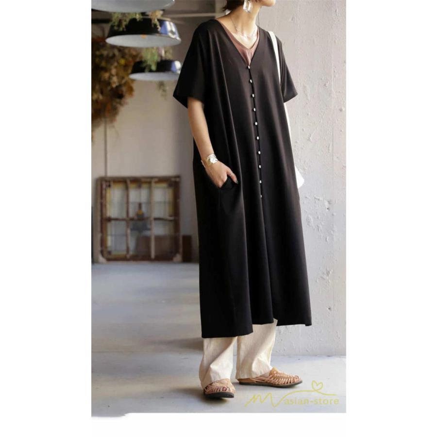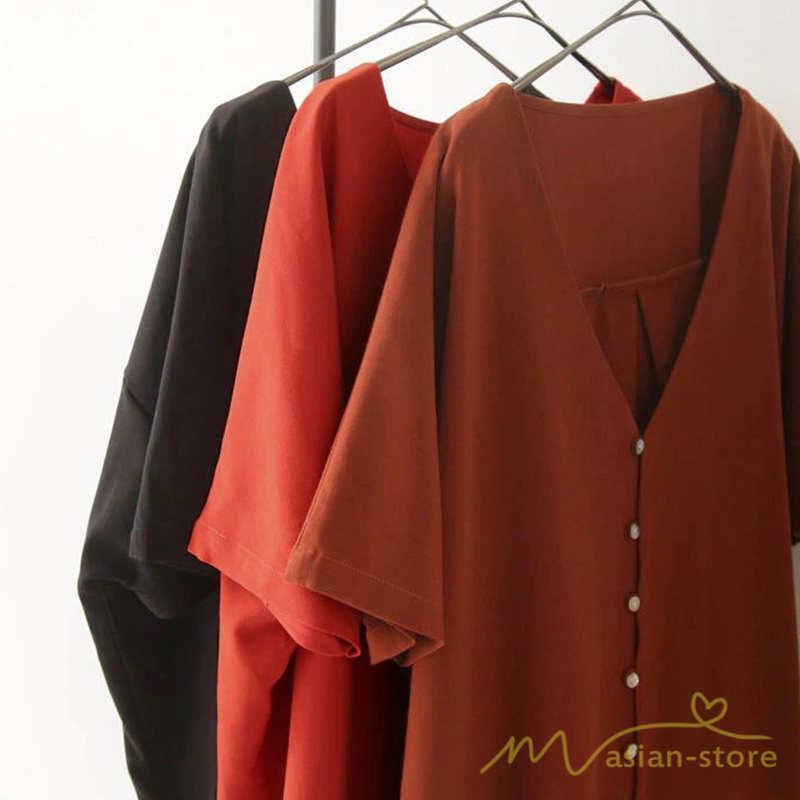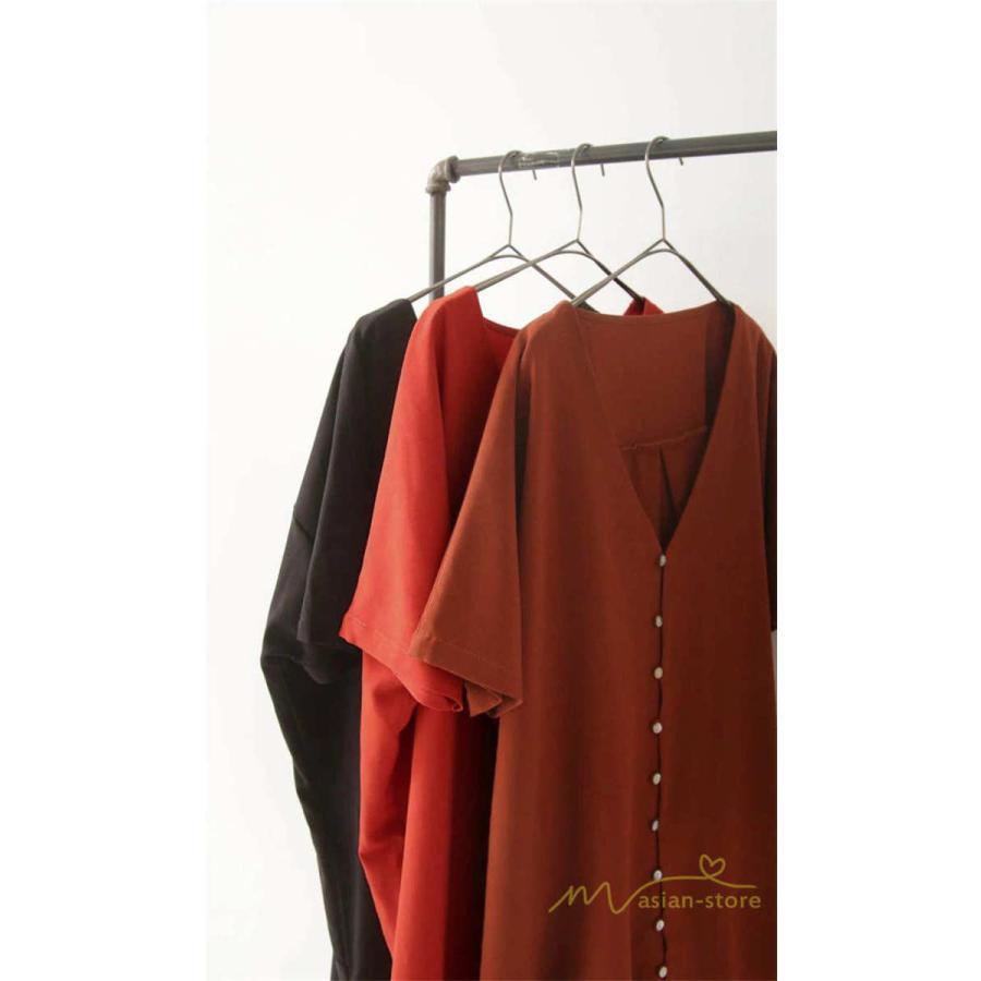 ワンピース レディース シャツワンピース 半袖 七分袖 5分袖 パフスリーブ vネック Aライン ロング ミモレ丈 マキシ丈 体型カバー マキシワンピース 春 夏 カジュアル ゆったり レディースファッション 20代 30代 綺麗 新品 新作 秋物 秋服