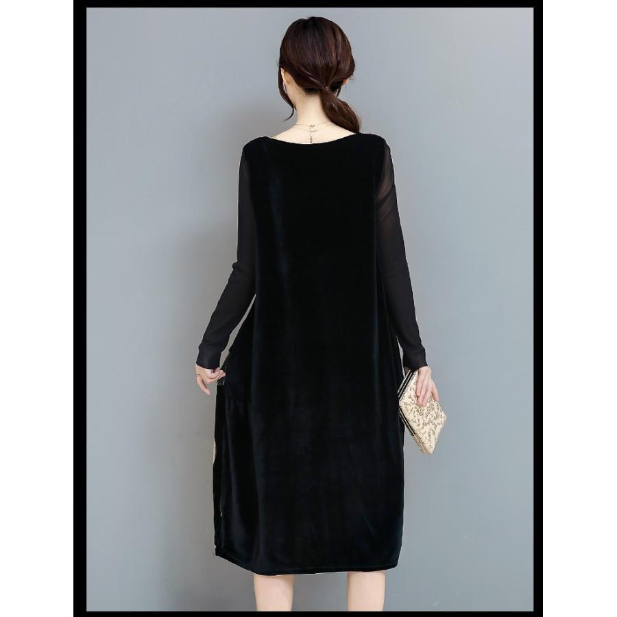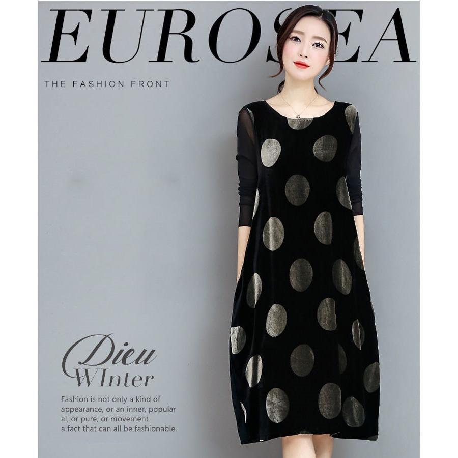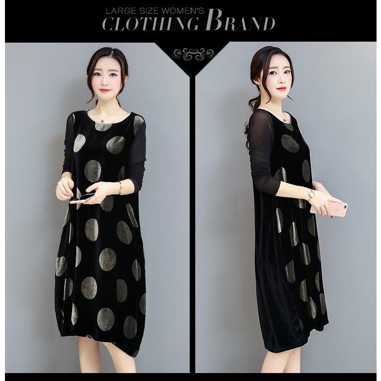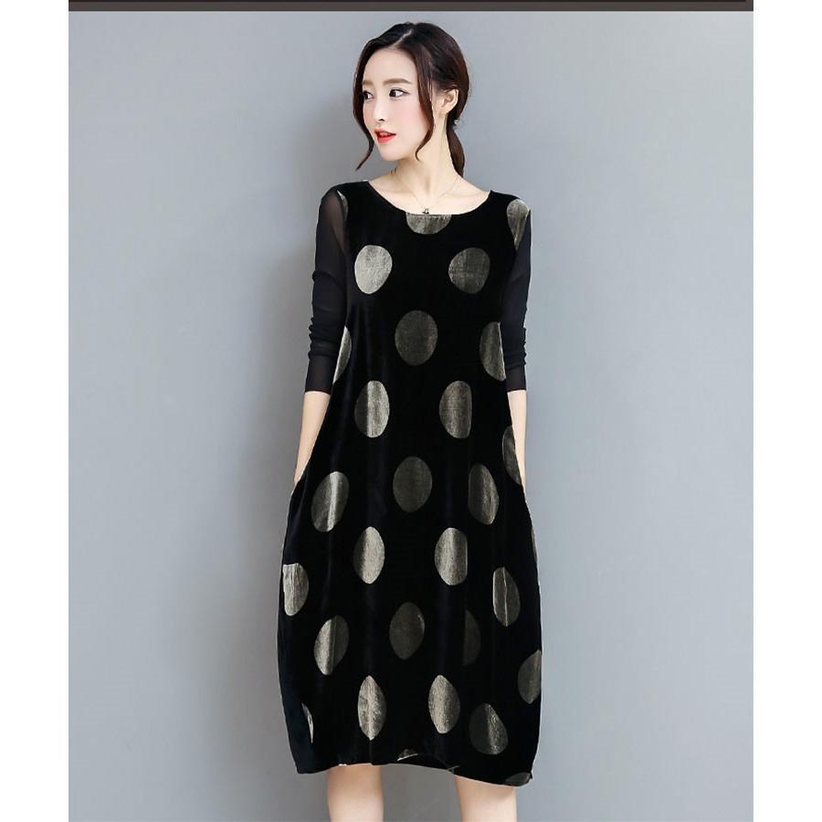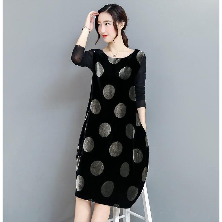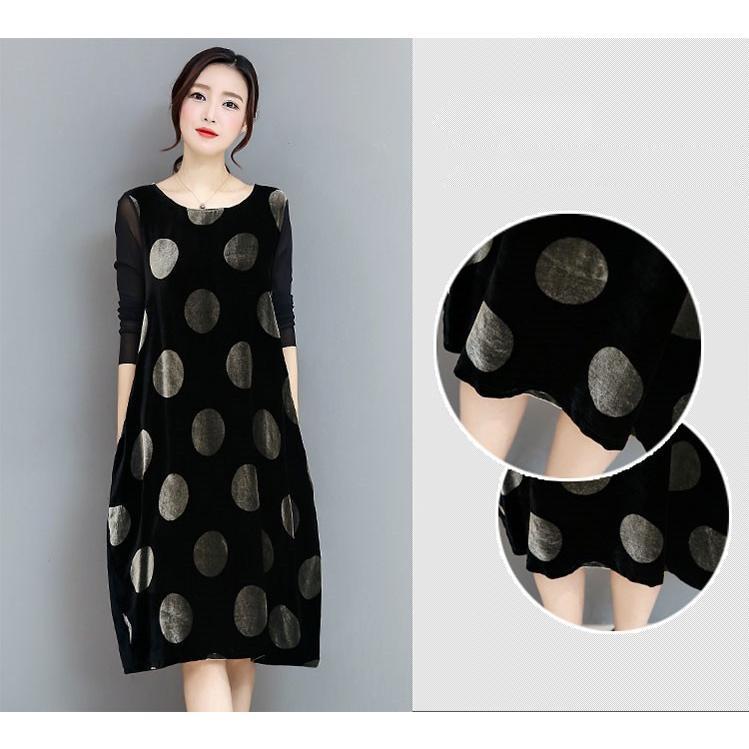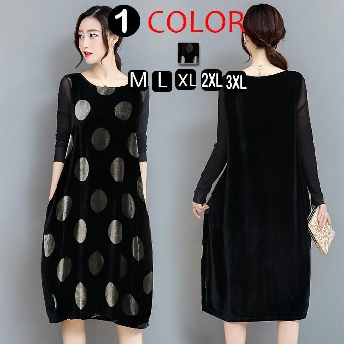 ミディアム | ワンピース 膝丈ワンピース 体型カバーワンピ 長袖 Aラインワンピース ゆったり カジュアル ドッド柄 通学通勤 オフィス M〜XXXL おしゃれ 2020春
