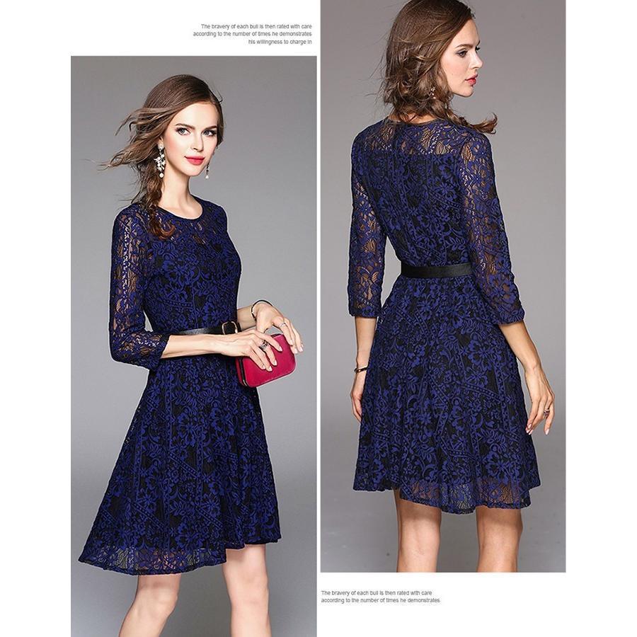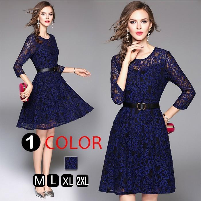レースワンピース レディース フレア ひざ丈 きれいめ 結婚式 上品 二次会 食事会 パーティー イベント レースで見た目は女性らしい 女性の自然なしなやかさと美しさを表現 着心地の良さ ガールの魅力