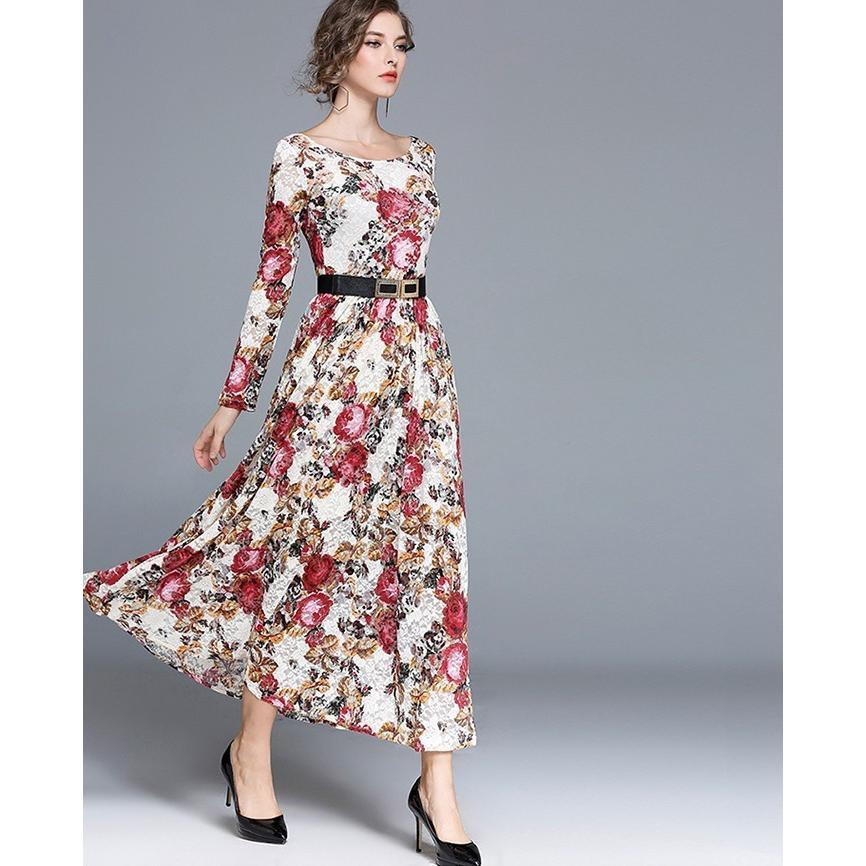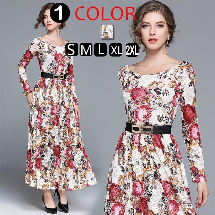 S M L XL XXLサイズマキシワンピース レースワンピース