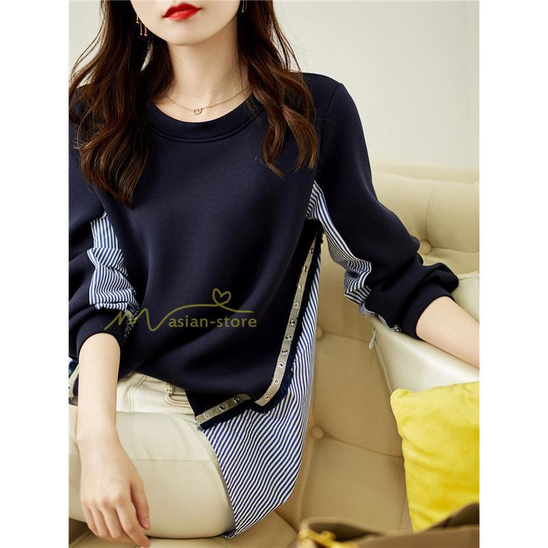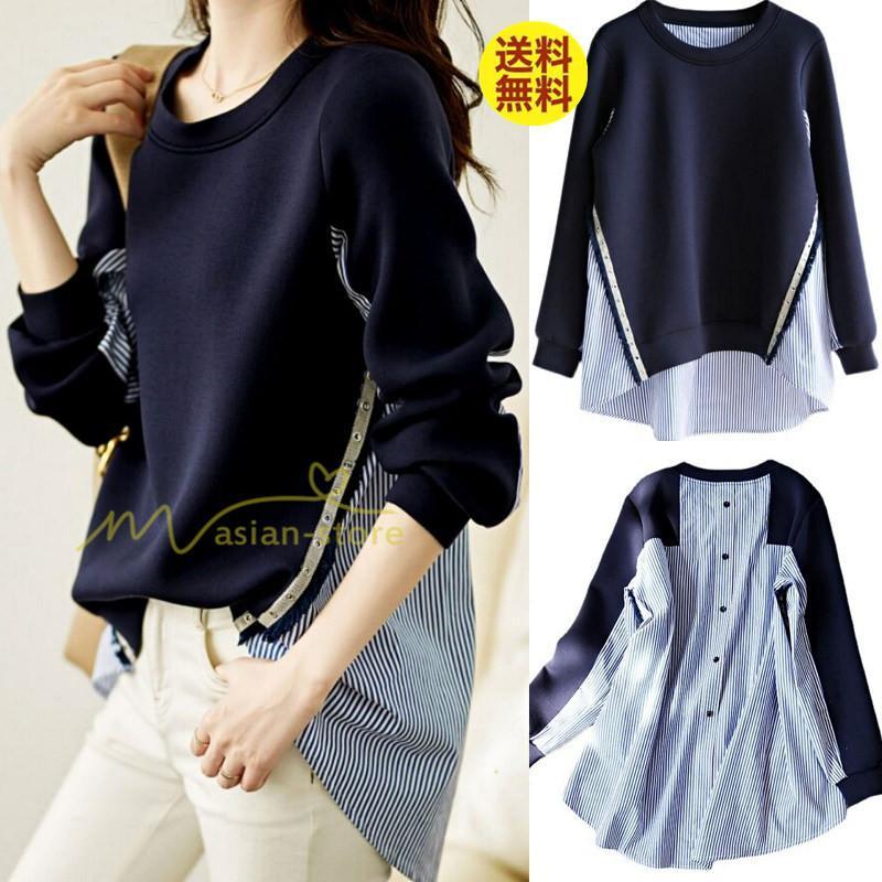 パーカー レディース トップス スウェット プルオーバー おしゃれ 安い 韓国 長袖 無地 カジュアル 可愛い お出かけ トレーナー ドッキング 重ね着
