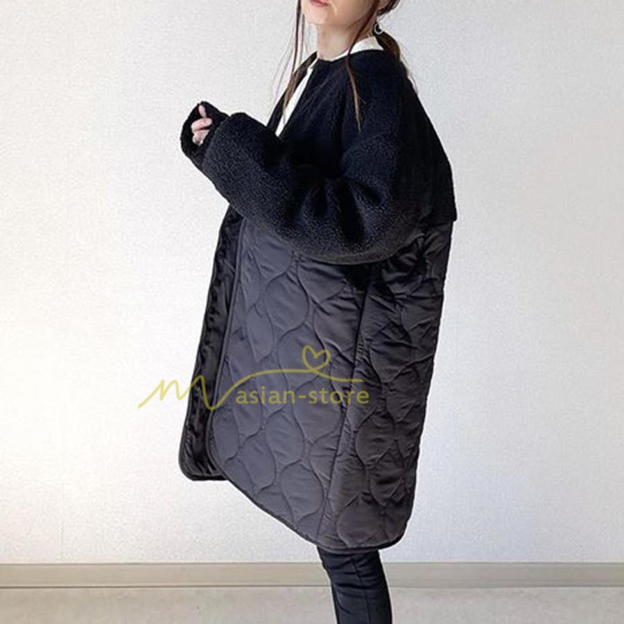 中綿キルト キルト キルティング 軽い 軽量 ビッグシルエット ビックシルエット ビッグ ビック 大きめ 長い 長め ロング ロング丈 体型カバー 無地 シンプル キルティングコートキルティングアウター キルトコート キルトアウター