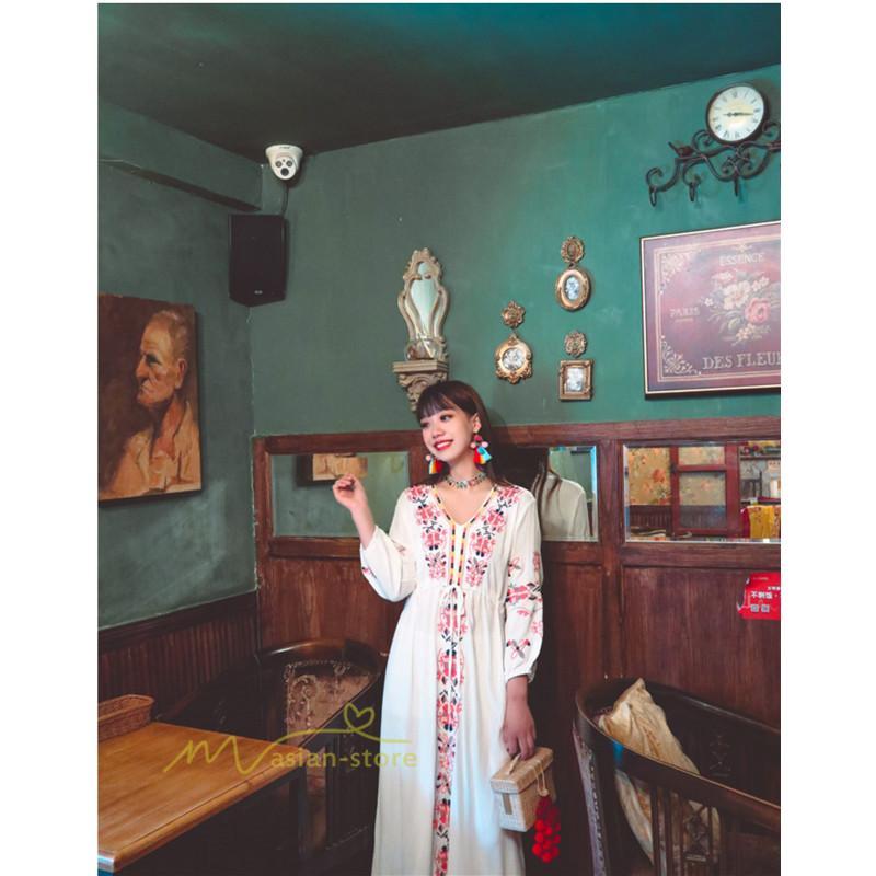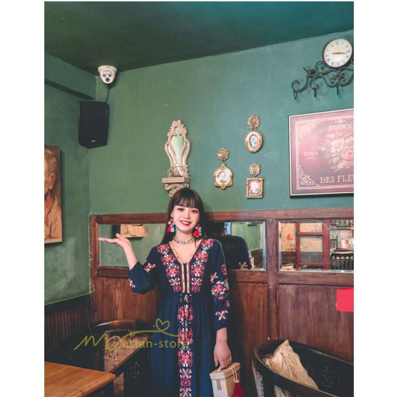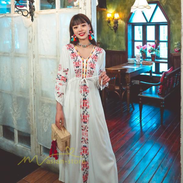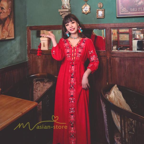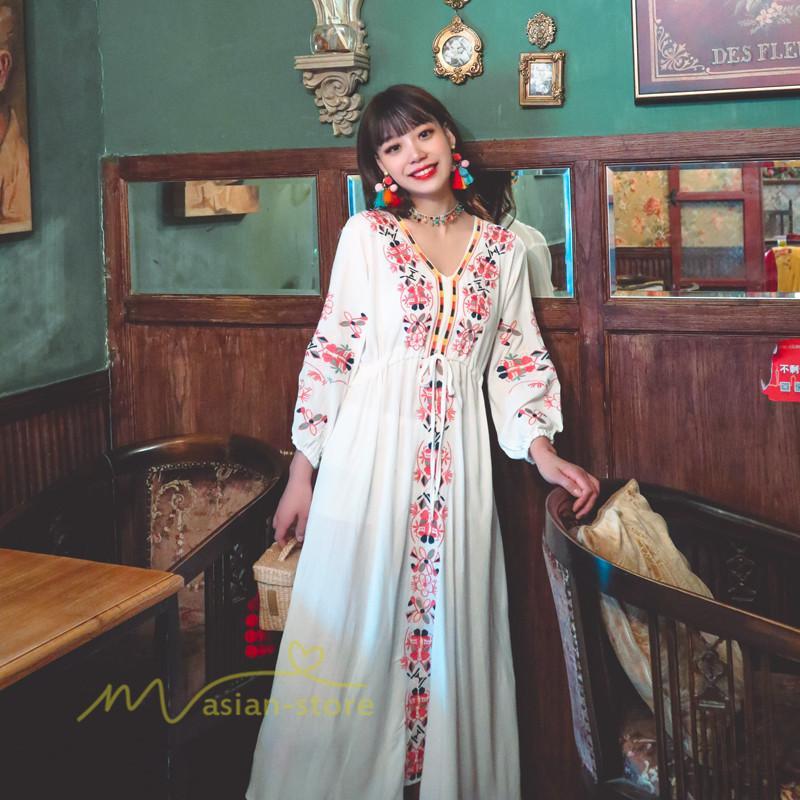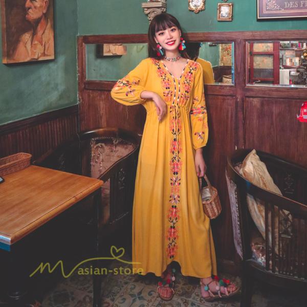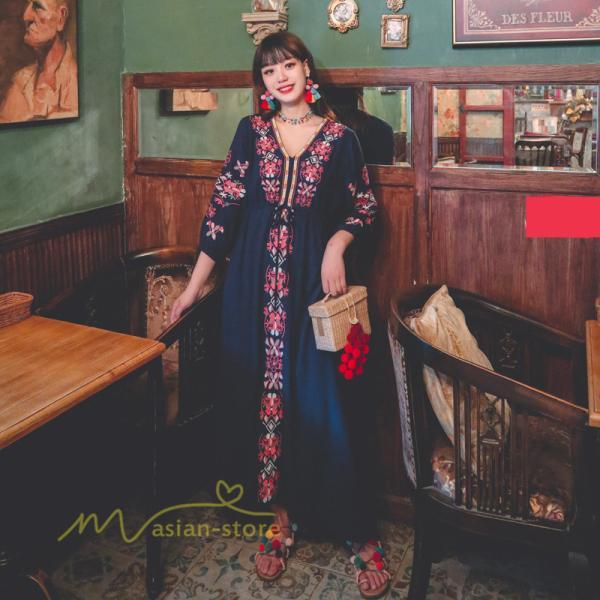 マキシ | ワンピース レディース 40代 春秋 キレイめ マキシ丈ワンピース 綿麻 リネンワンピ Vネック 刺繍 リボン付き アウター カジュアル 着痩せ ルームウェア デート