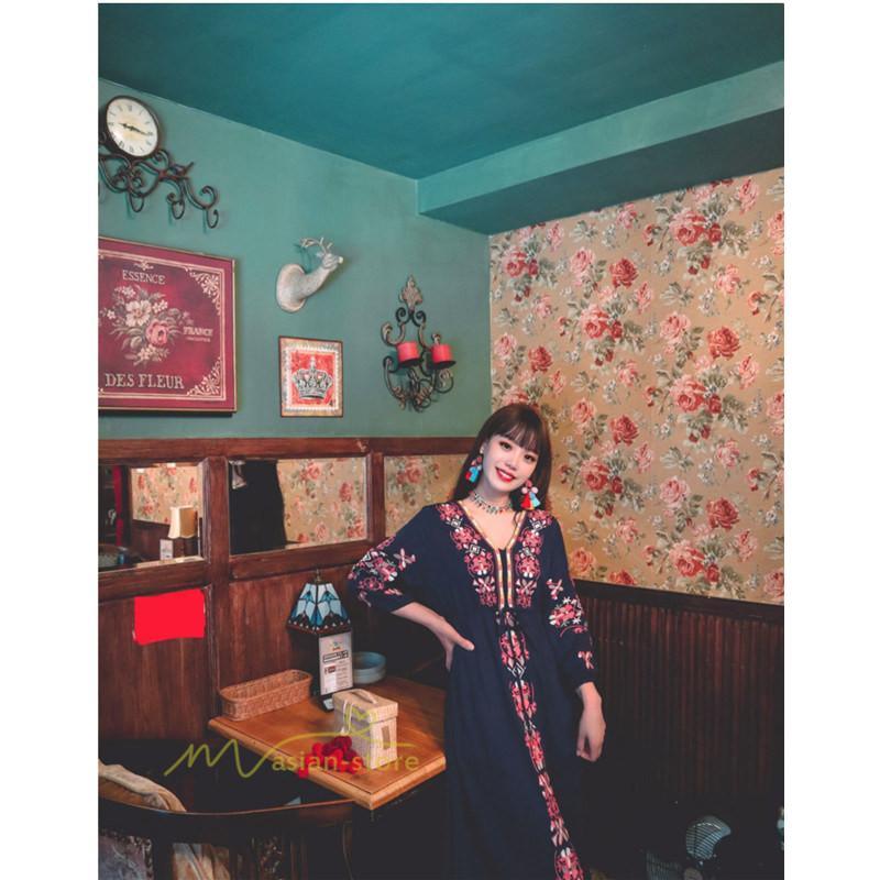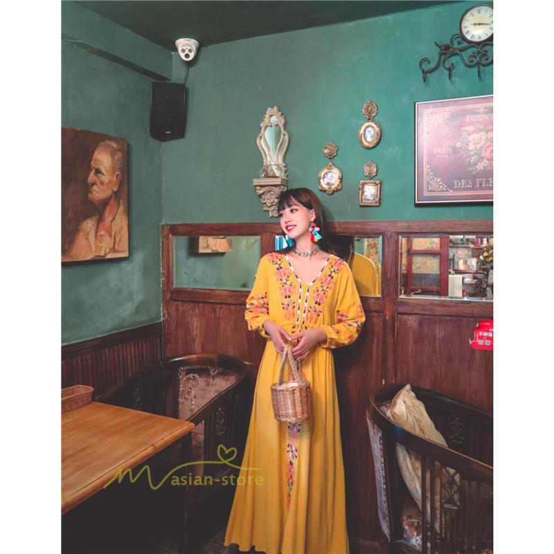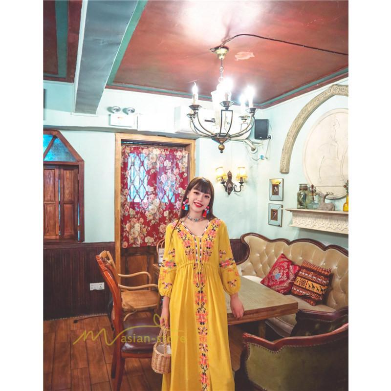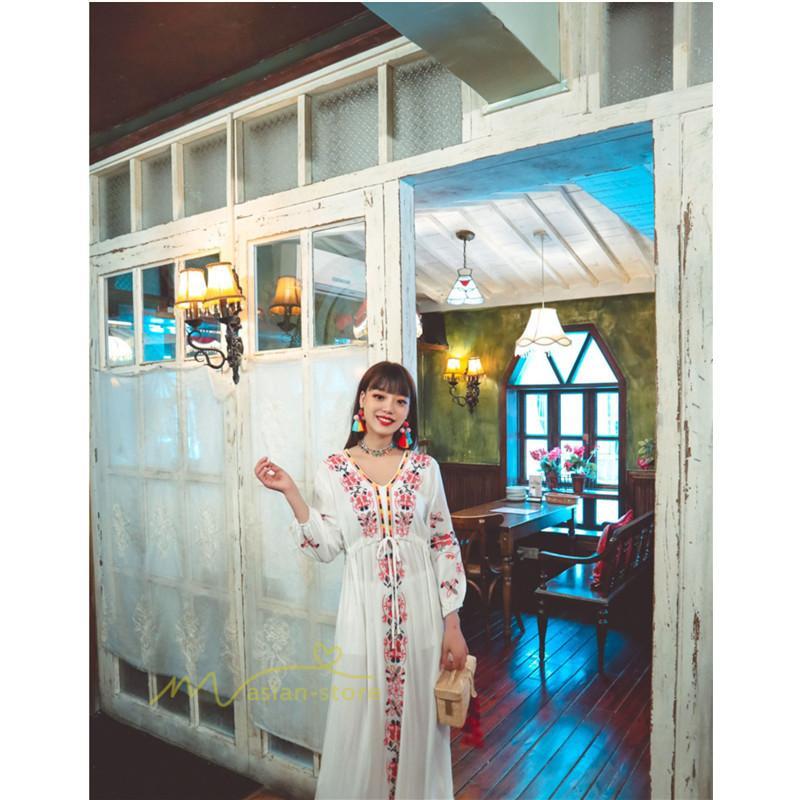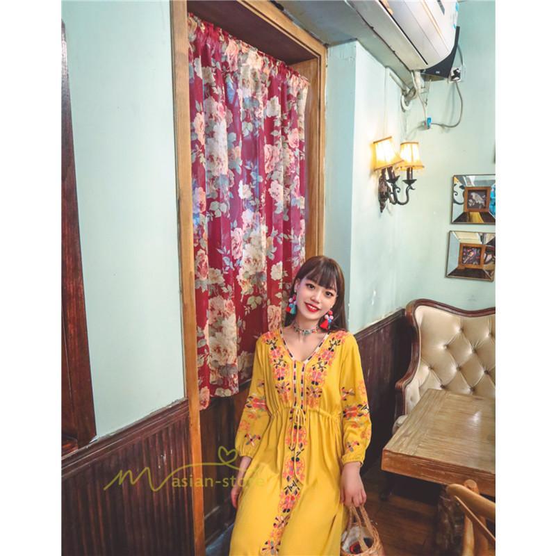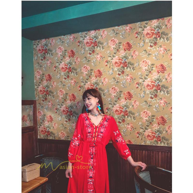 マキシ | ワンピース レディース 40代 春秋 キレイめ マキシ丈ワンピース 綿麻 リネンワンピ Vネック 刺繍 リボン付き アウター カジュアル 着痩せ ルームウェア デート