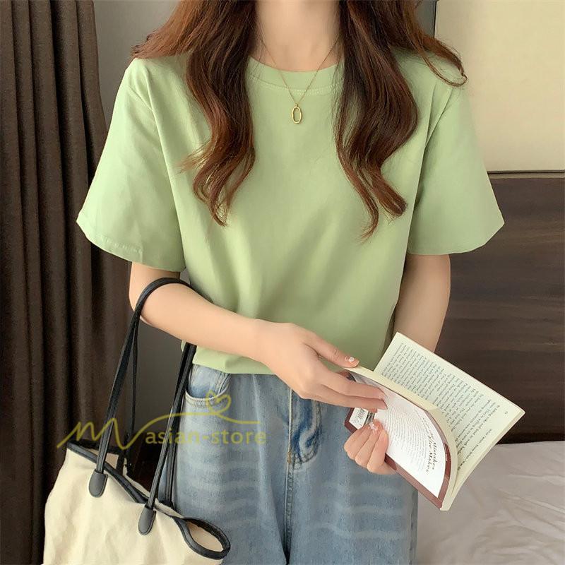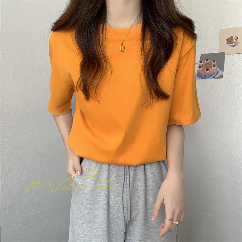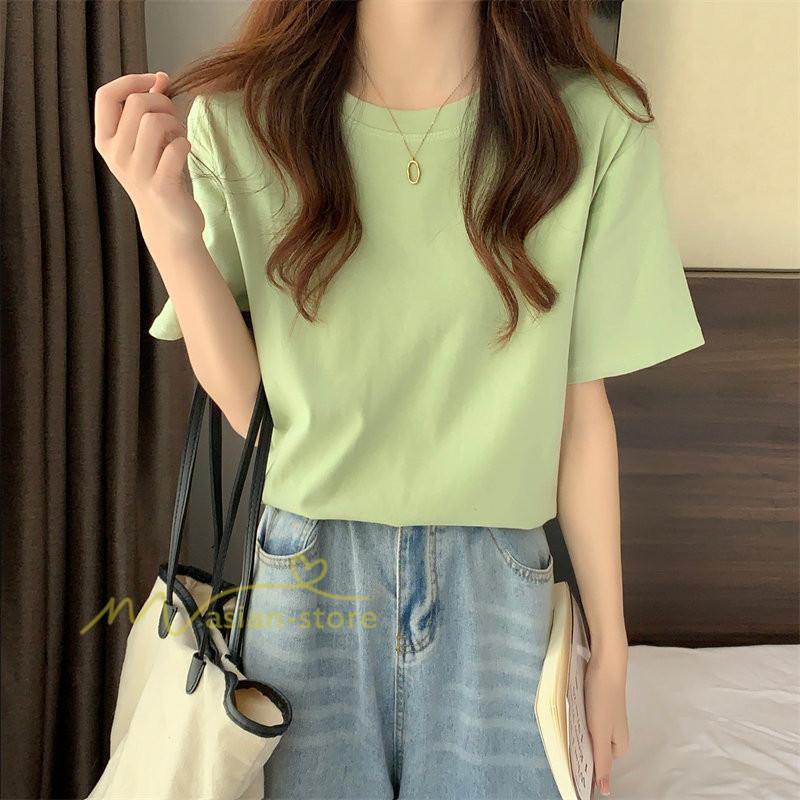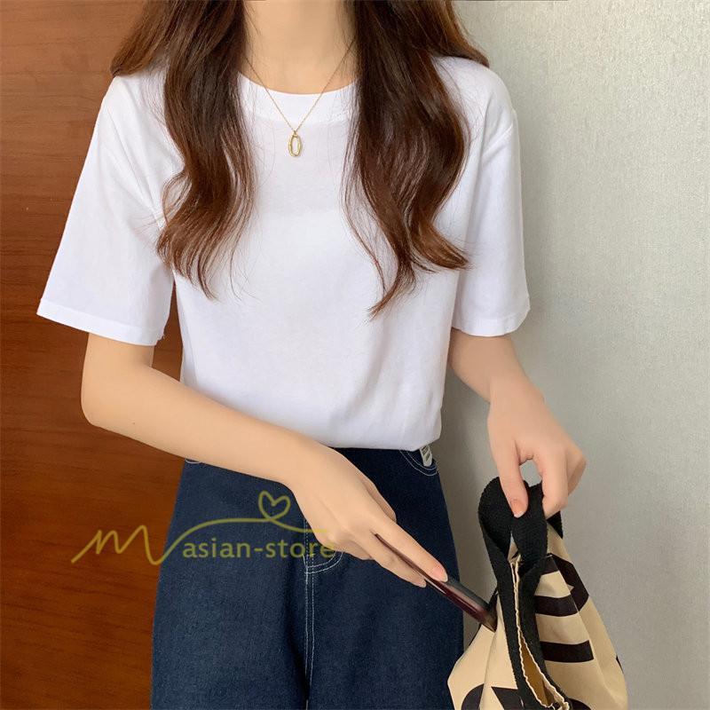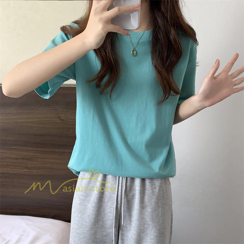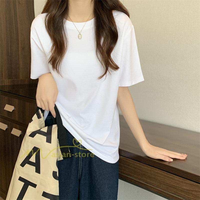 Tシャツ カットソー スリムフィット 韓国風 着やせ カジュアル インナー 女の子 オールシーズン ガーリー