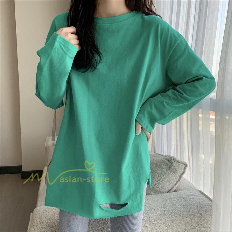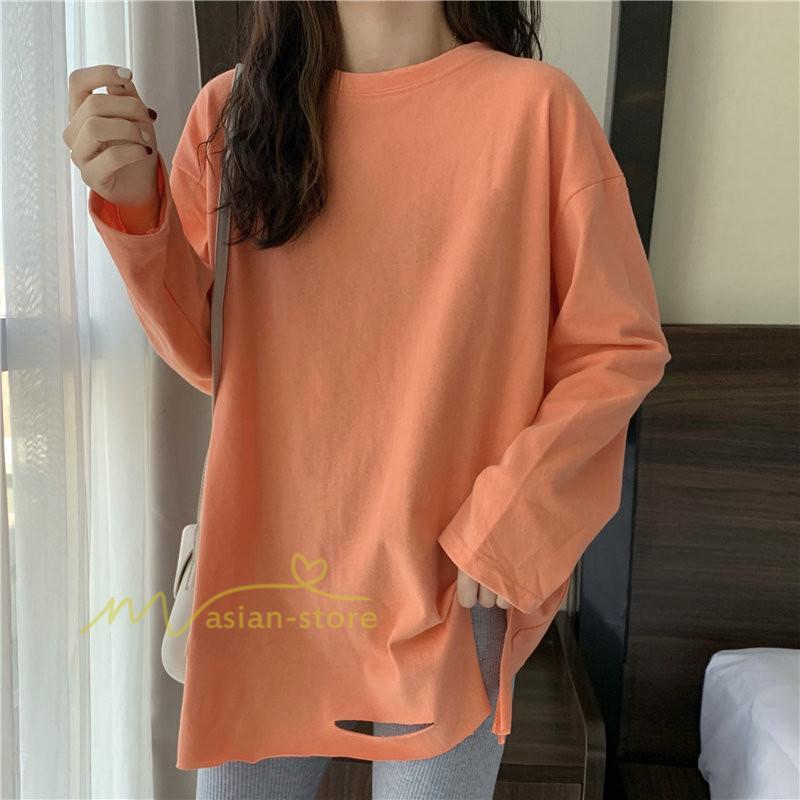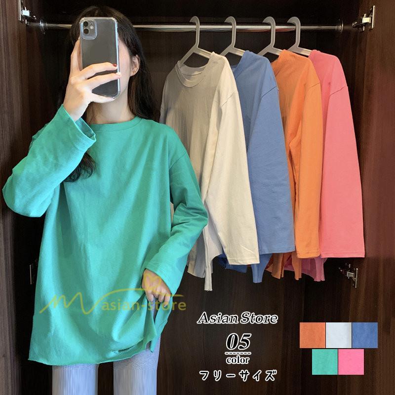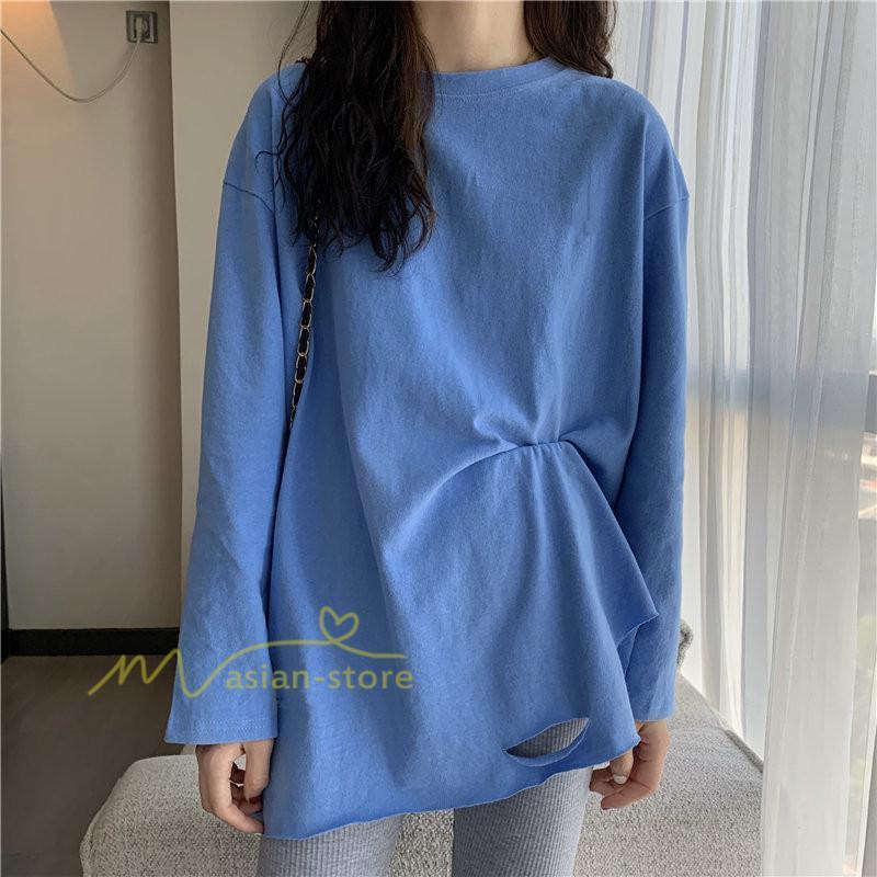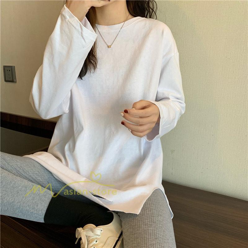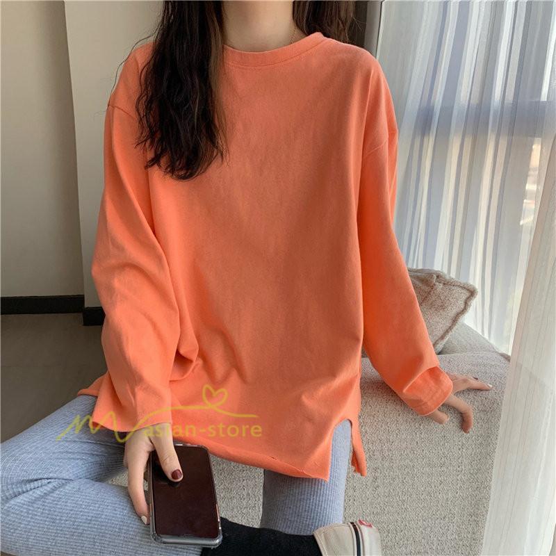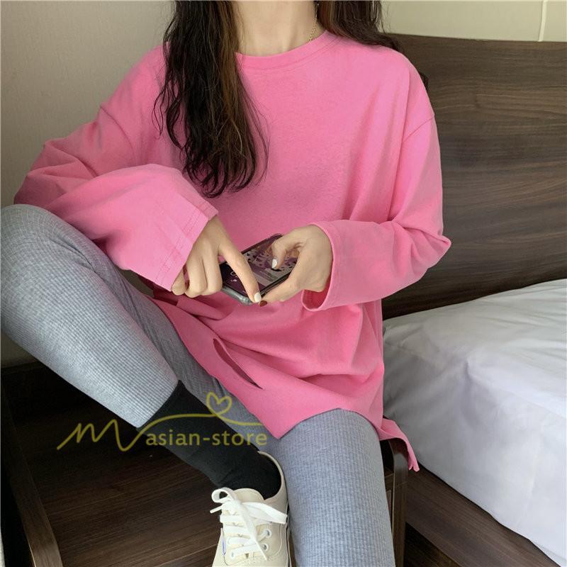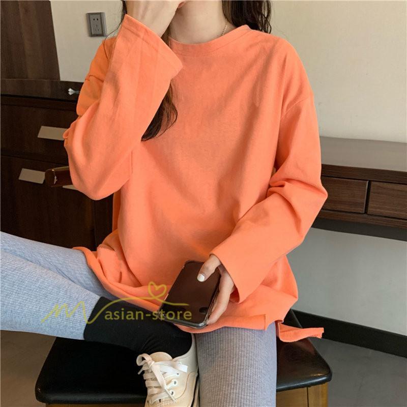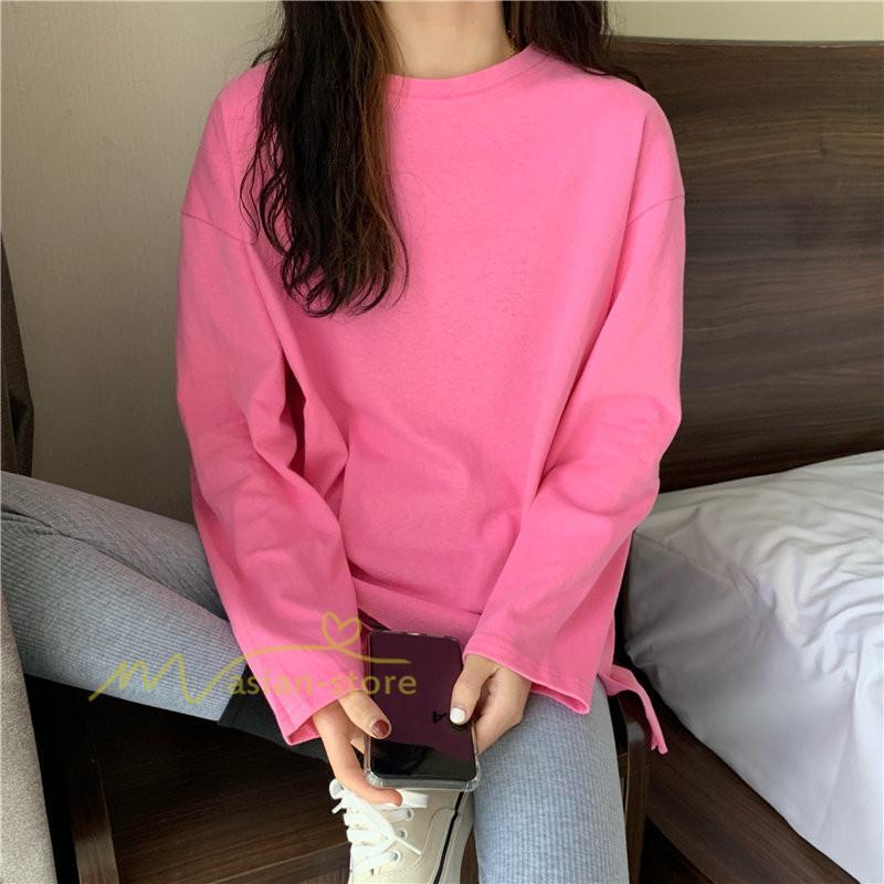 Tシャツ カットソー スリムフィット 韓国風 着やせ カジュアル インナー 女の子 オールシーズン ガーリー
