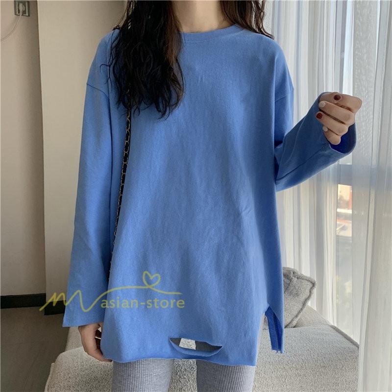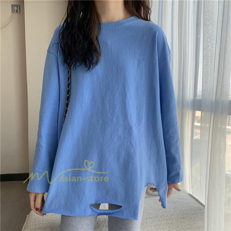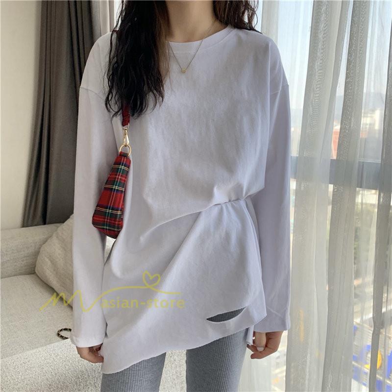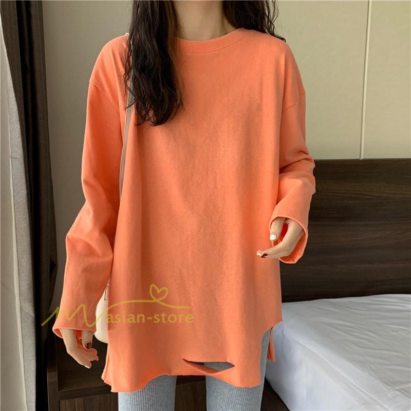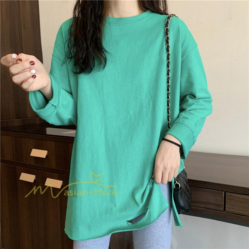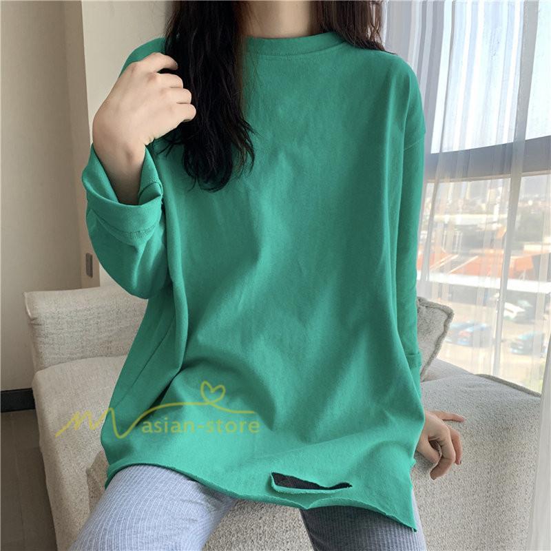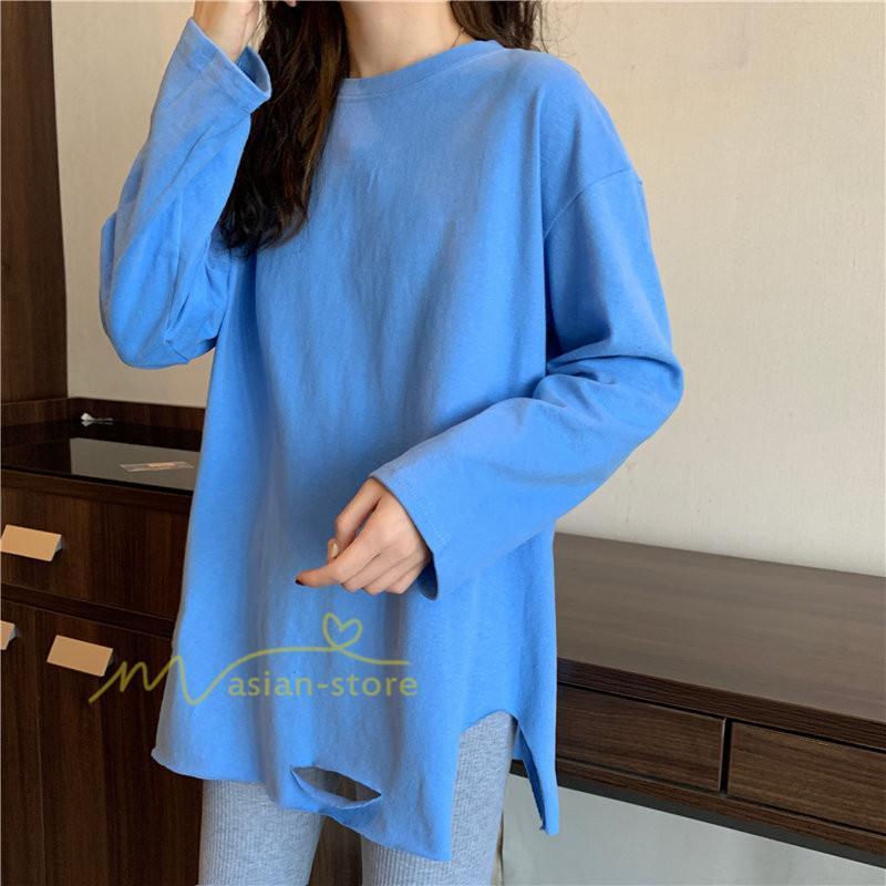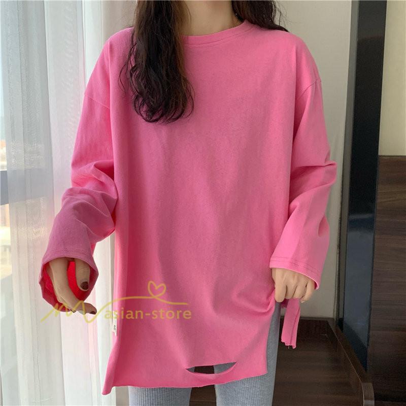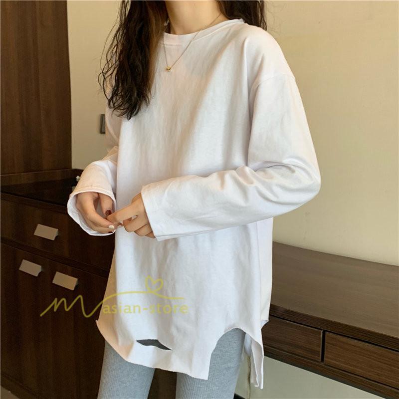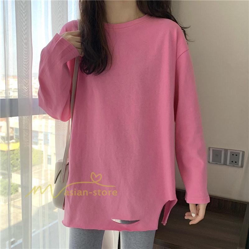Tシャツ カットソー スリムフィット 韓国風 着やせ カジュアル インナー 女の子 オールシーズン ガーリー