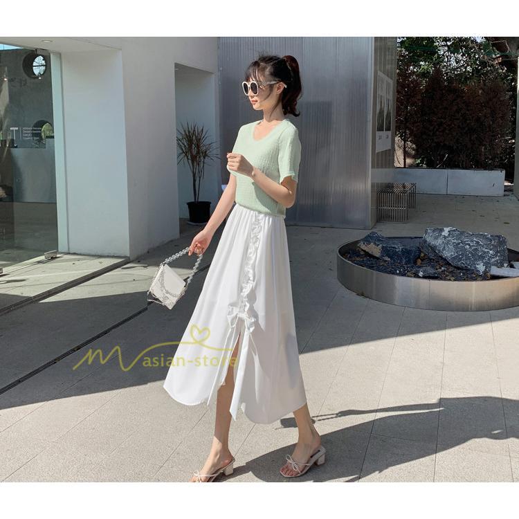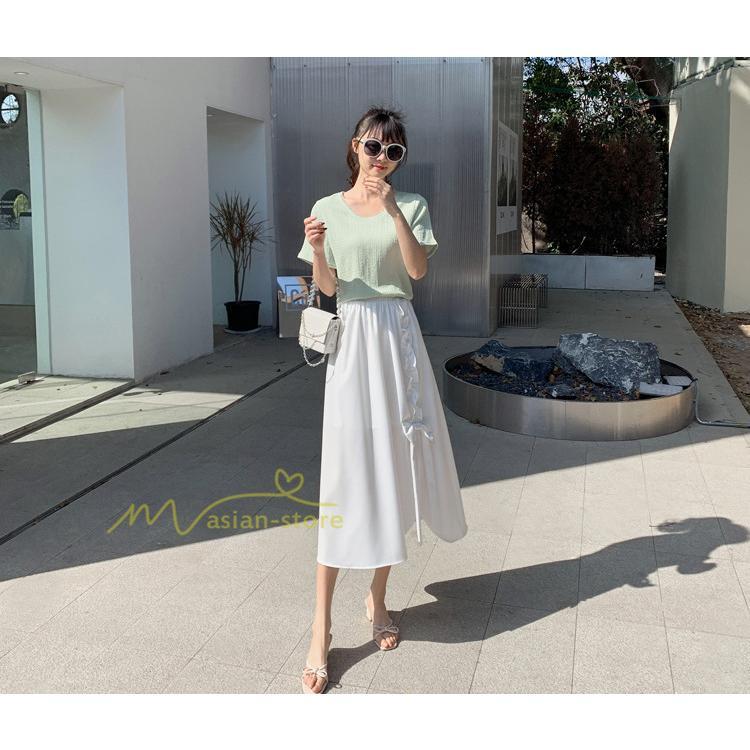 旅行 新作 日常感 無地人気 通勤OL 着回し 着痩せ カジュアル お出かけ エレガント 2022新作 春夏 体型カバー スリム フィット フェミニン デイリー ロング丈