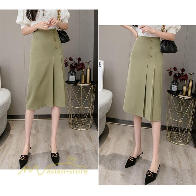 スカート レディース ロングスカート ハイウエスト エレガント 2021新作 Aライン 韓国風 春物 柔らか 着痩せ 美脚 おしゃれ