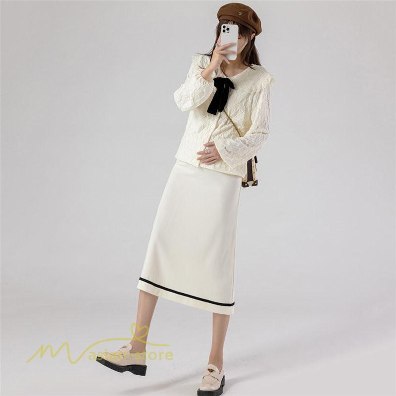 マタニティスカート 妊婦スカート ロング丈スカート 産前産後 マタニティウエア マタニティ用 ハイウエスト