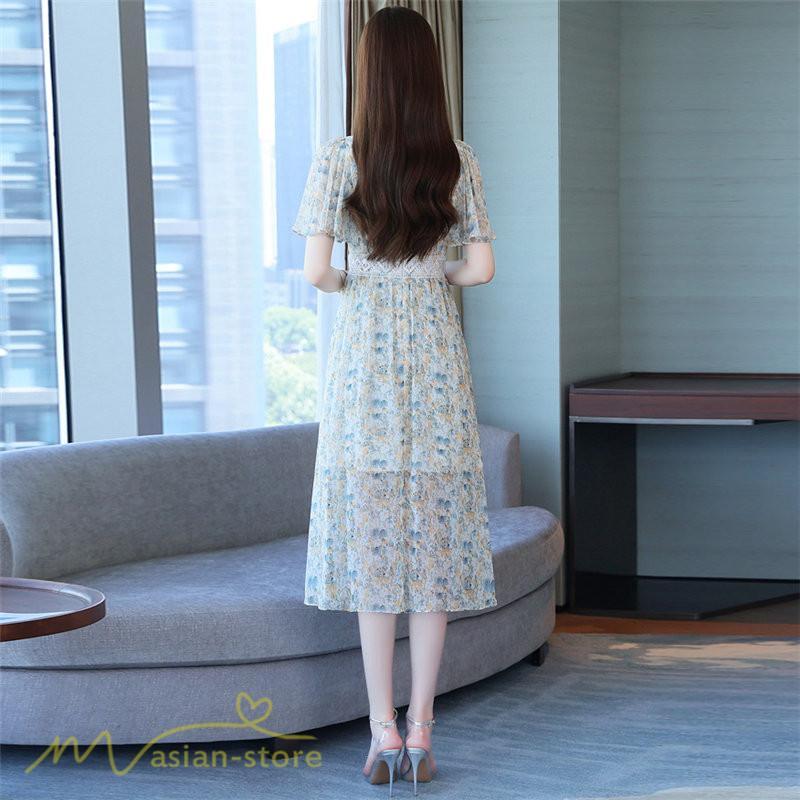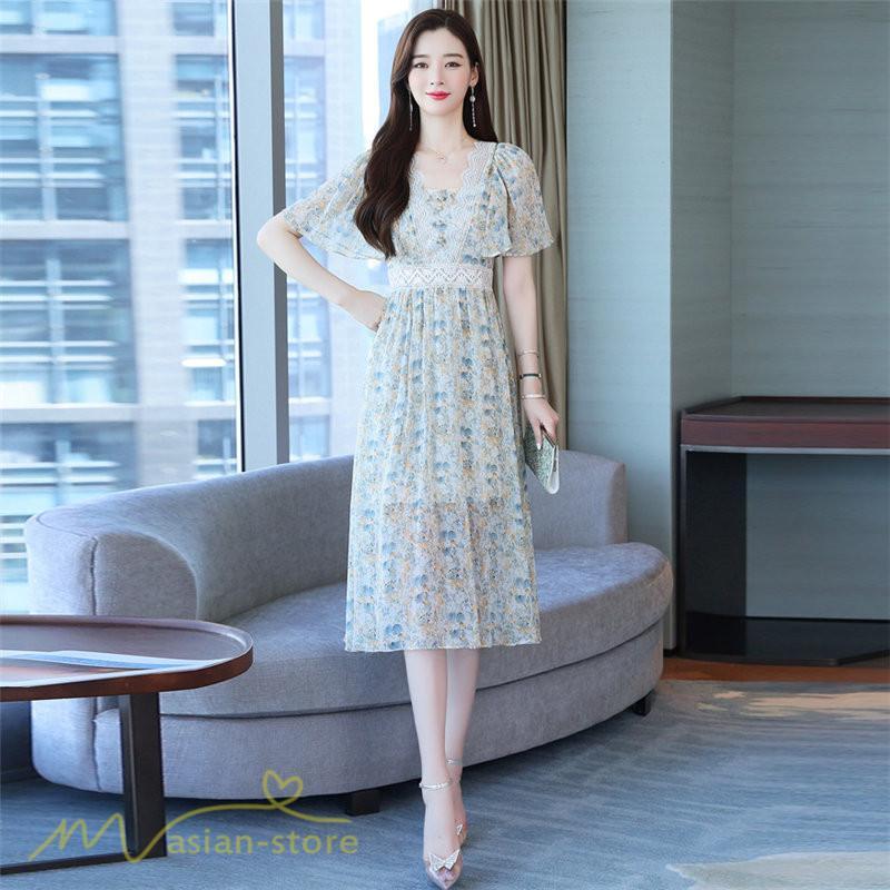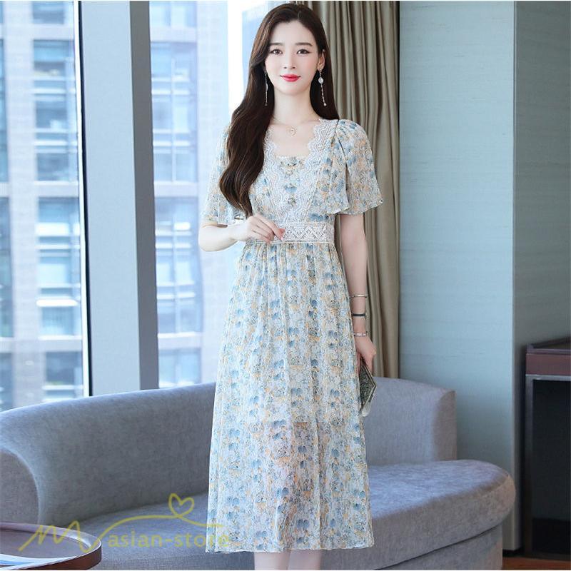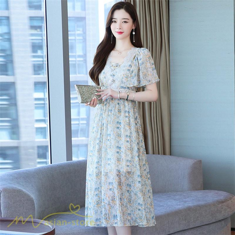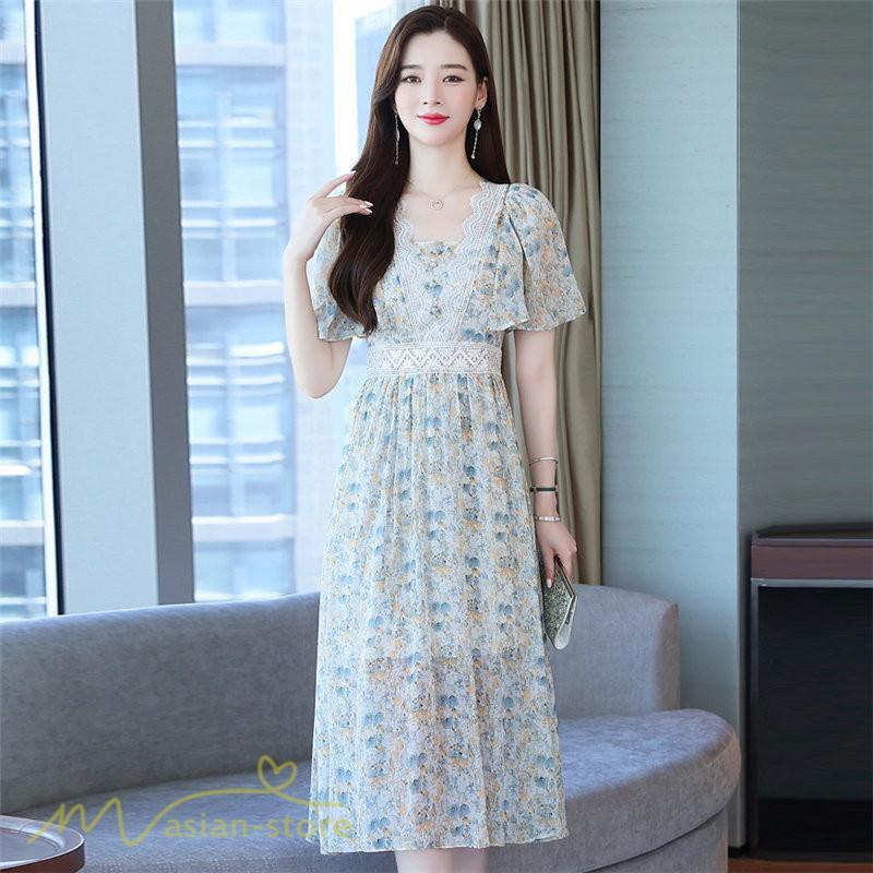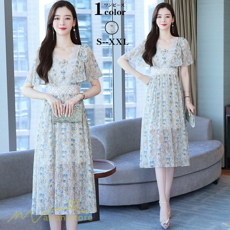 ミディアム | Aラインワンピース レディース 着痩せ ワンピース 花柄 エレガント おしゃれ 大きいサイズ 夏新作 サマーワンピース 上品 40代 20代 カジュアル 30代 日常感