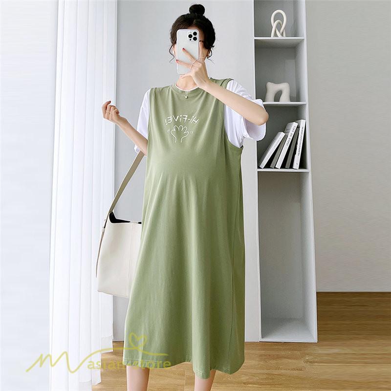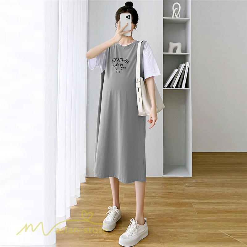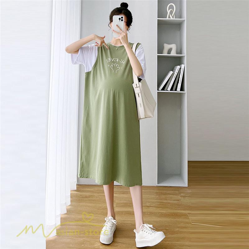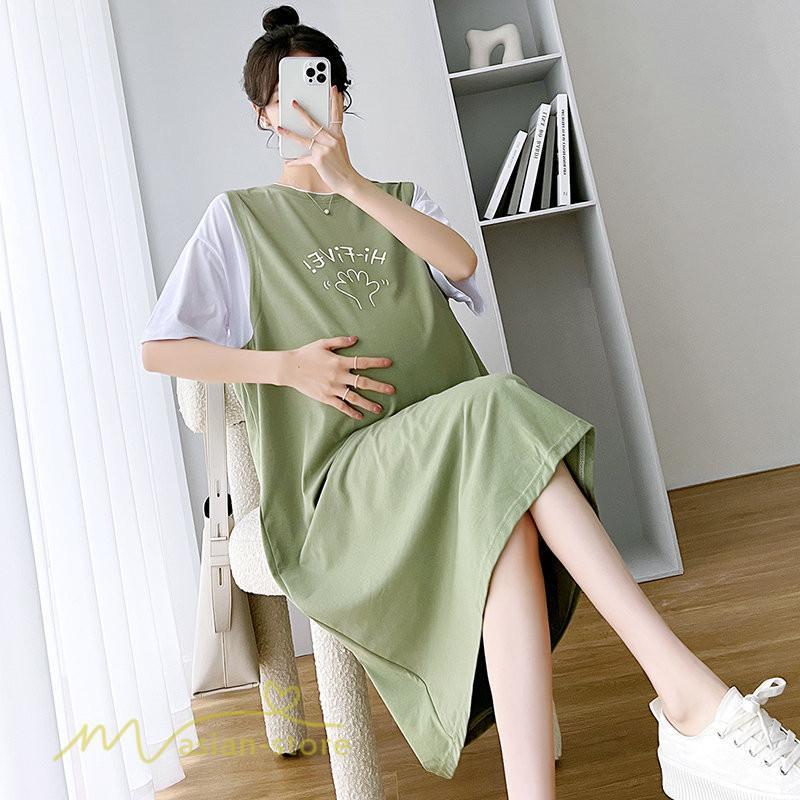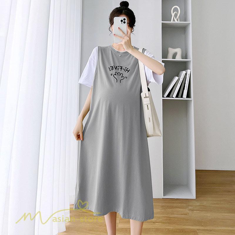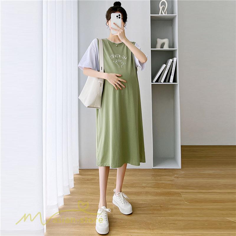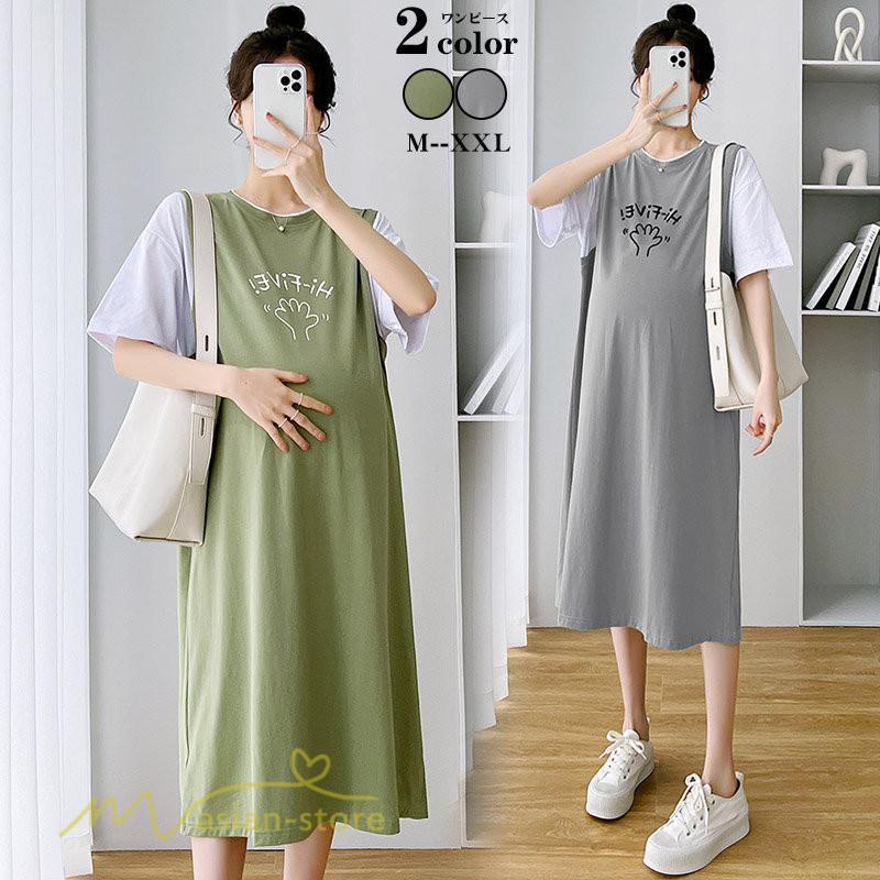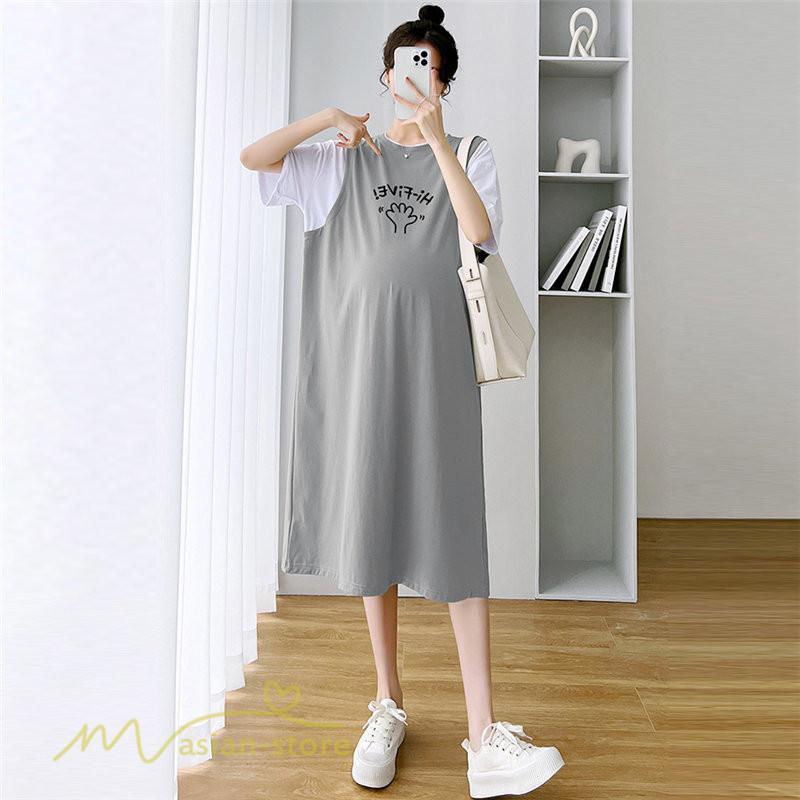 ワンピース | マタニティレディース 着痩せ 半袖 Aライン 大きいサイズ カジュアル 可愛い マタニティウェア 妊婦服 膝丈 産前産後 お出かけ 夏服