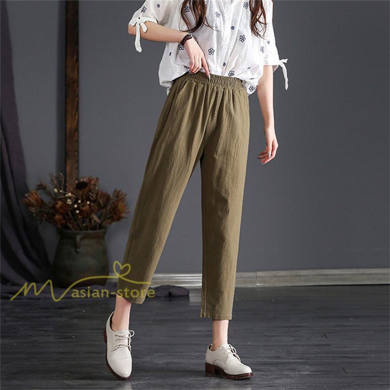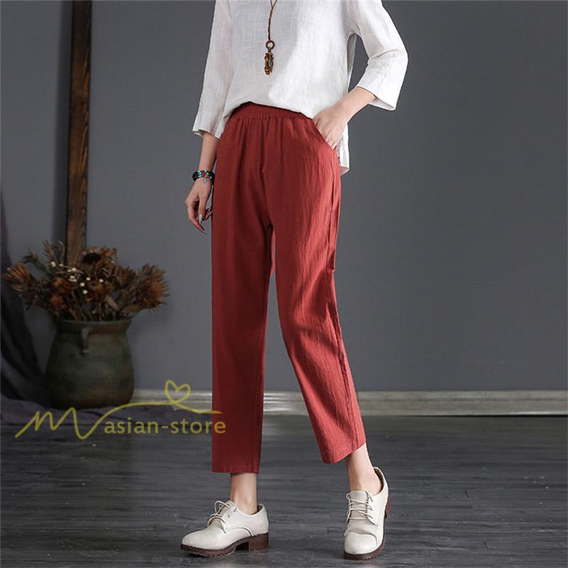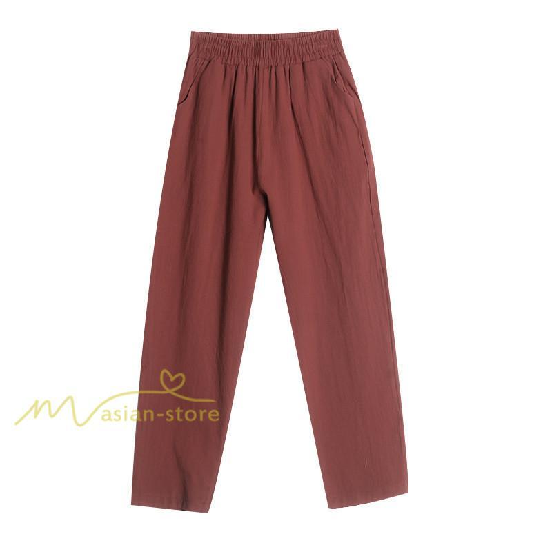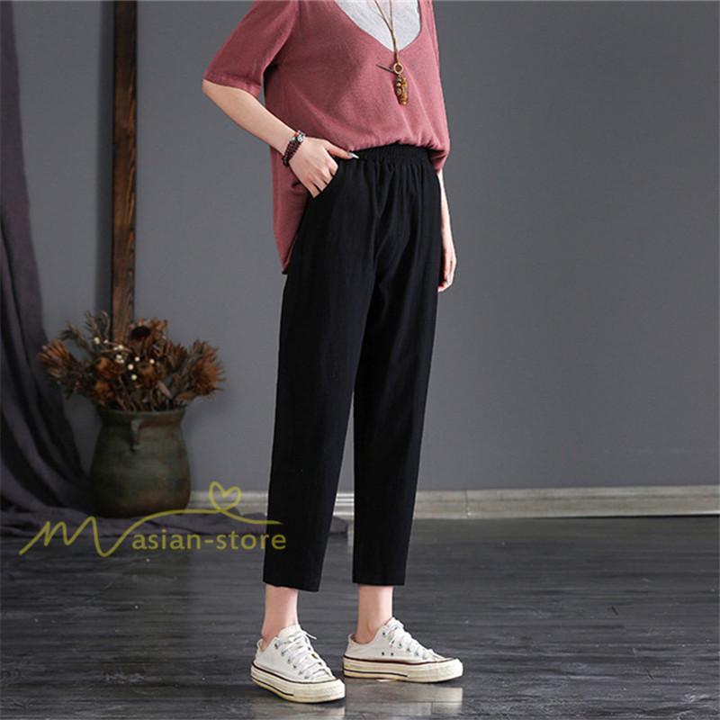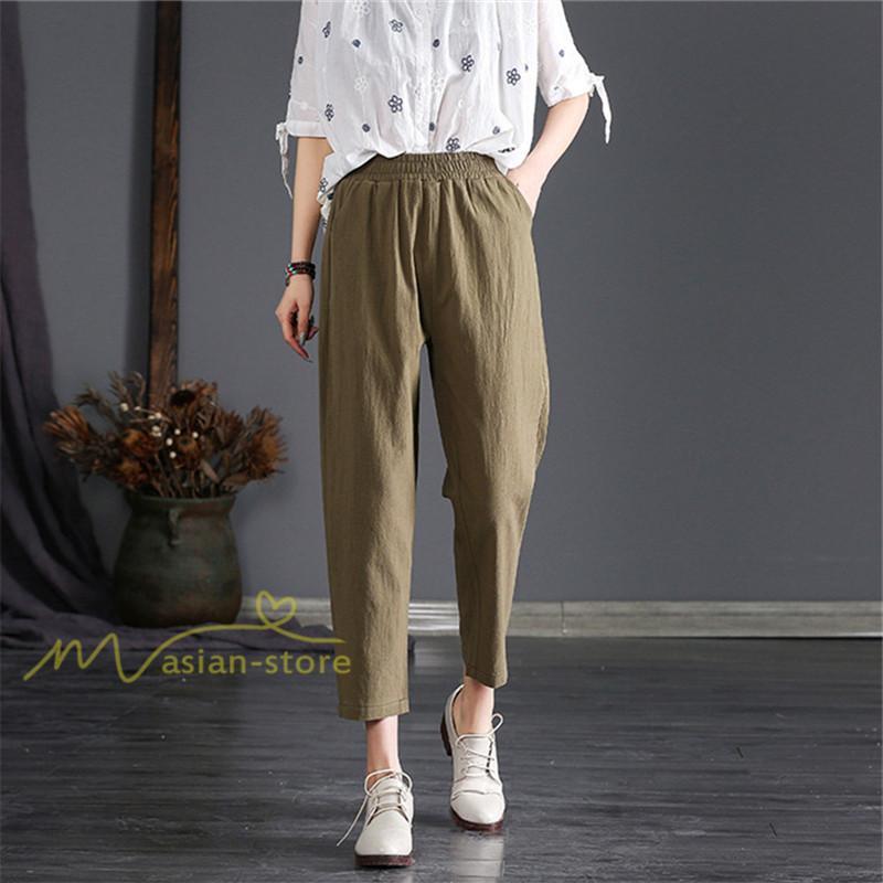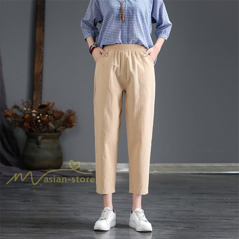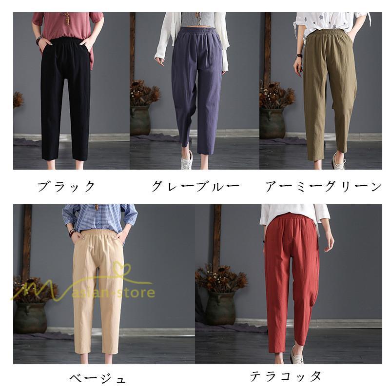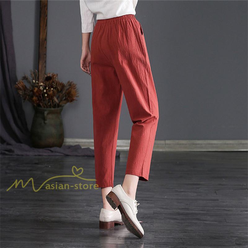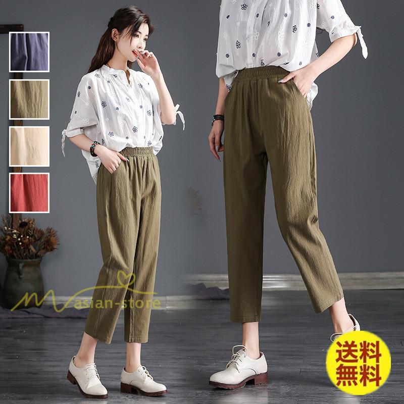 レディース リネン風 ウェストゴム ゆったり 無地 着心地良い 体型カバー ナチュラル 柔らかい 快適