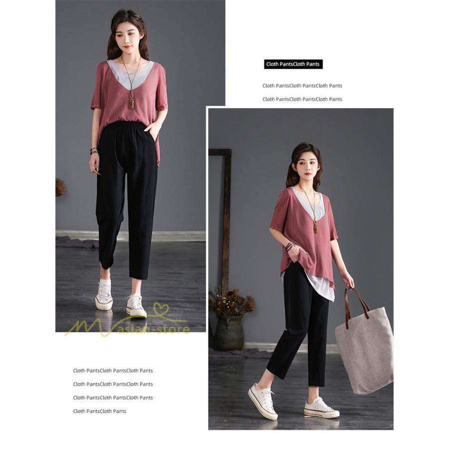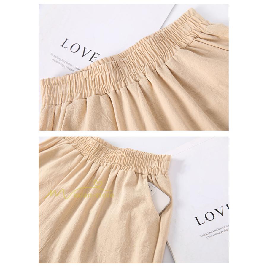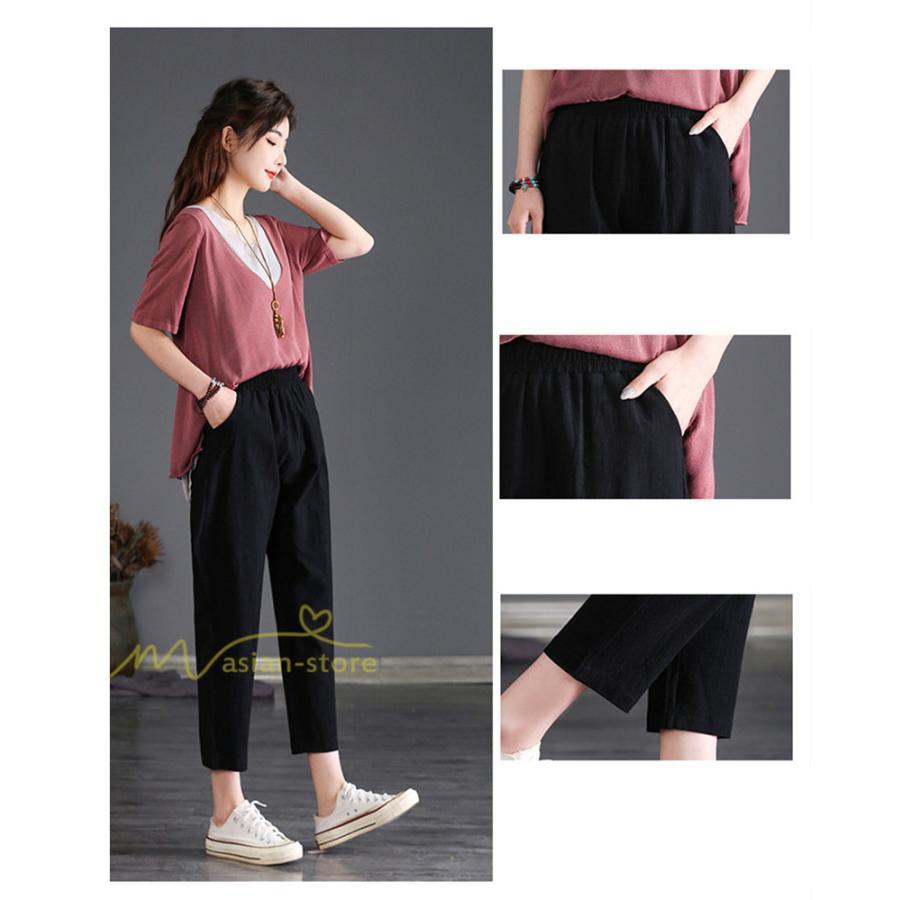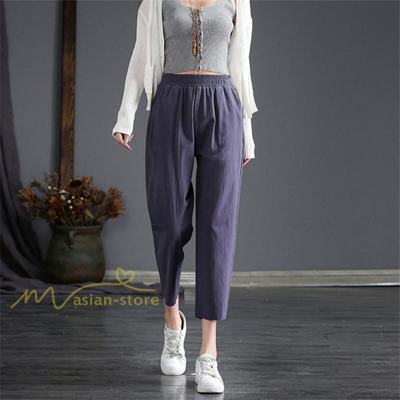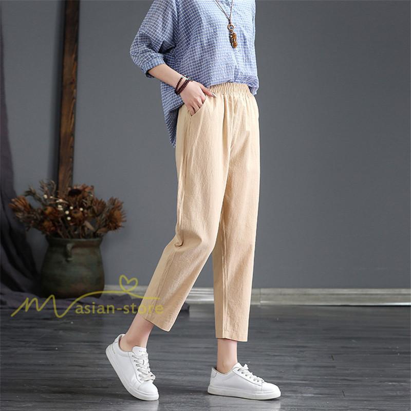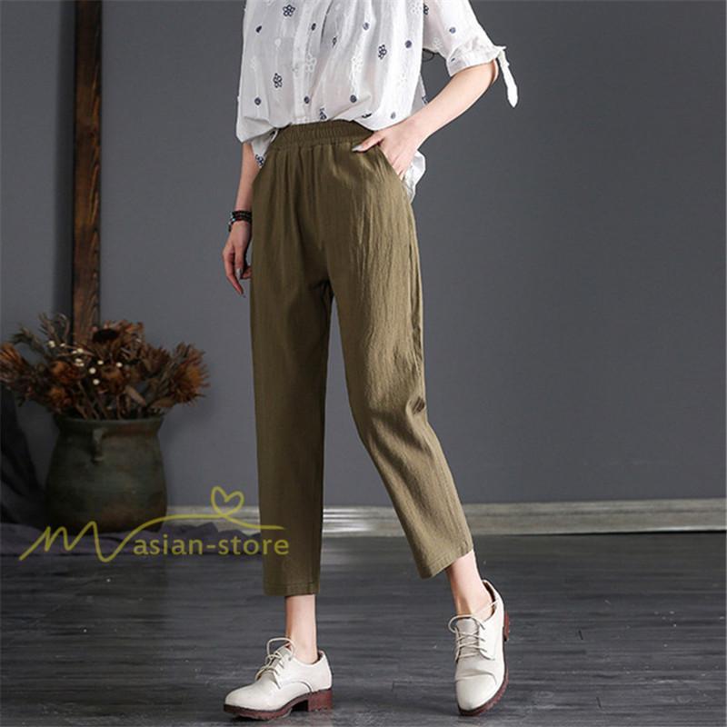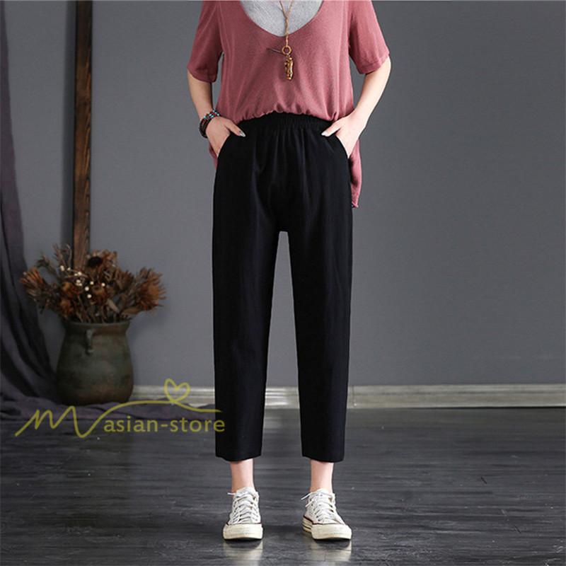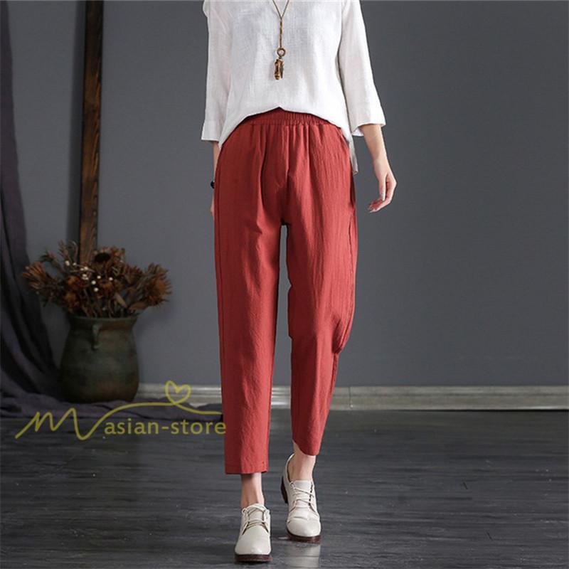 レディース リネン風 ウェストゴム ゆったり 無地 着心地良い 体型カバー ナチュラル 柔らかい 快適